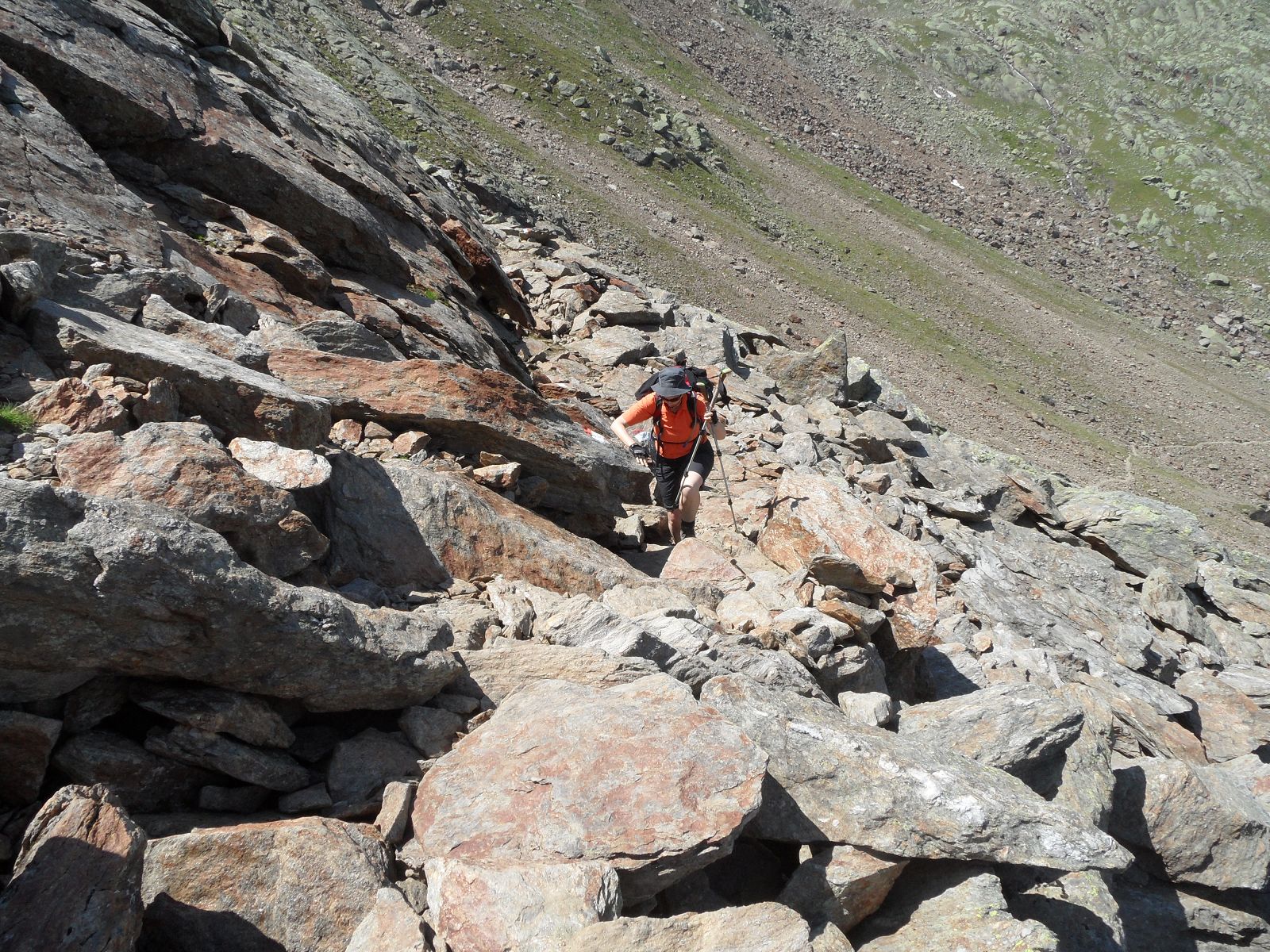 Innsbrucker Hütte - Bremer Hütte: Am ersten Anstieg an der Flanke des Habicht.