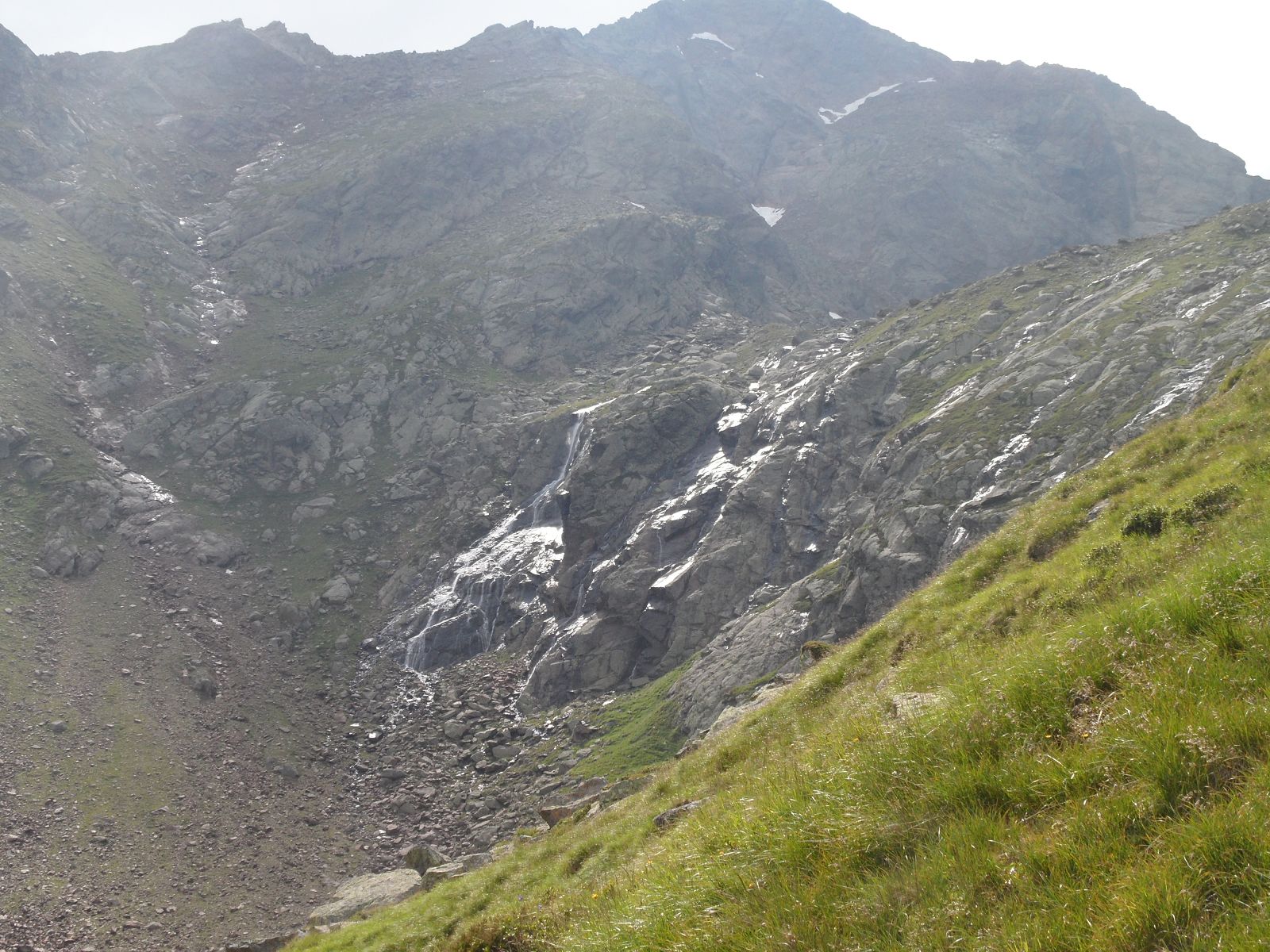 Innsbrucker Hütte - Bremer Hütte: Abfluss des Lautersees oberhalb der Kante- Wieder abstieg bis in die Senke unterhalb des Wasserfalls
