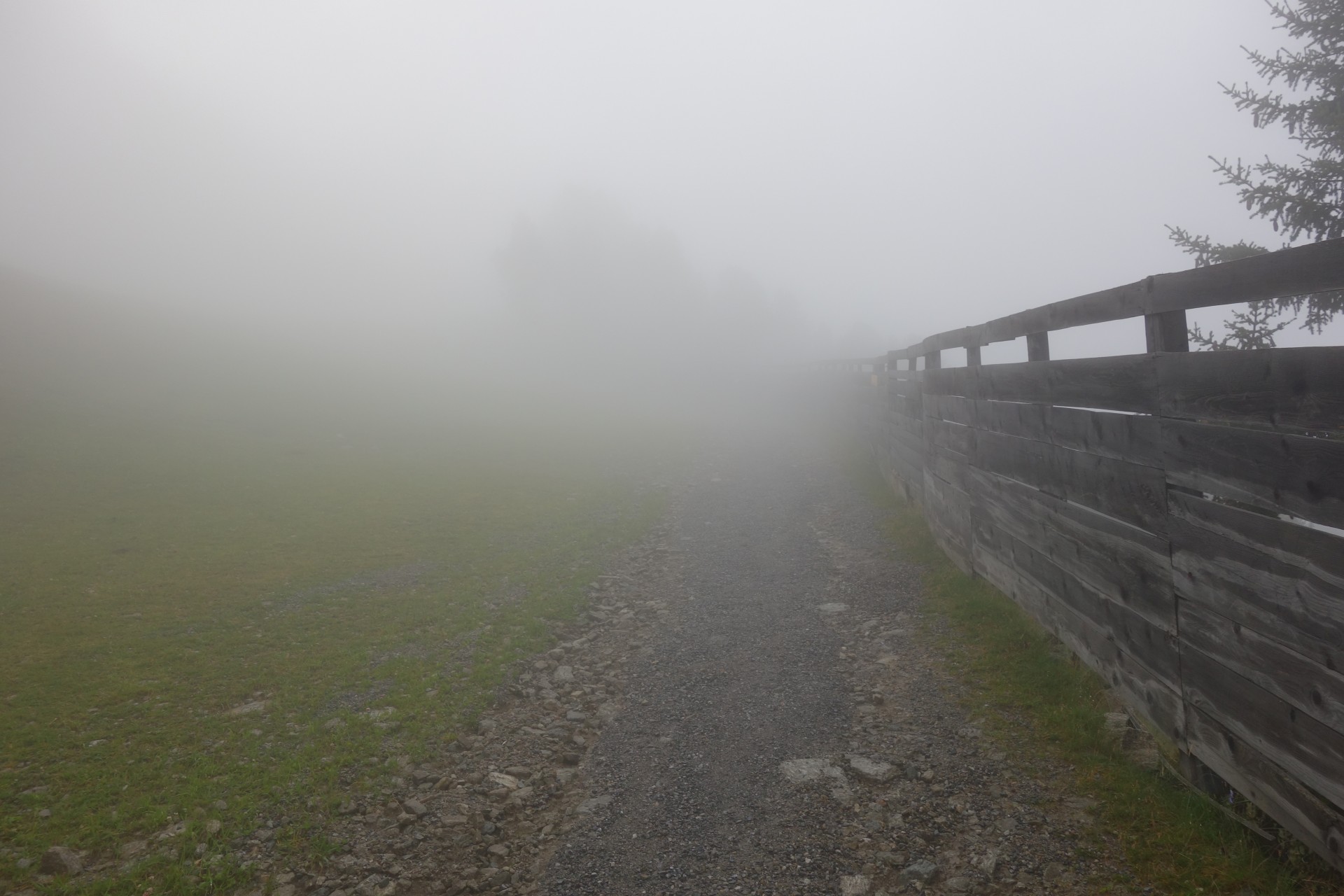 Neue Bielefelder Hütte - Achplatte - Lauser - Niederreichscharte - Hochreichscharte - Hochreichkopf - Schweinfurter Hütte: Das einzig gute am Nebel ist, dass wir auch von der Piste nicht viel sehen