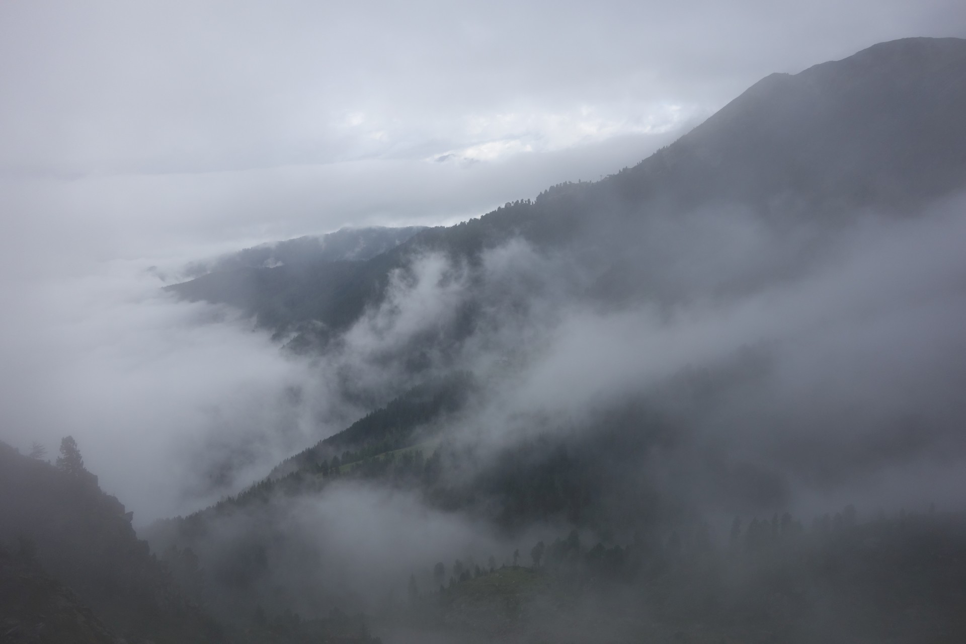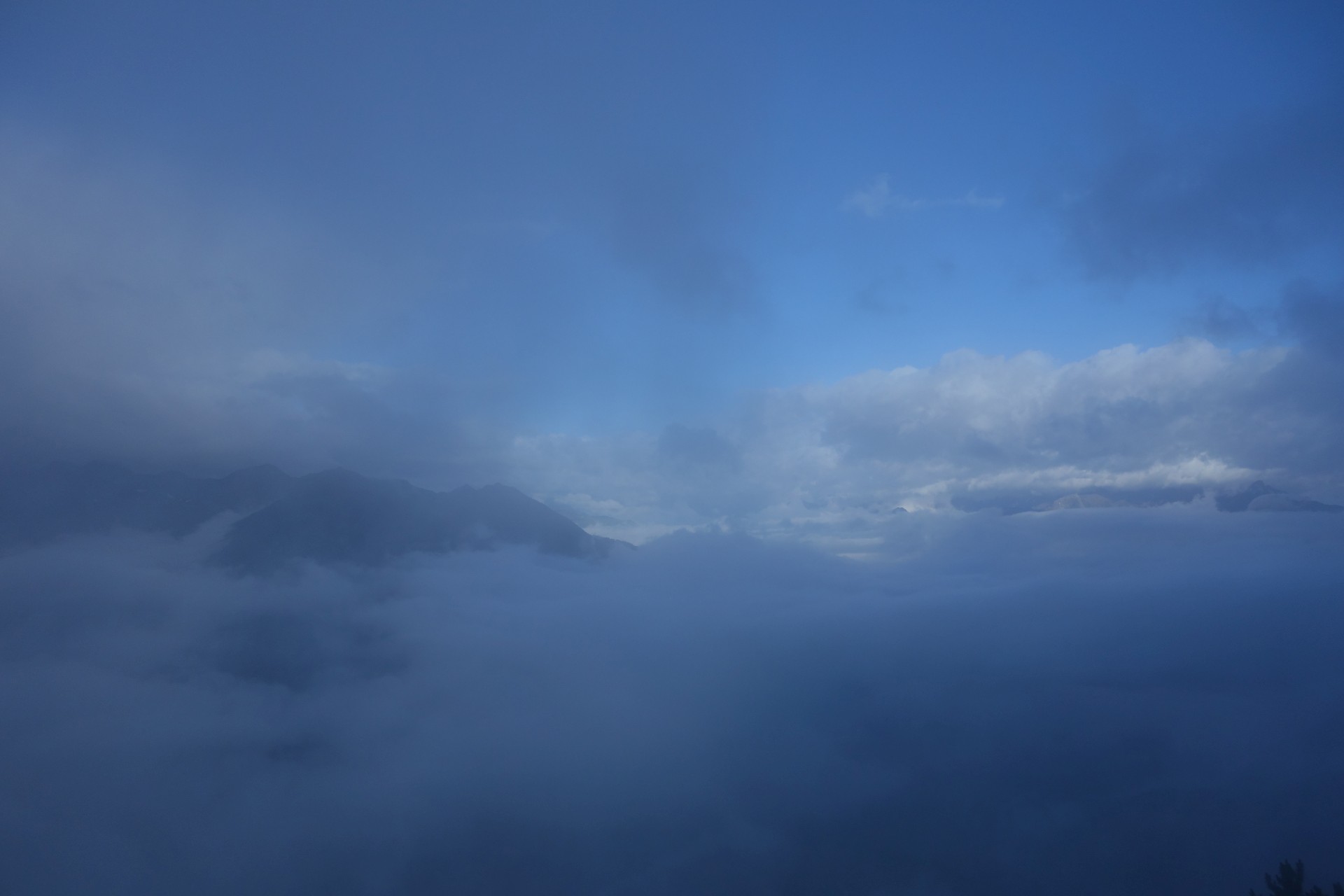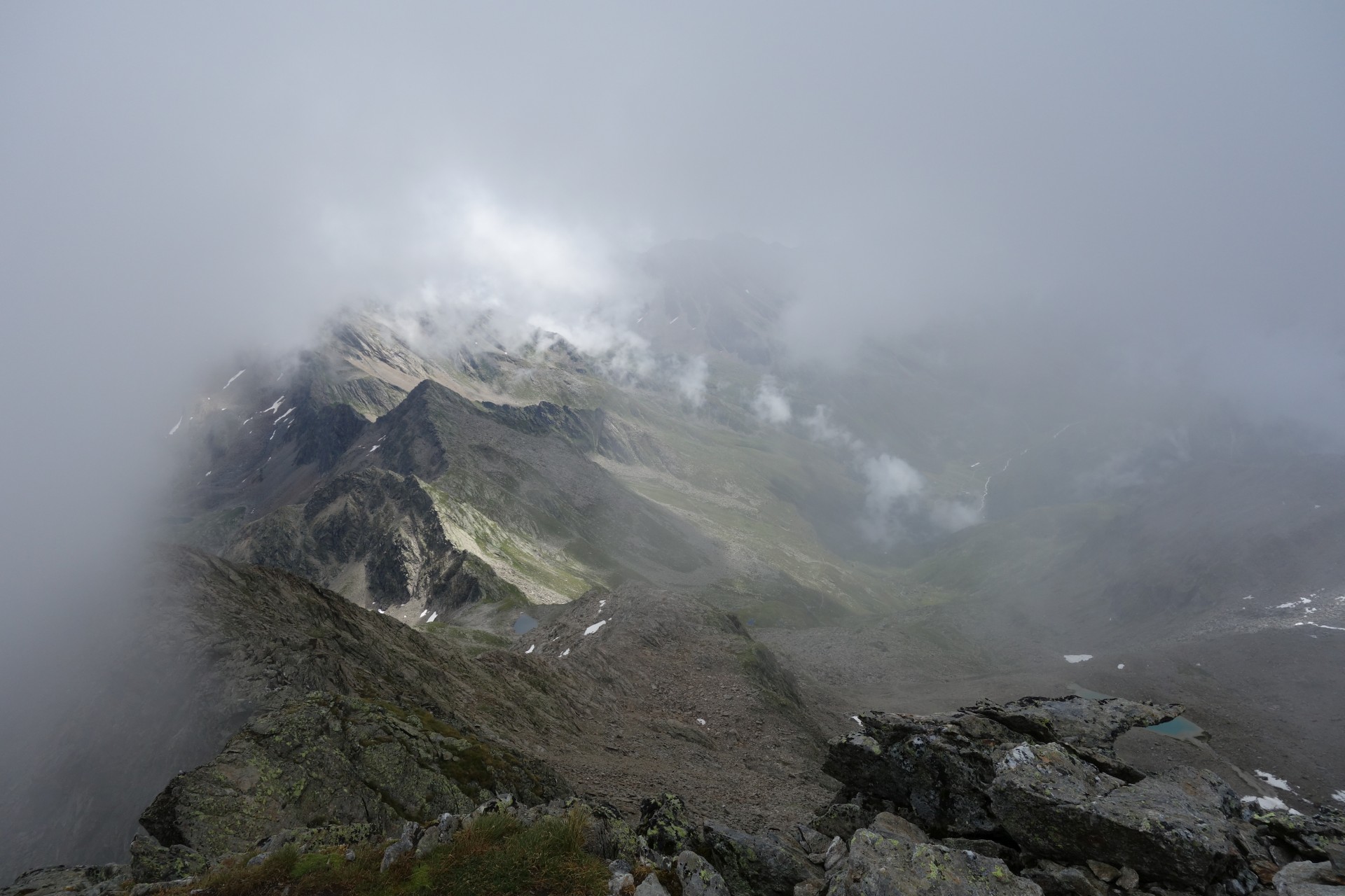 Neue Bielefelder Hütte - Achplatte - Lauser - Niederreichscharte - Hochreichscharte - Hochreichkopf - Schweinfurter Hütte: Es zieht wieder neuer Nebel aus dem Tal auf