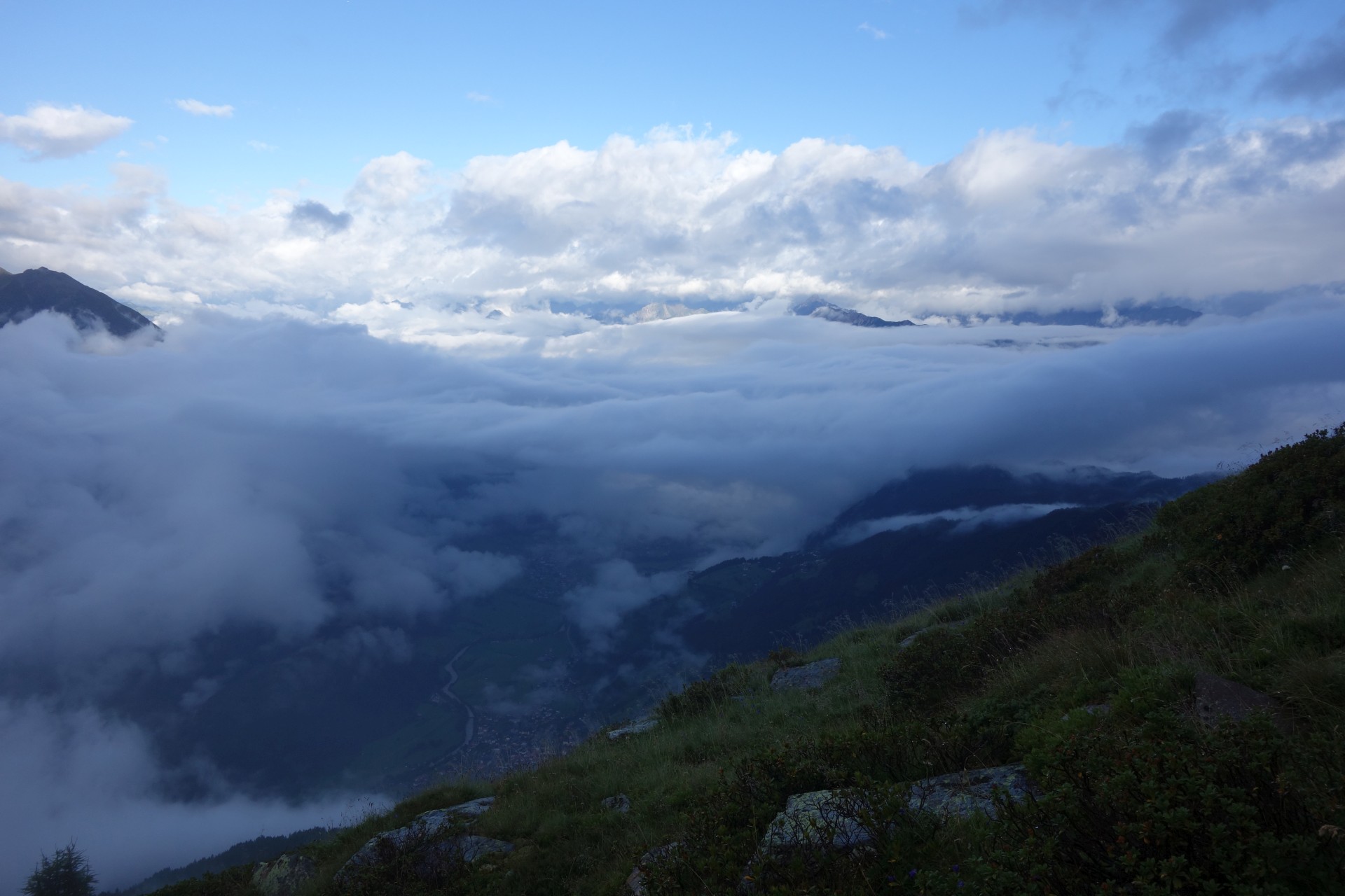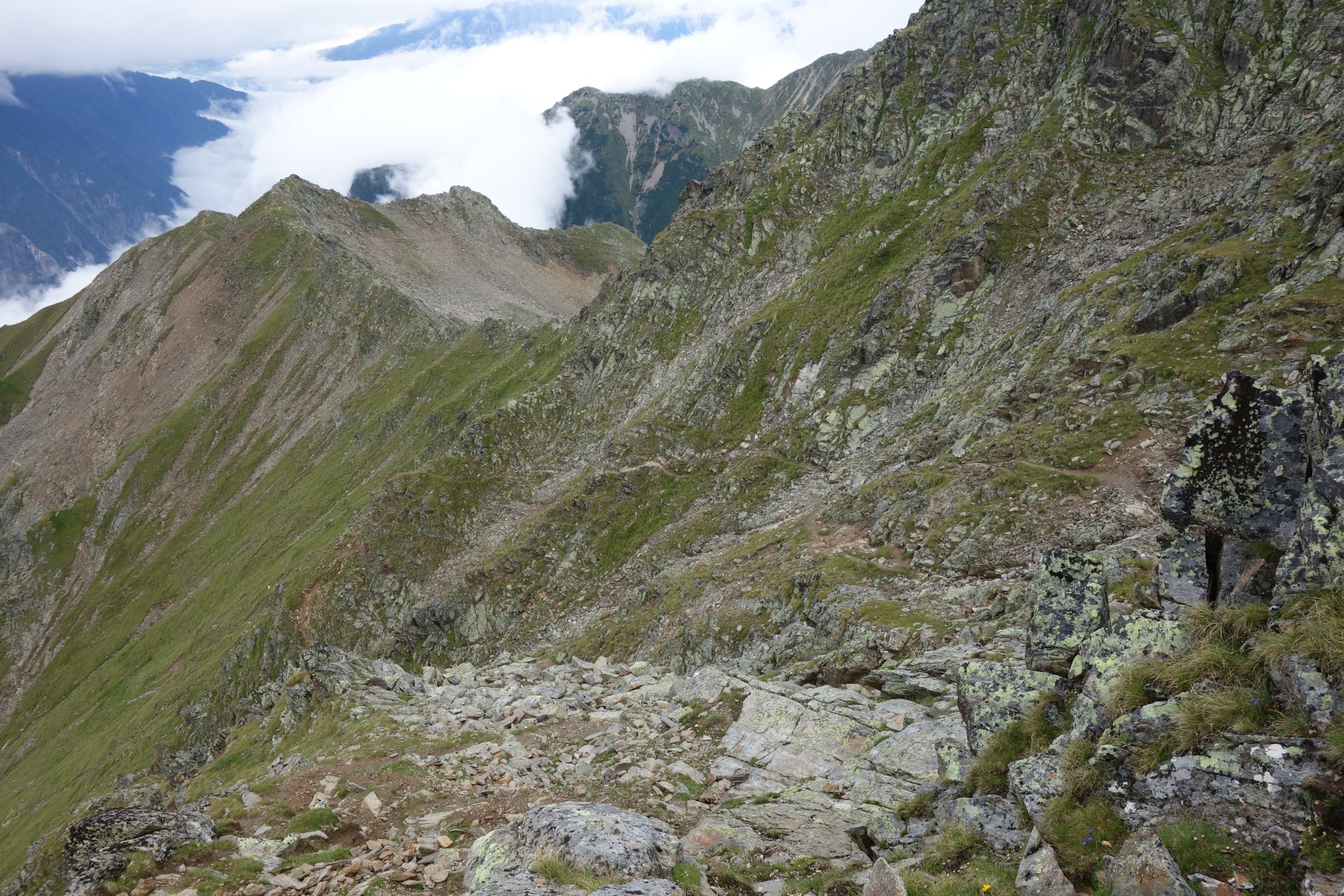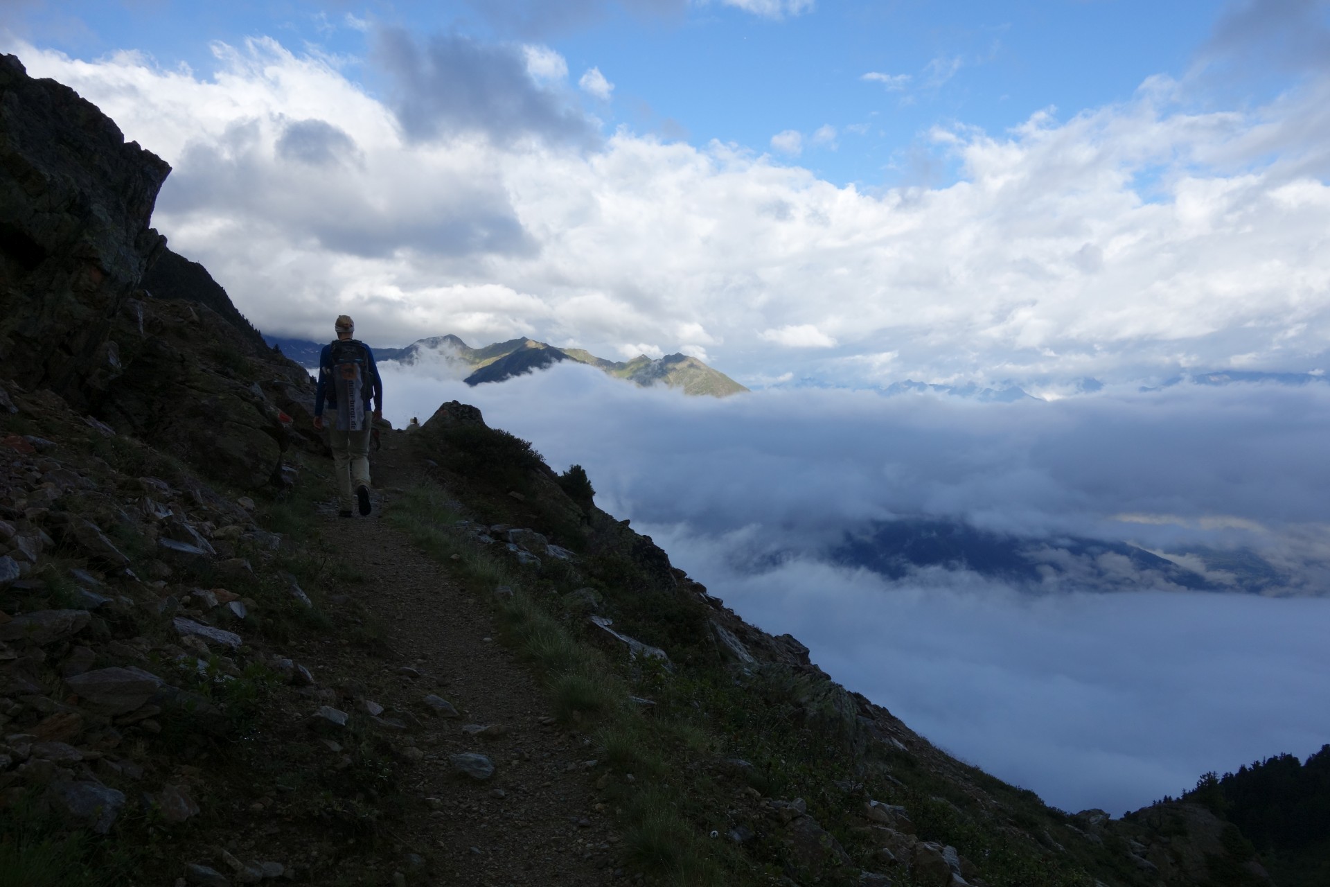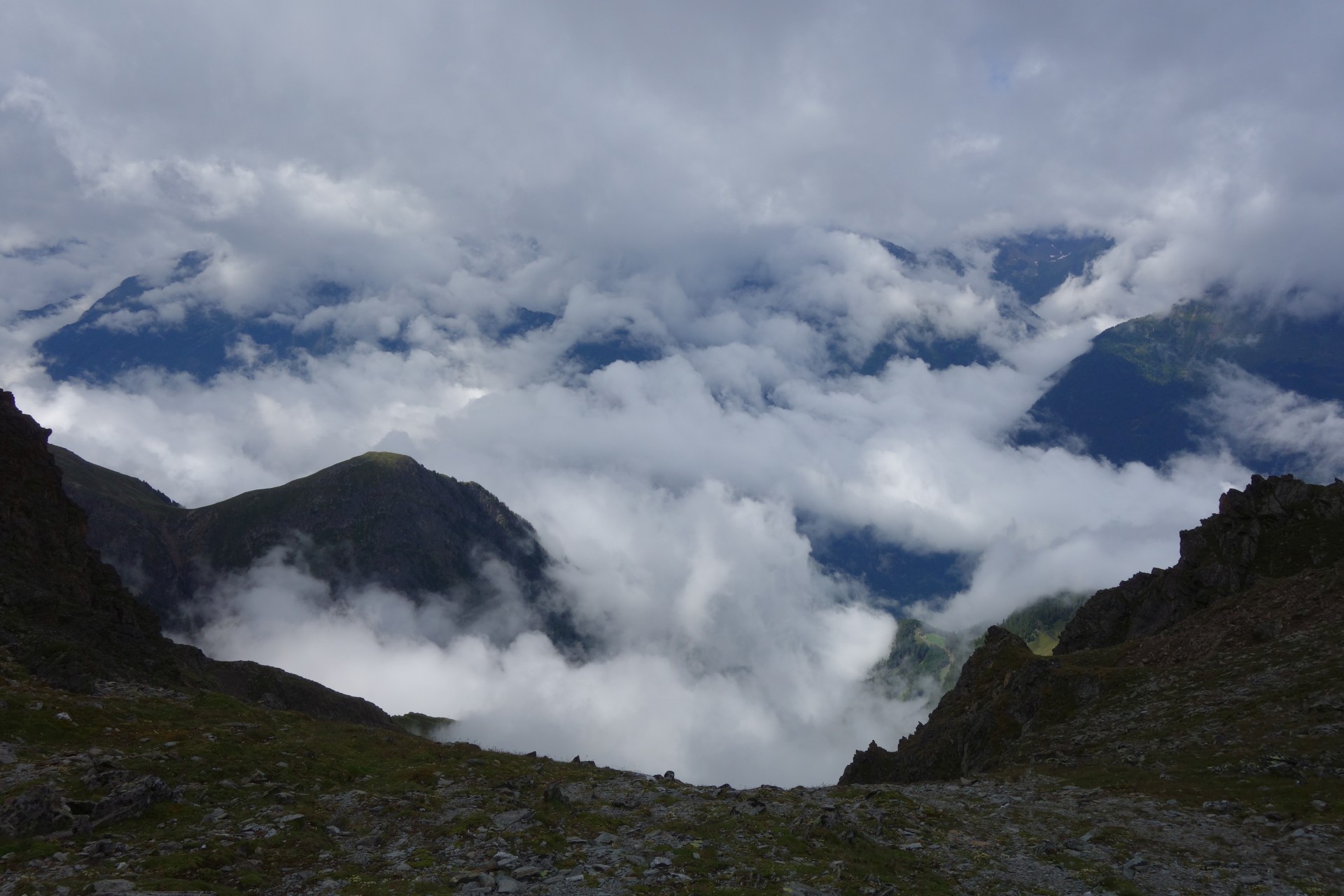 Neue Bielefelder Hütte - Achplatte - Lauser - Niederreichscharte - Hochreichscharte - Hochreichkopf - Schweinfurter Hütte: Ein großer Teil der Wolken befindet sich nun unter uns