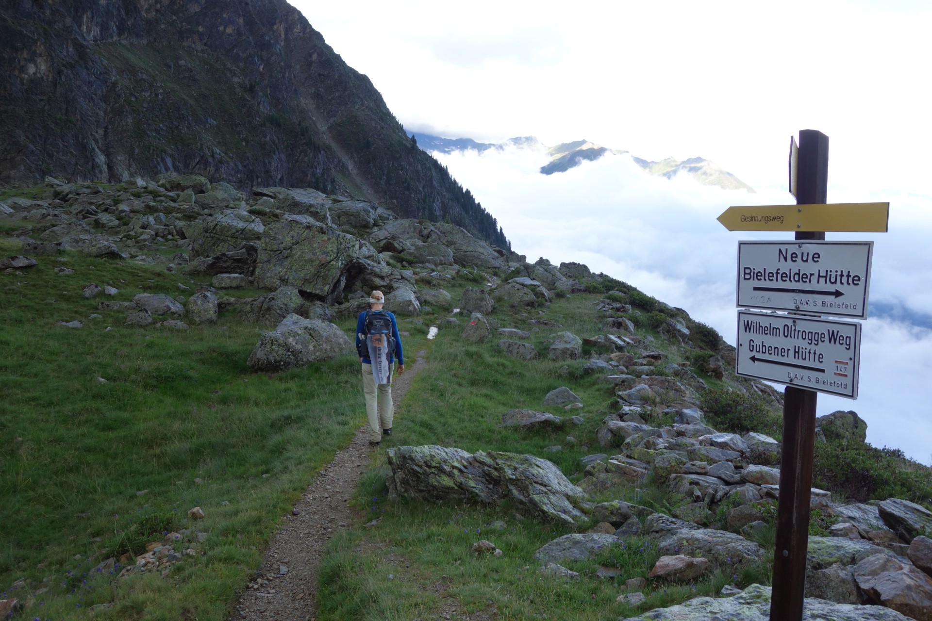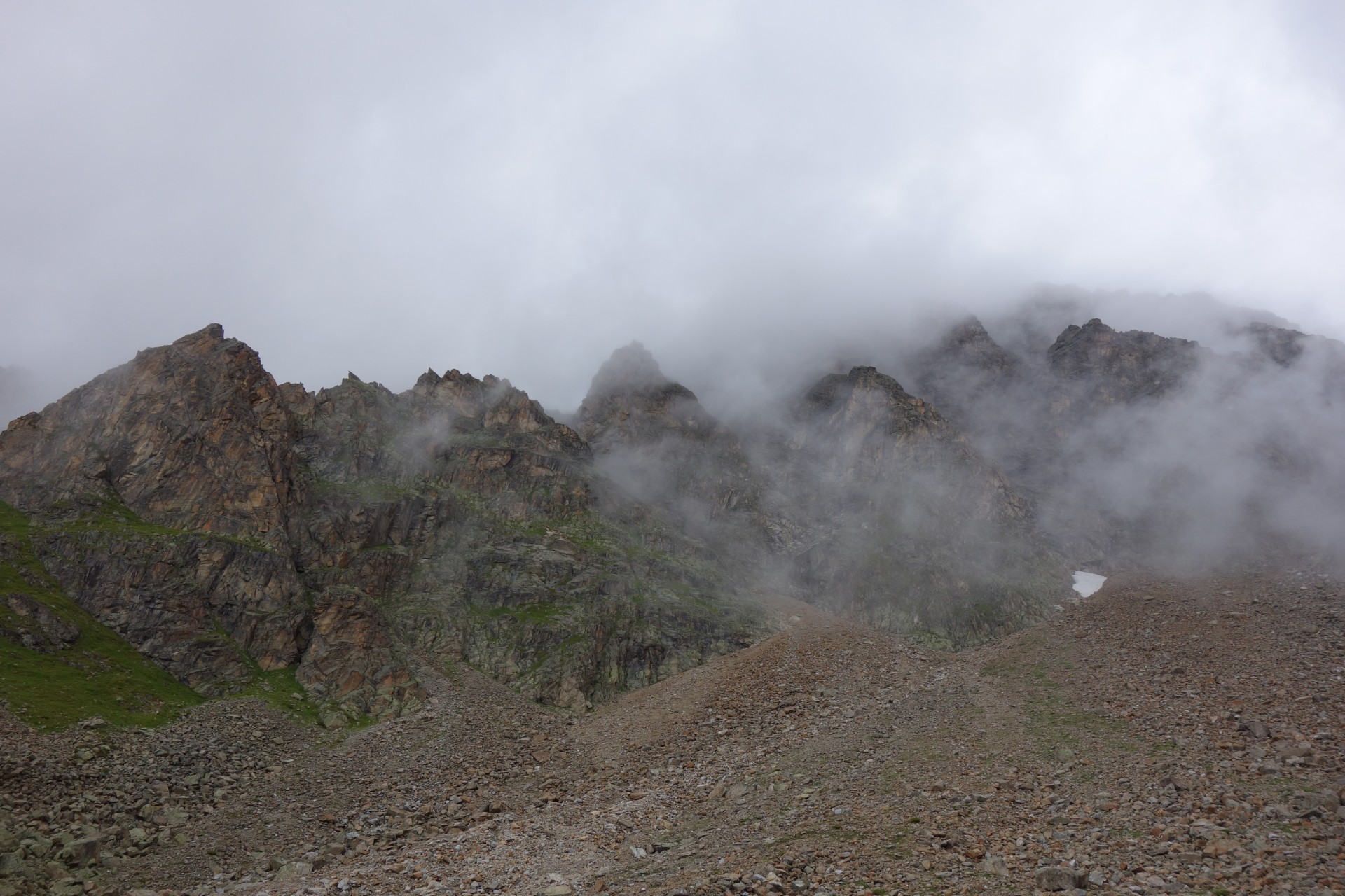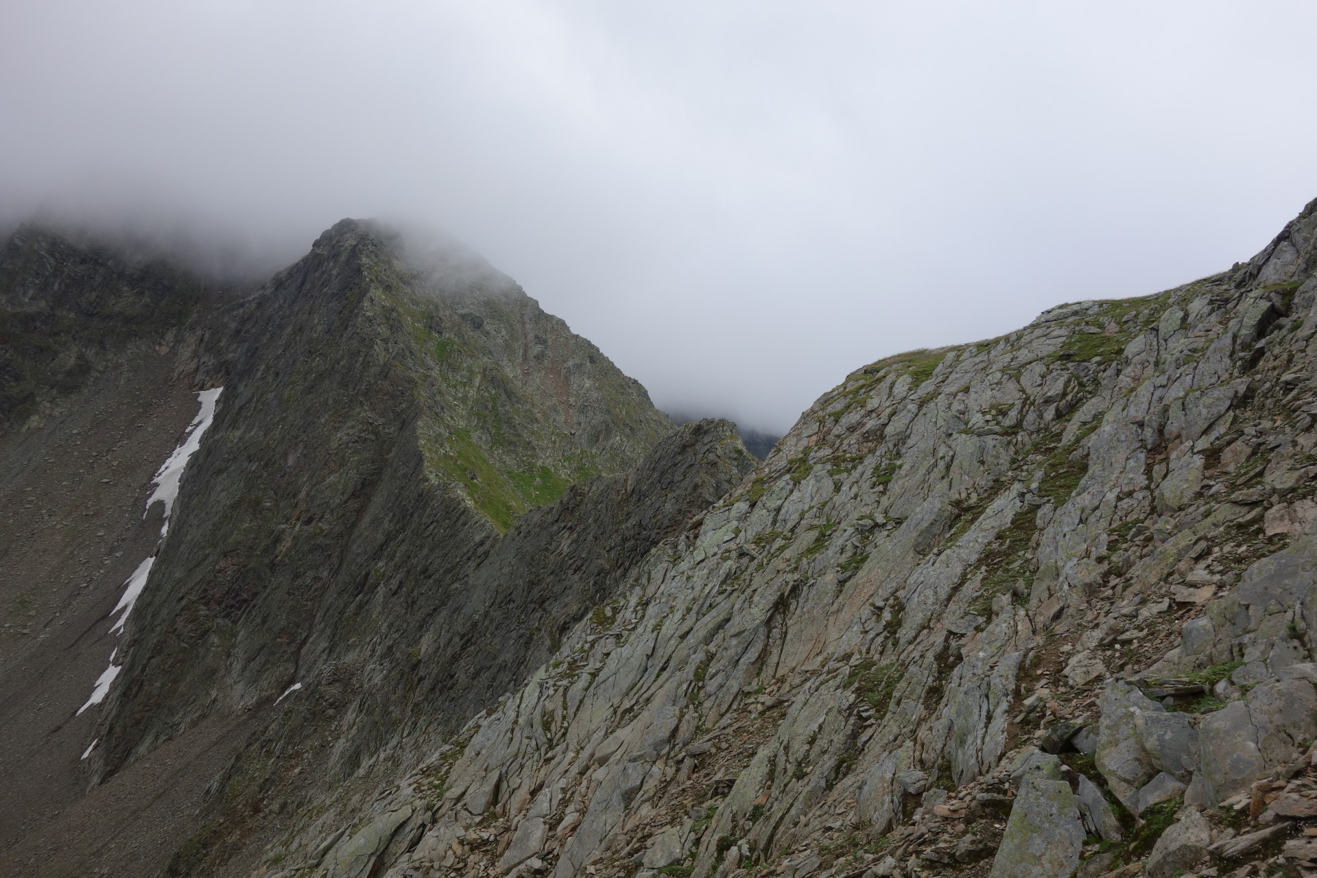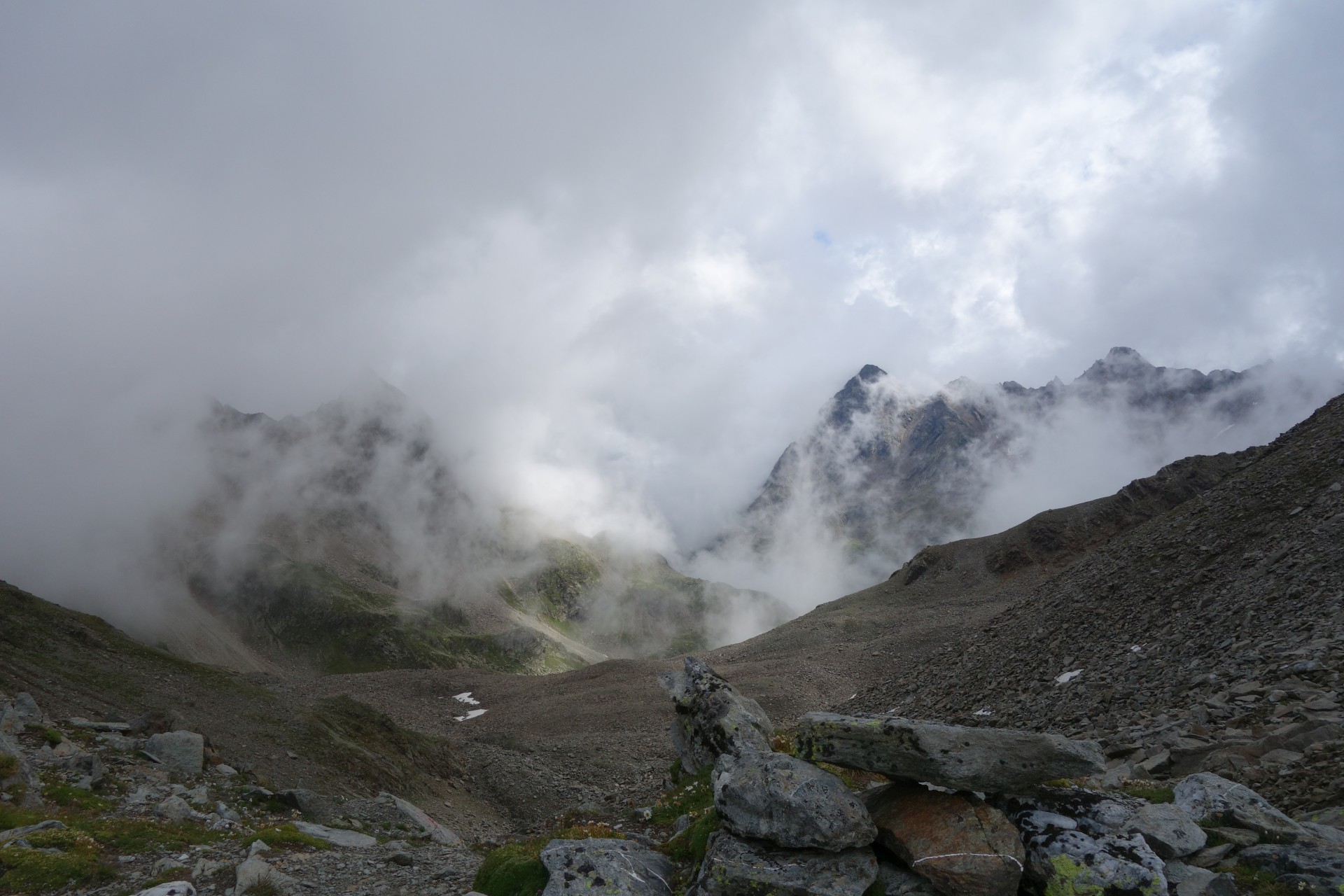 Neue Bielefelder Hütte - Achplatte - Lauser - Niederreichscharte - Hochreichscharte - Hochreichkopf - Schweinfurter Hütte: Wir haben es aus den tief hängenden Wolken herausgeschafft