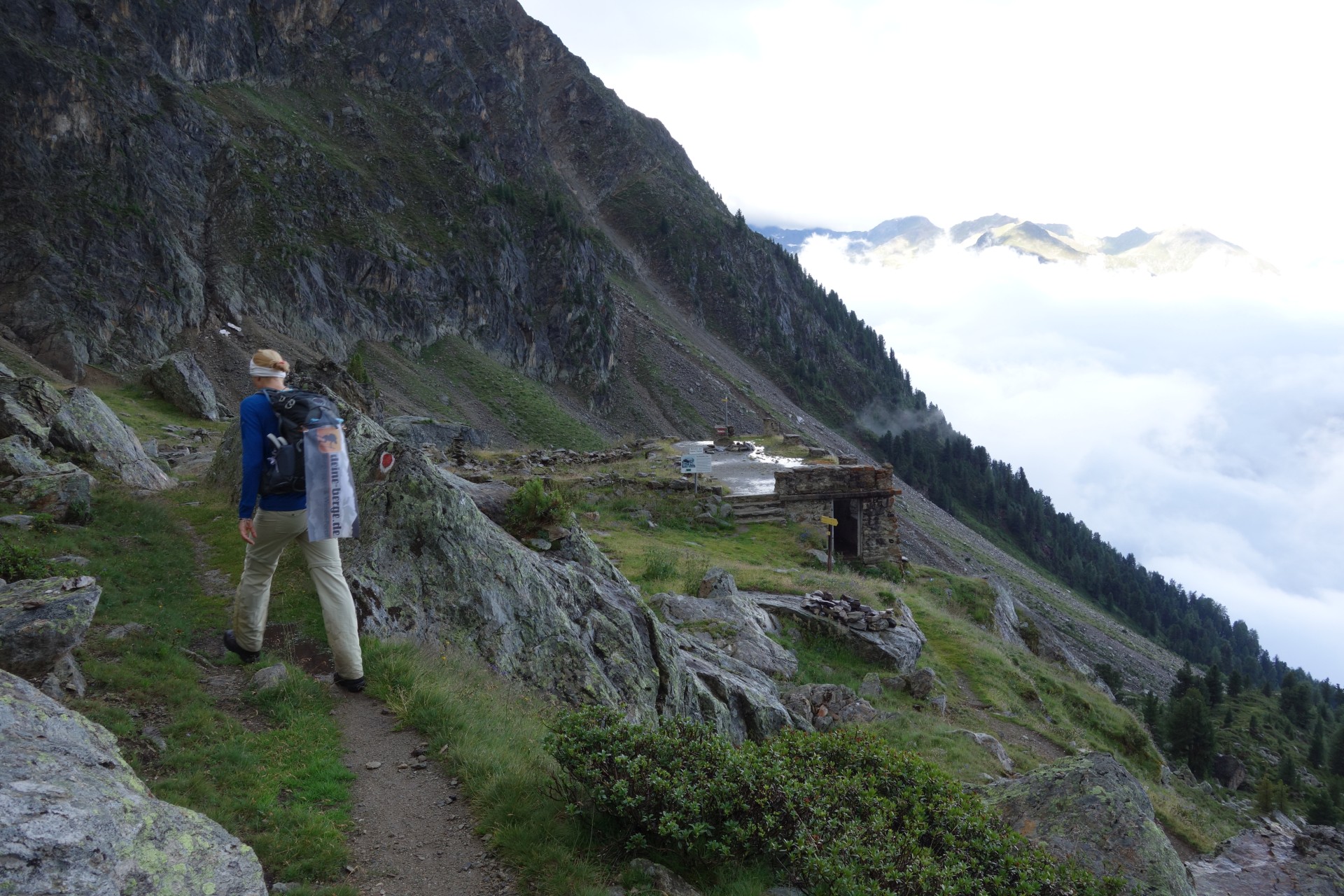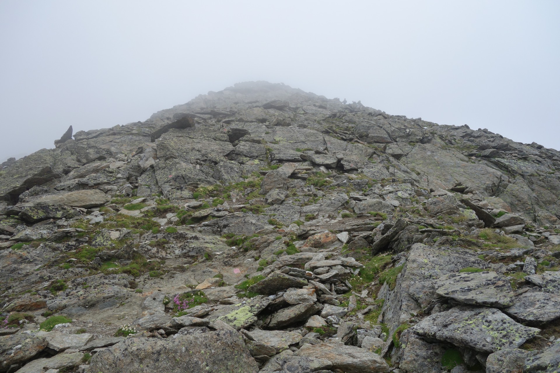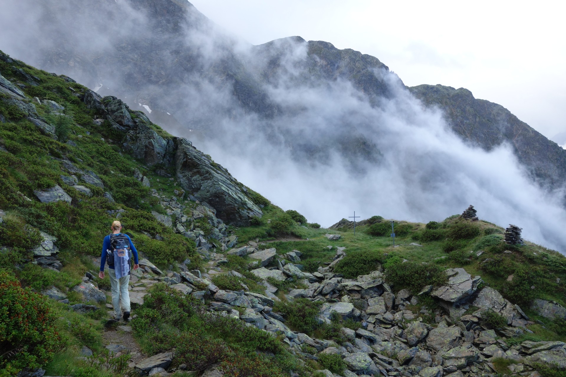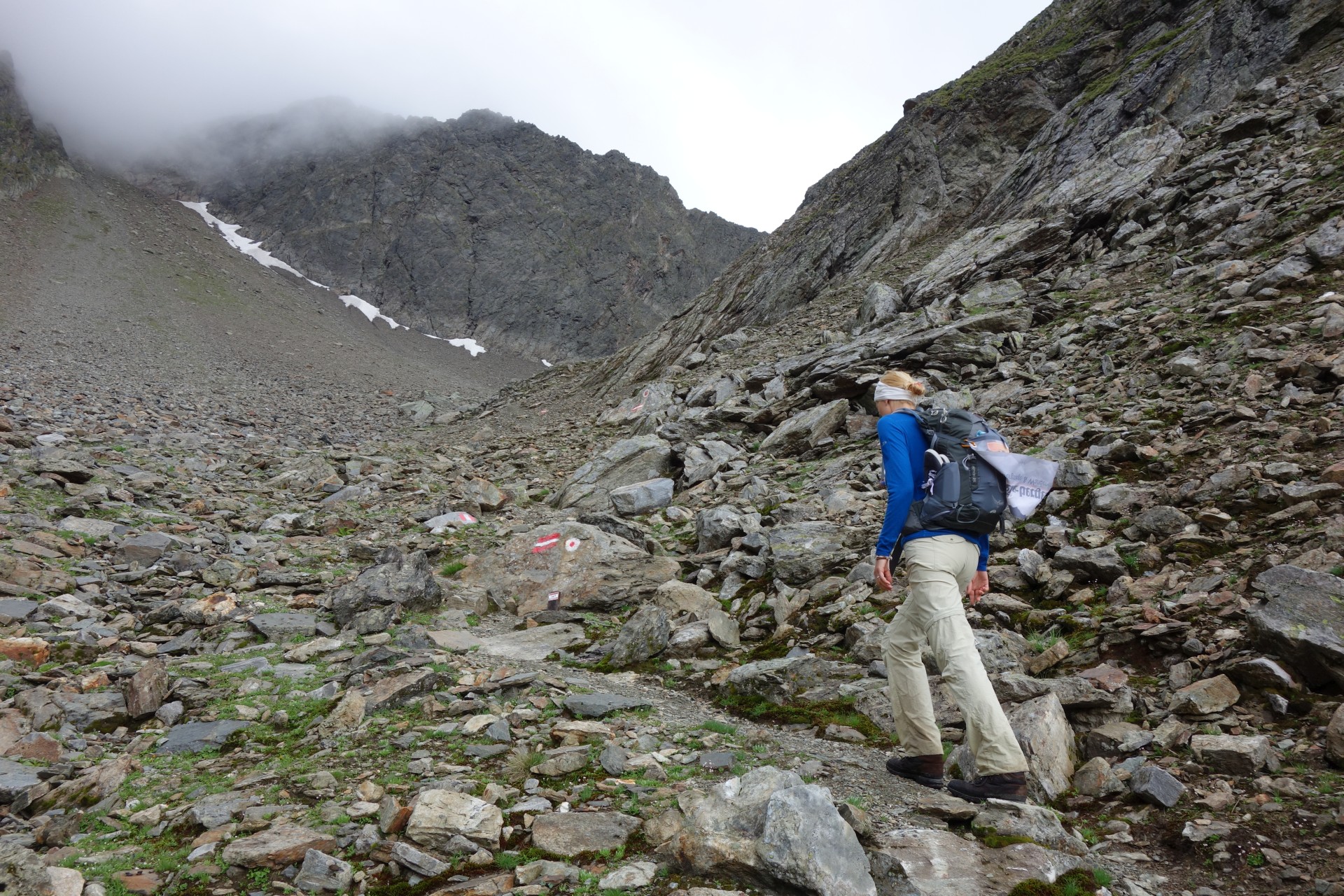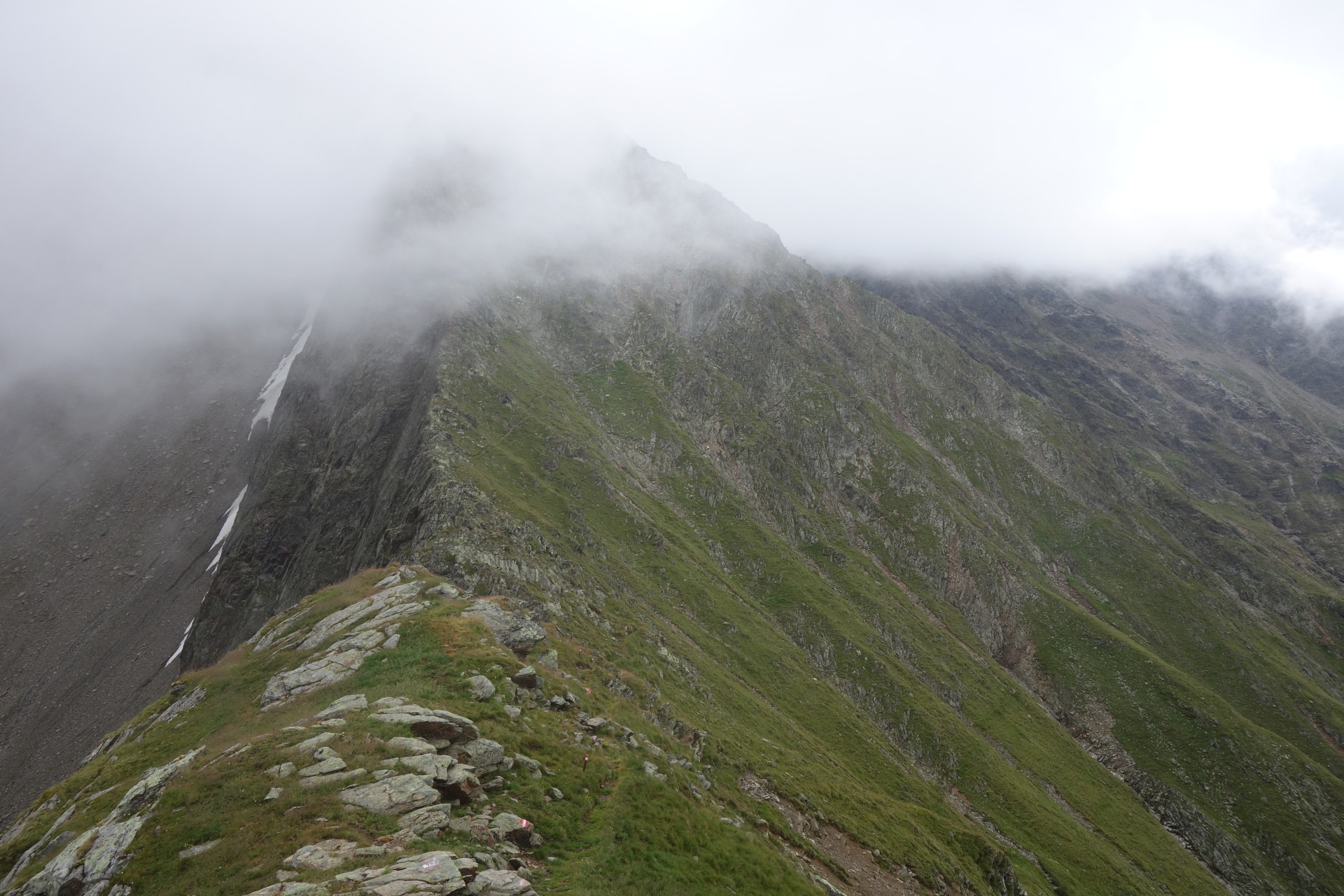 Neue Bielefelder Hütte - Achplatte - Lauser - Niederreichscharte - Hochreichscharte - Hochreichkopf - Schweinfurter Hütte: Wir haben es aus den tief hängenden Wolken herausgeschafft