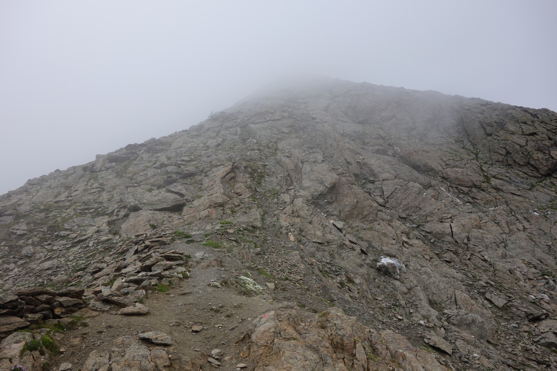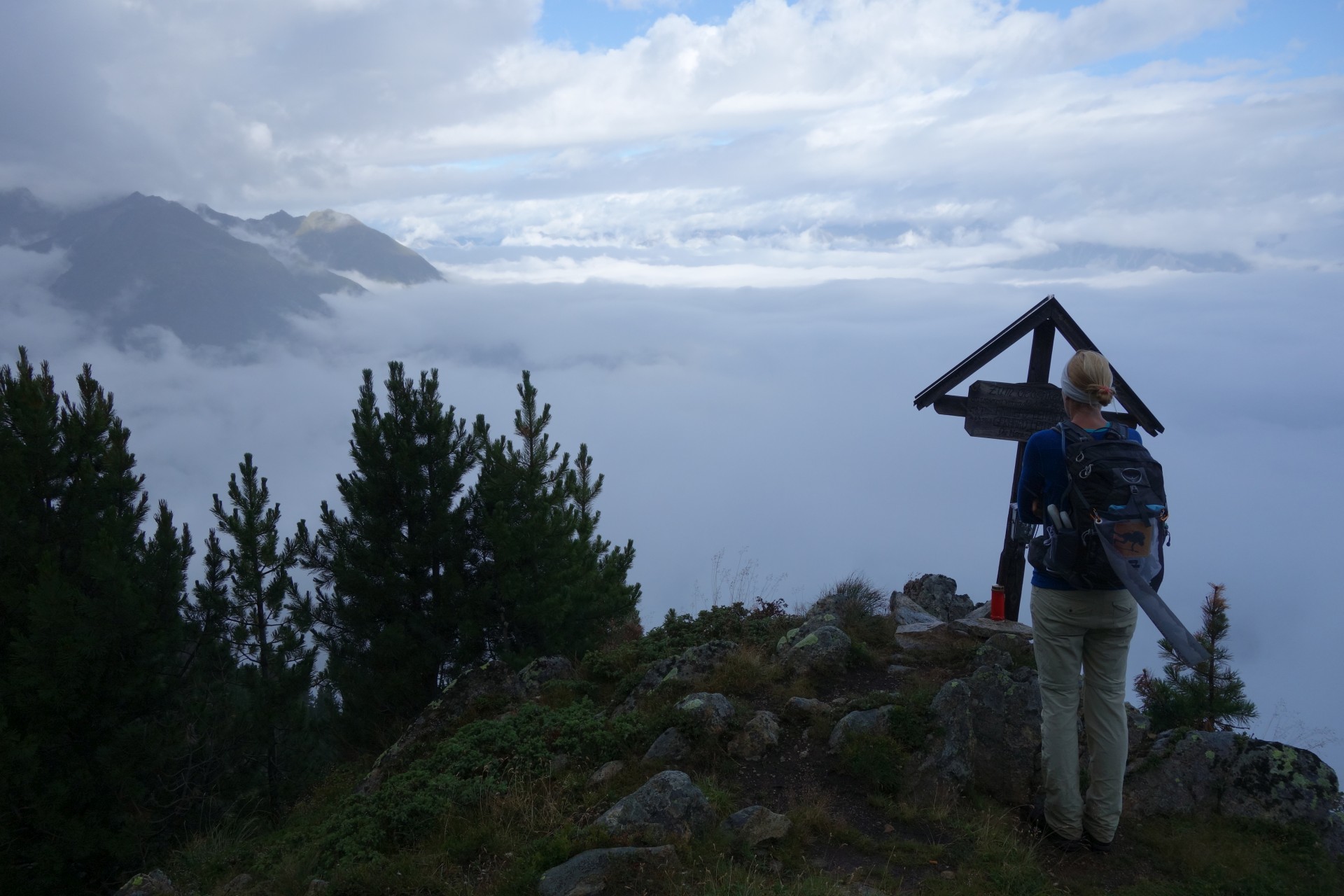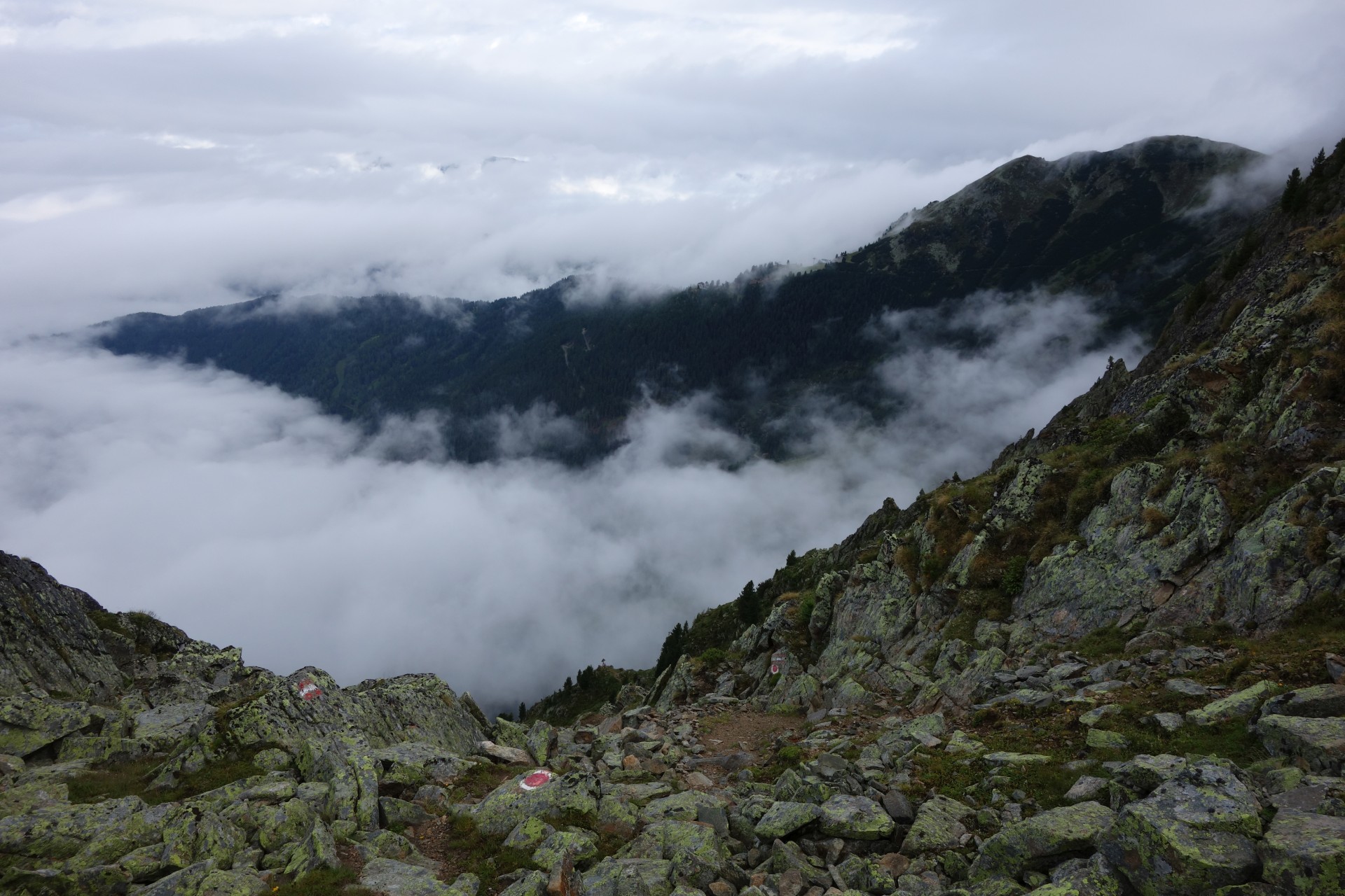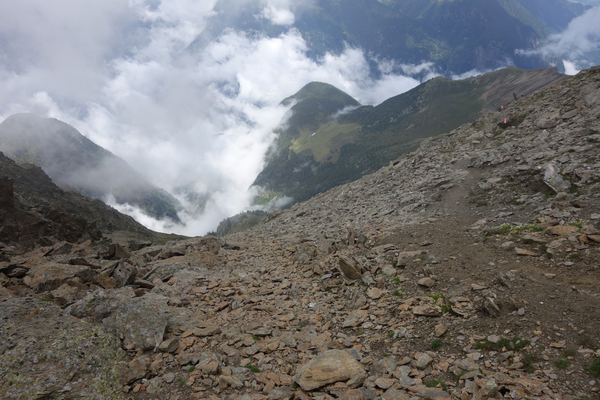 Neue Bielefelder Hütte - Achplatte - Lauser - Niederreichscharte - Hochreichscharte - Hochreichkopf - Schweinfurter Hütte: Wir haben es aus den tief hängenden Wolken herausgeschafft