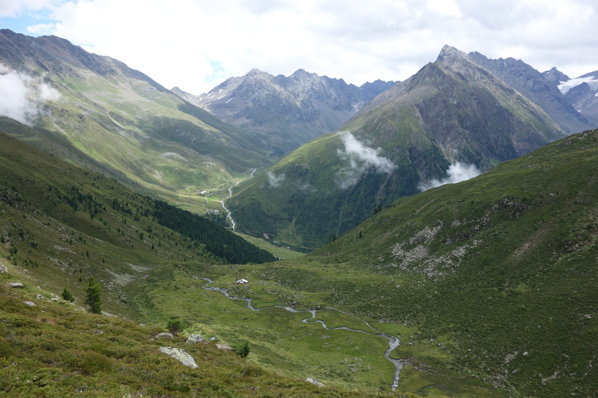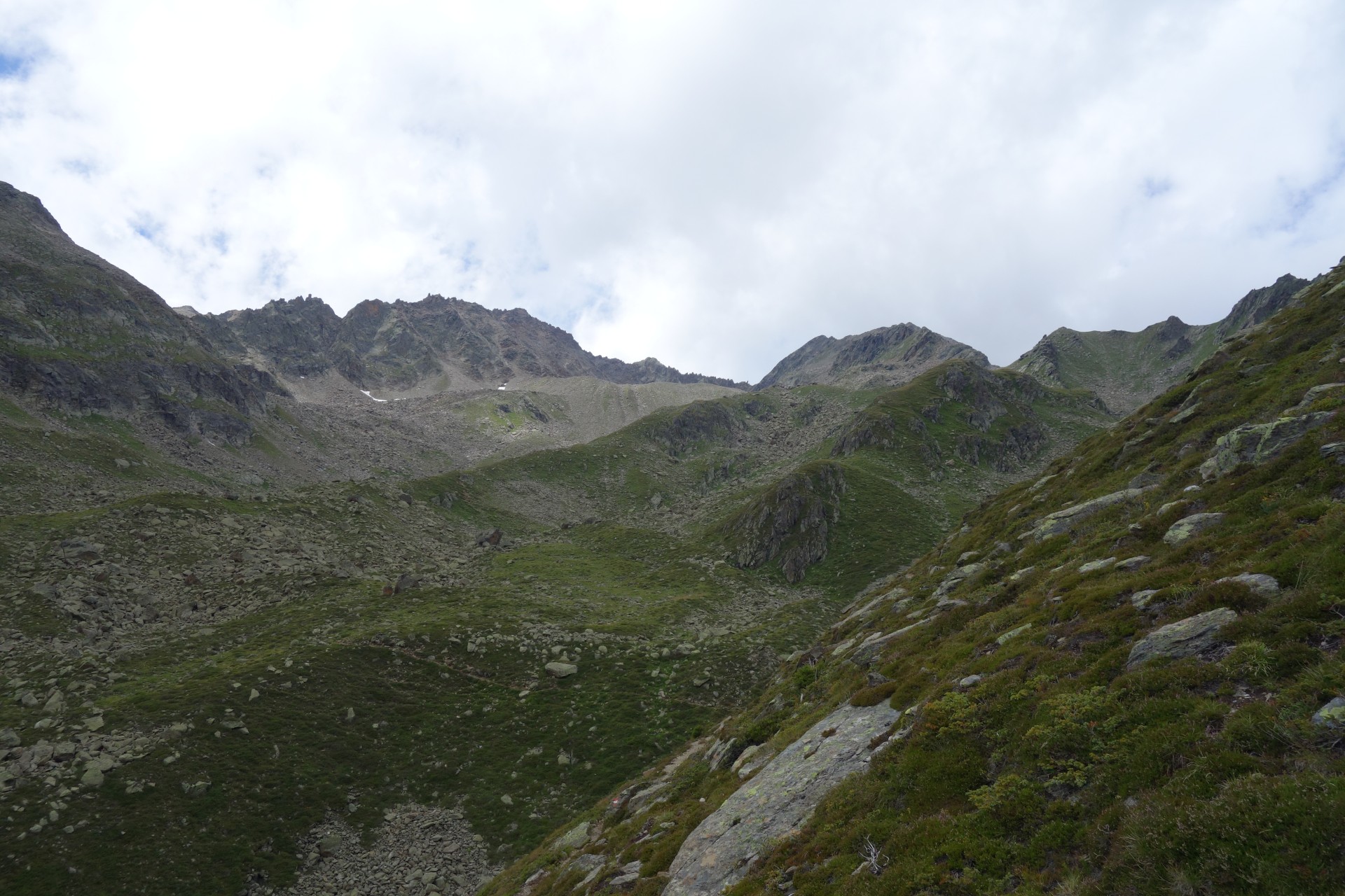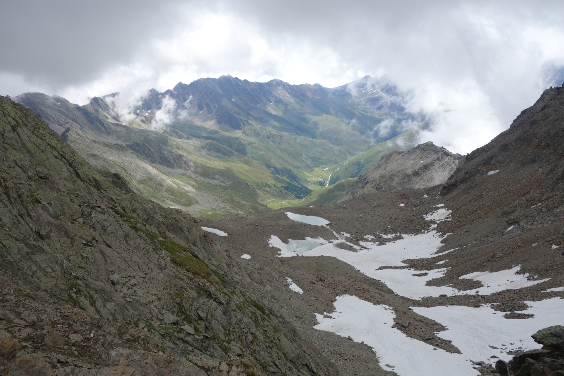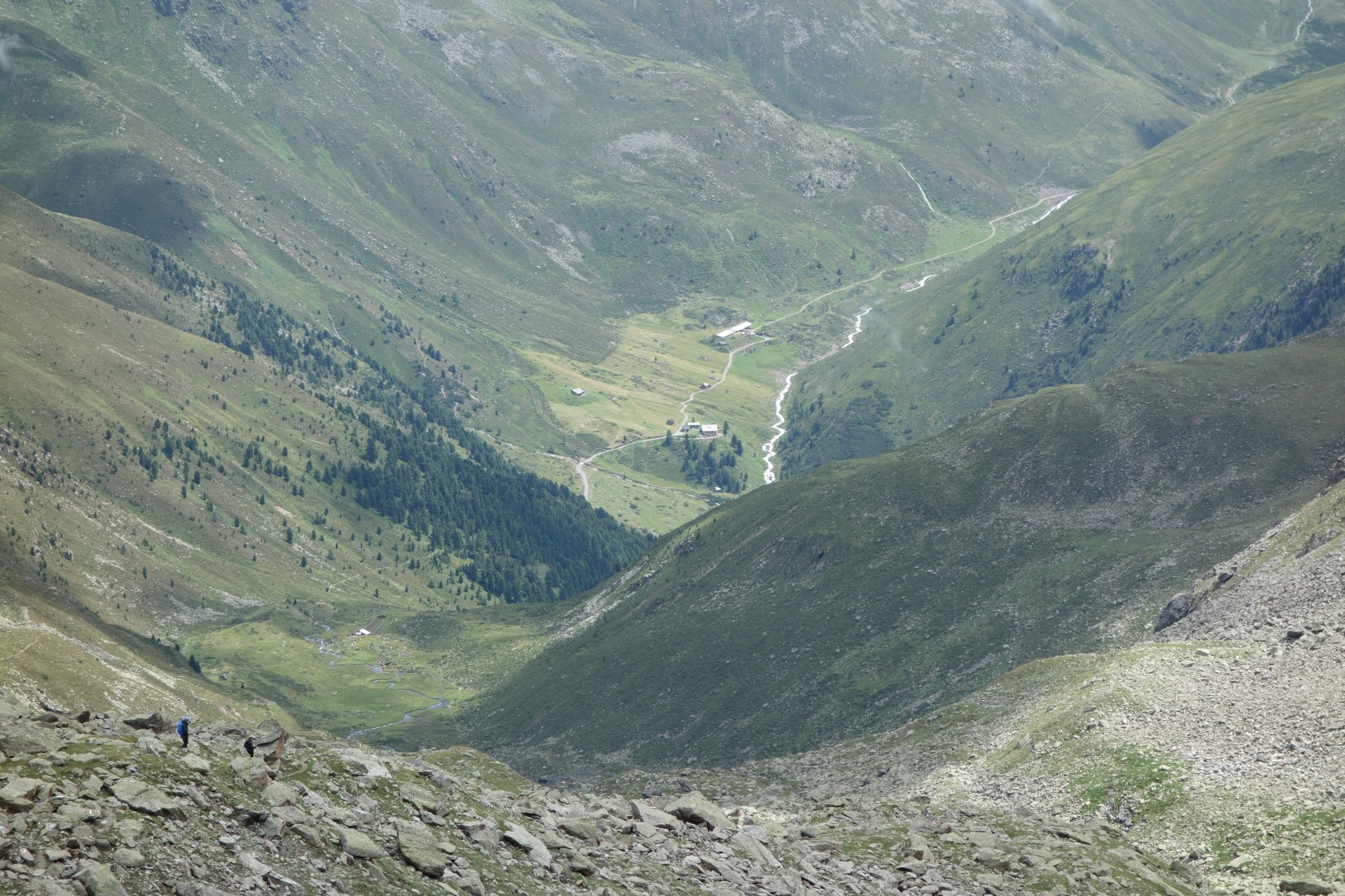 Neue Bielefelder Hütte - Achplatte - Lauser - Niederreichscharte - Hochreichscharte - Hochreichkopf - Schweinfurter Hütte: Blick zurück auf den langen Weg durch das Finstertal