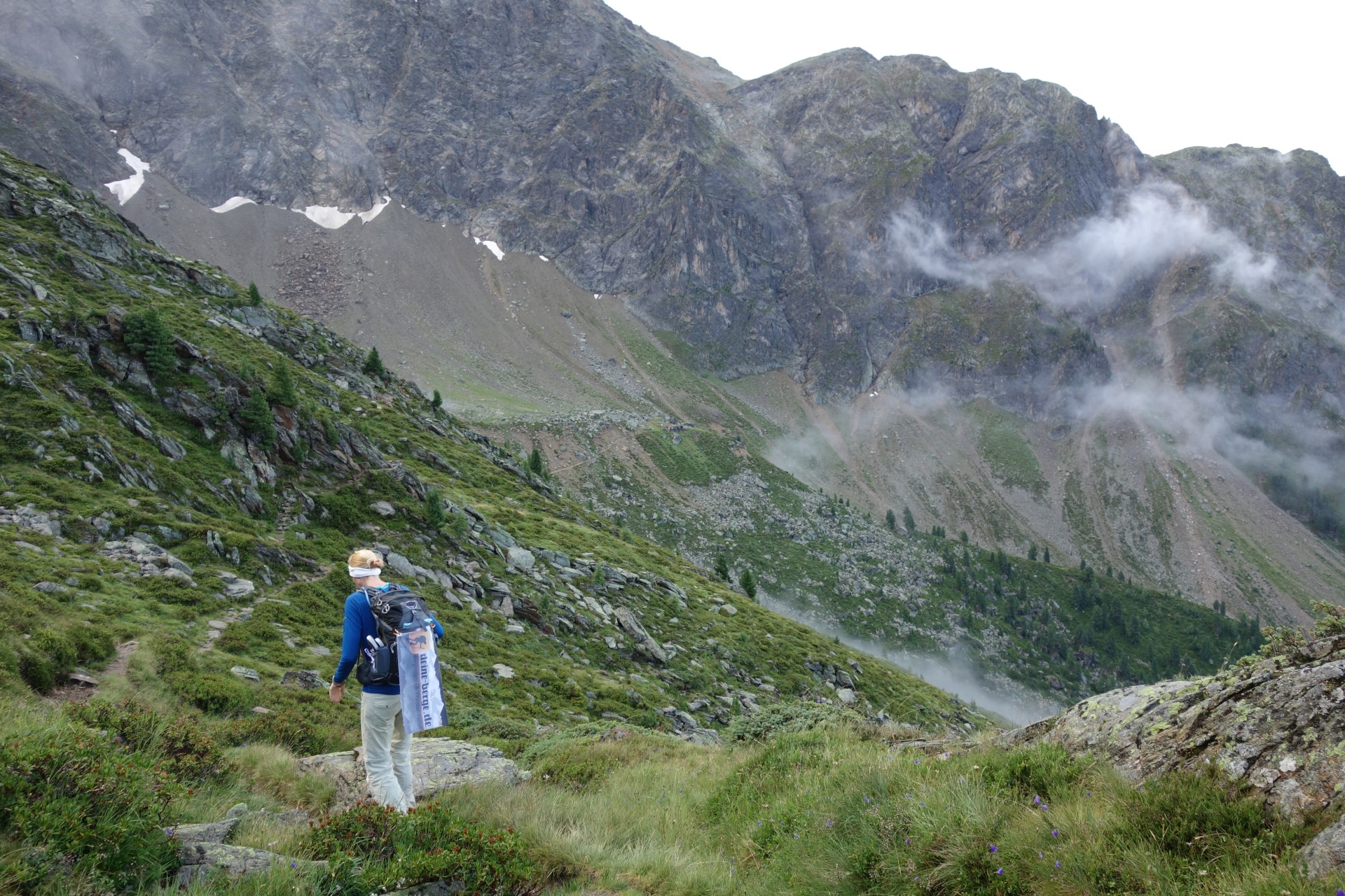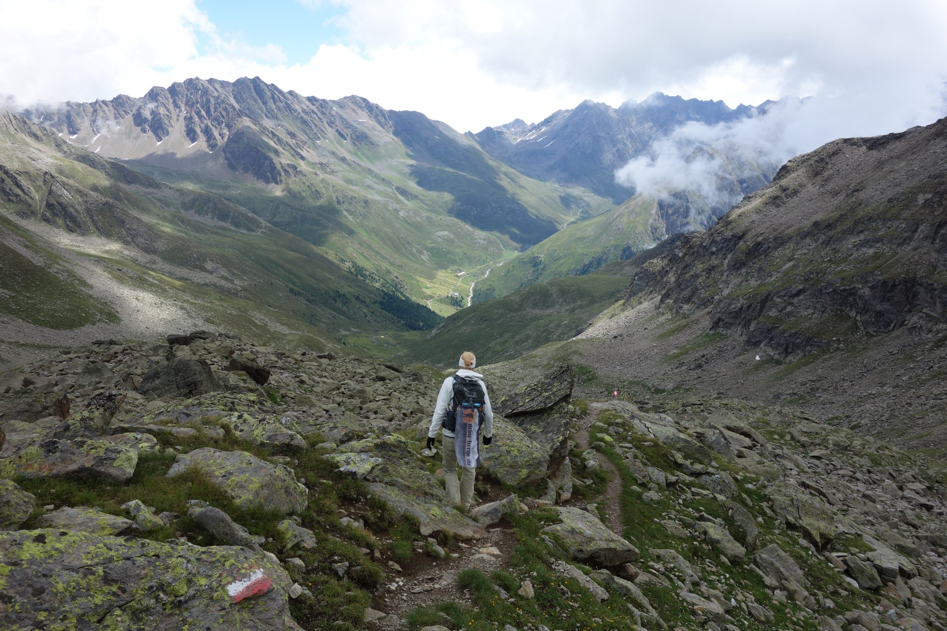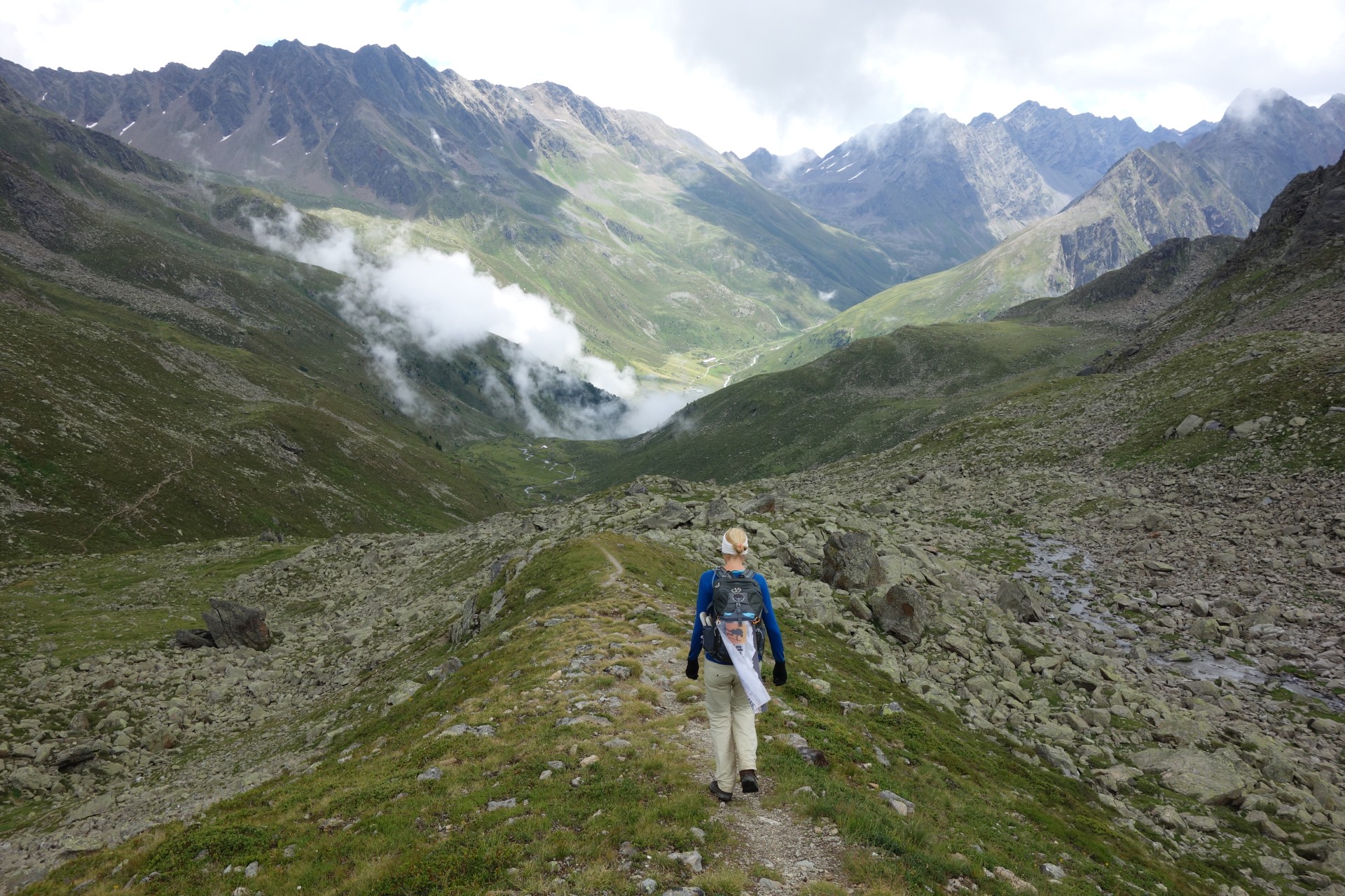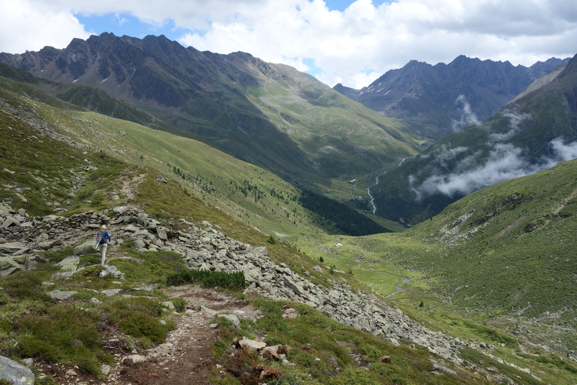 Neue Bielefelder Hütte - Achplatte - Lauser - Niederreichscharte - Hochreichscharte - Hochreichkopf - Schweinfurter Hütte: Blick zurück auf den langen Weg durch das Finstertal