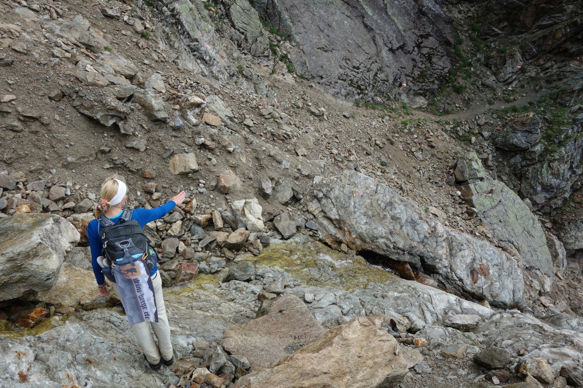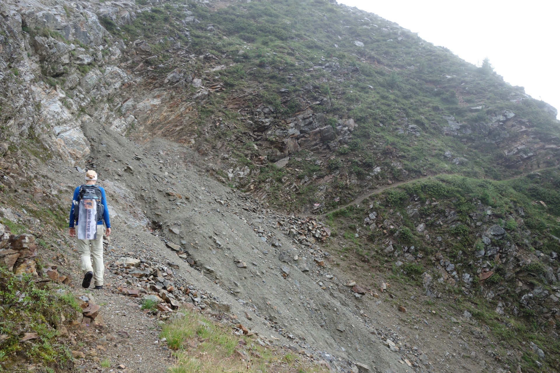 Neue Bielefelder Hütte - Achplatte - Lauser - Niederreichscharte - Hochreichscharte - Hochreichkopf - Schweinfurter Hütte: Teile des Weges wurden von einem kleinen Erdrutsch verschüttet