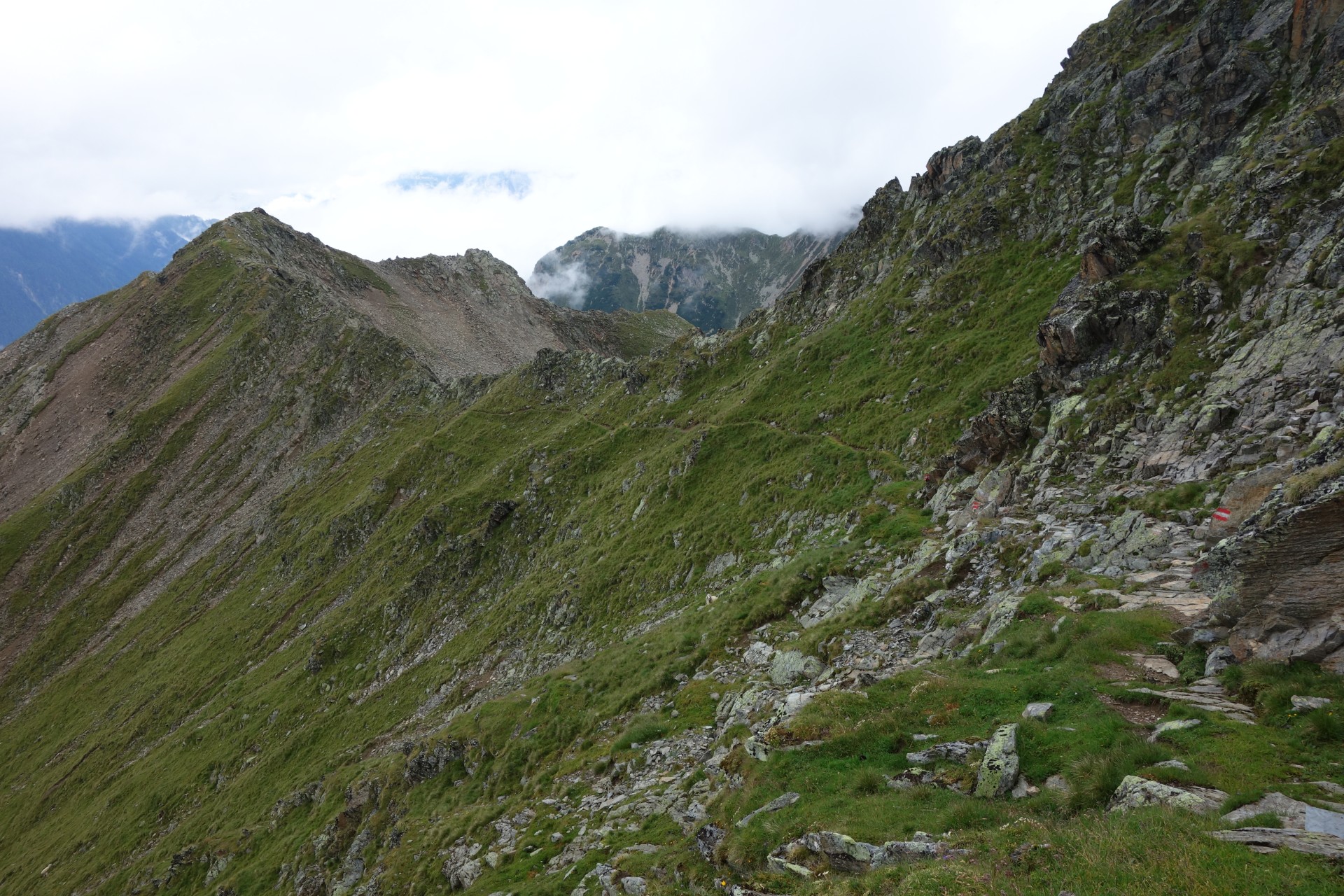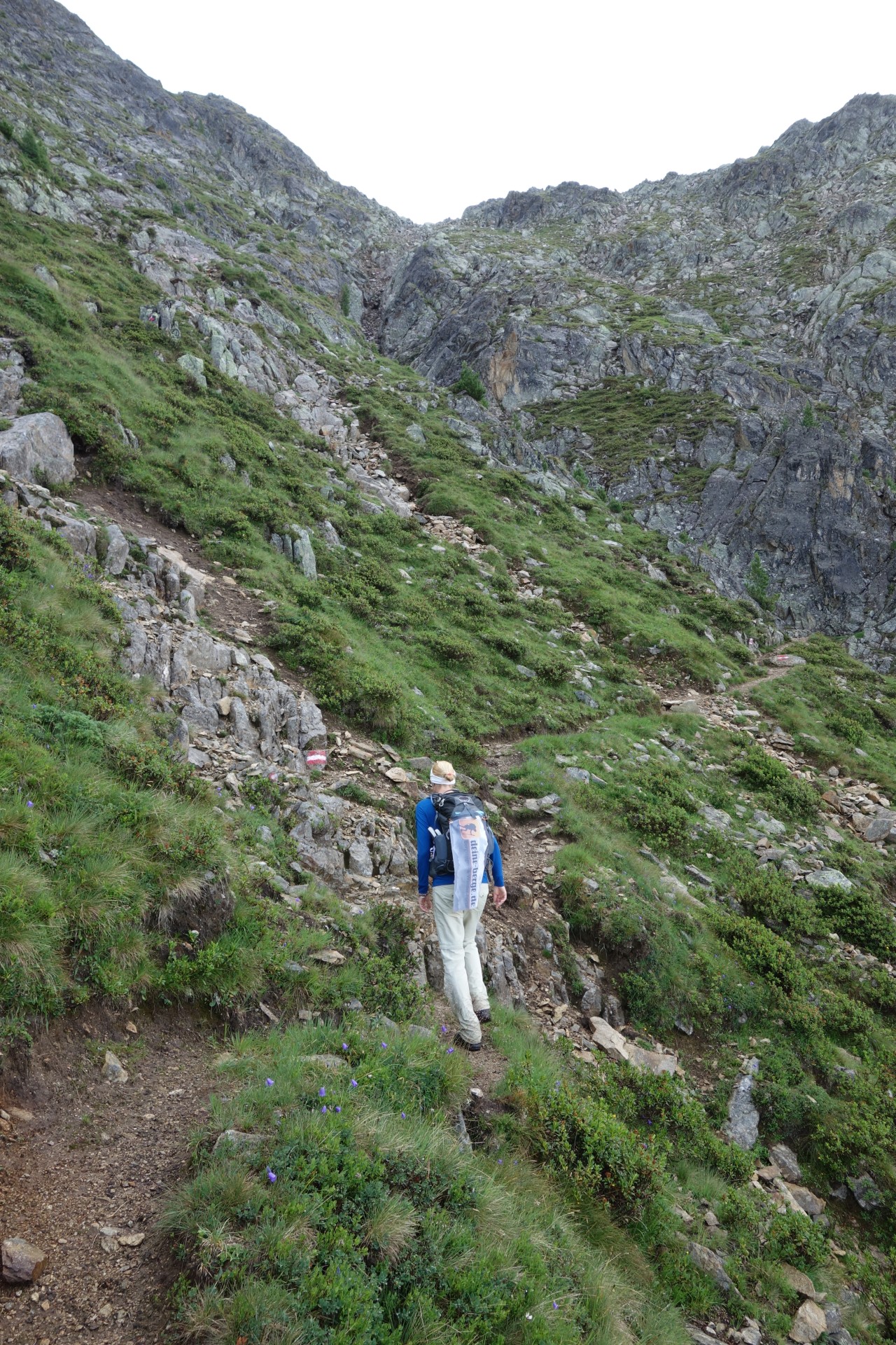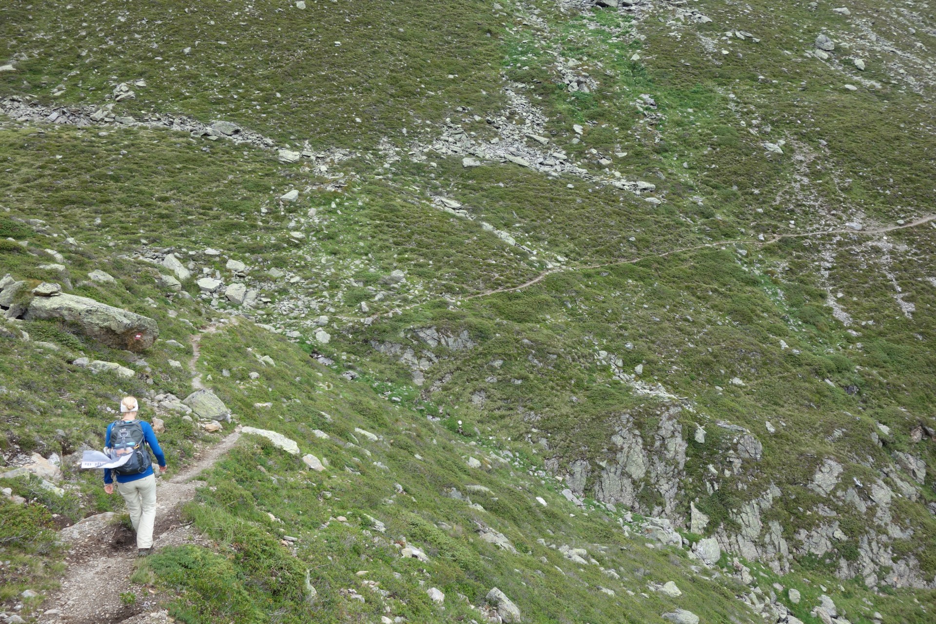 Neue Bielefelder Hütte - Achplatte - Lauser - Niederreichscharte - Hochreichscharte - Hochreichkopf - Schweinfurter Hütte: Der Weg schlängelt sich nun am Grashang entlang