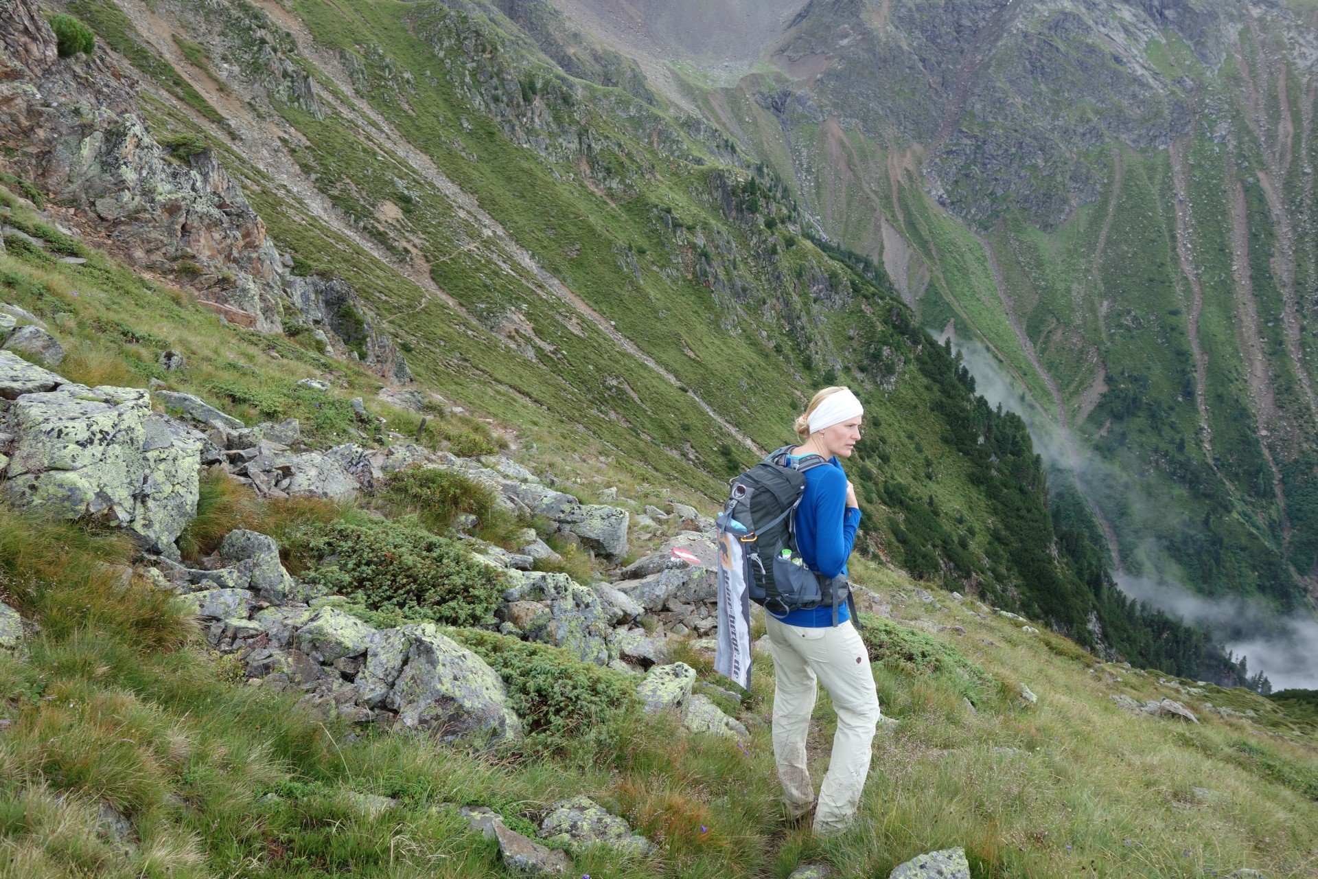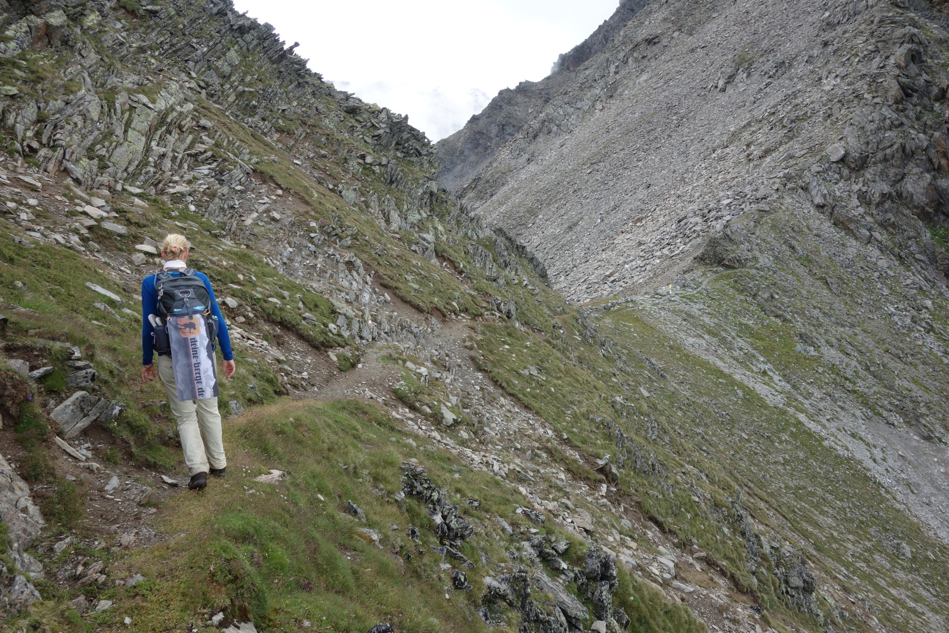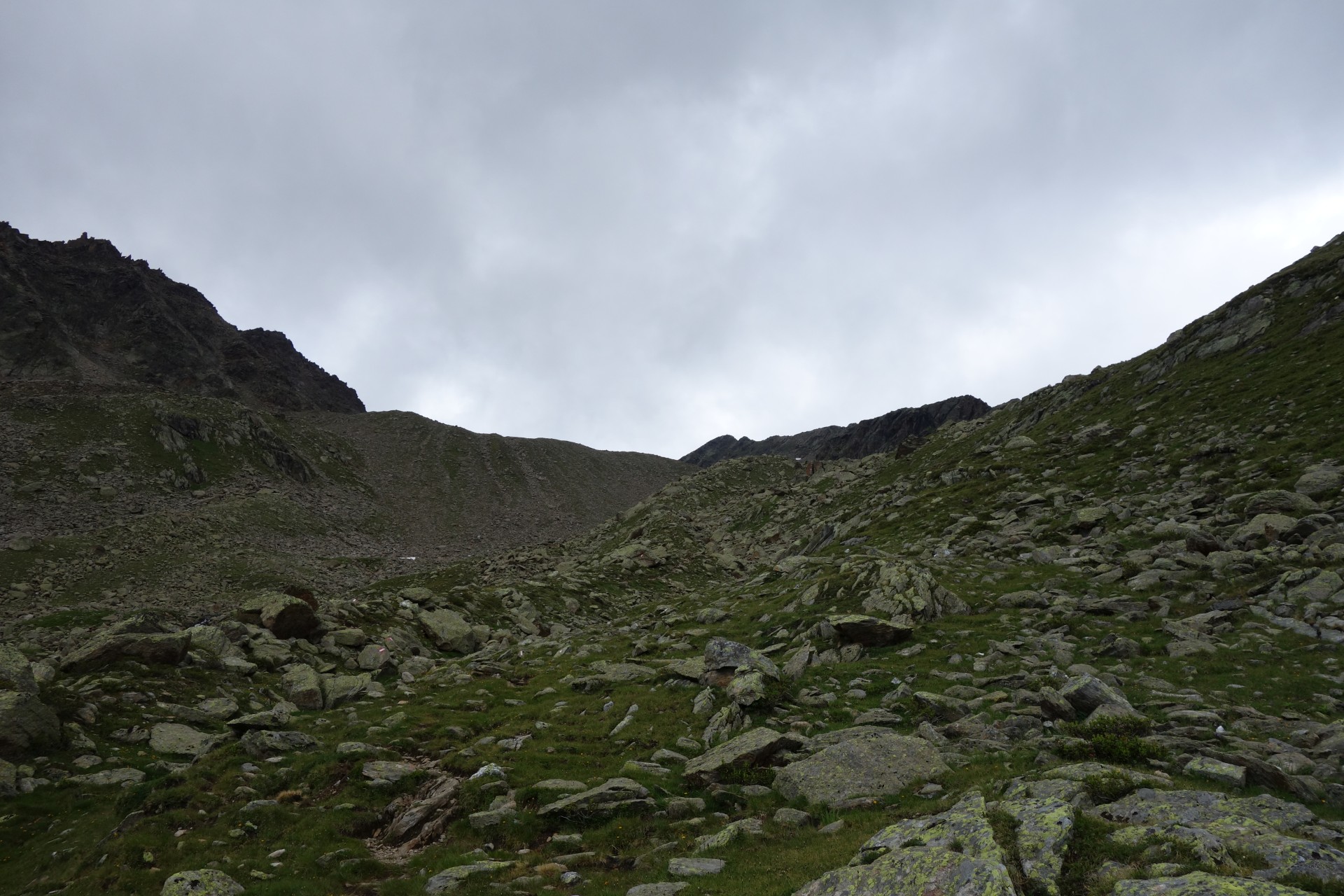 Neue Bielefelder Hütte - Achplatte - Lauser - Niederreichscharte - Hochreichscharte - Hochreichkopf - Schweinfurter Hütte: Der Weg schlängelt sich nun am Grashang entlang