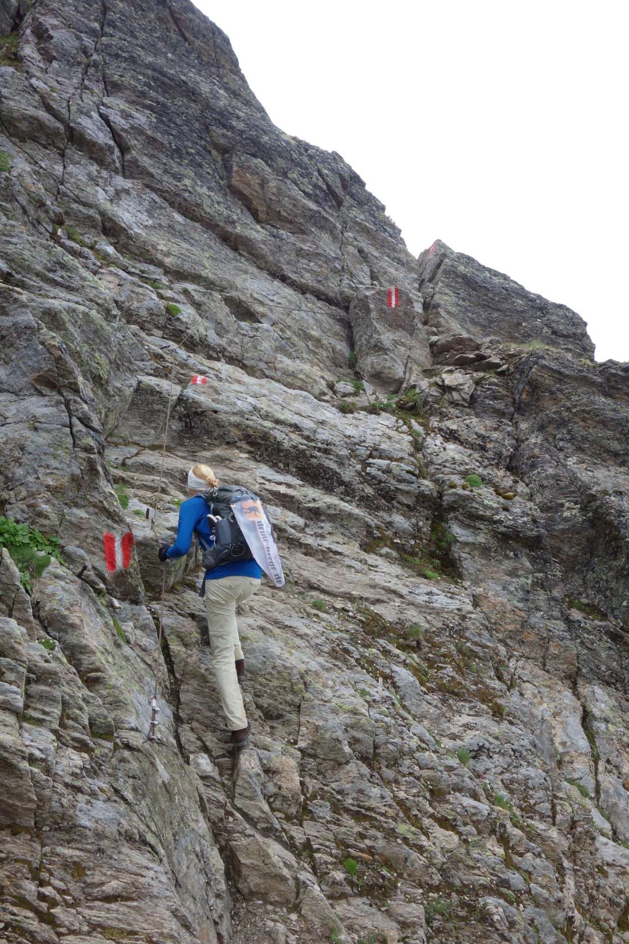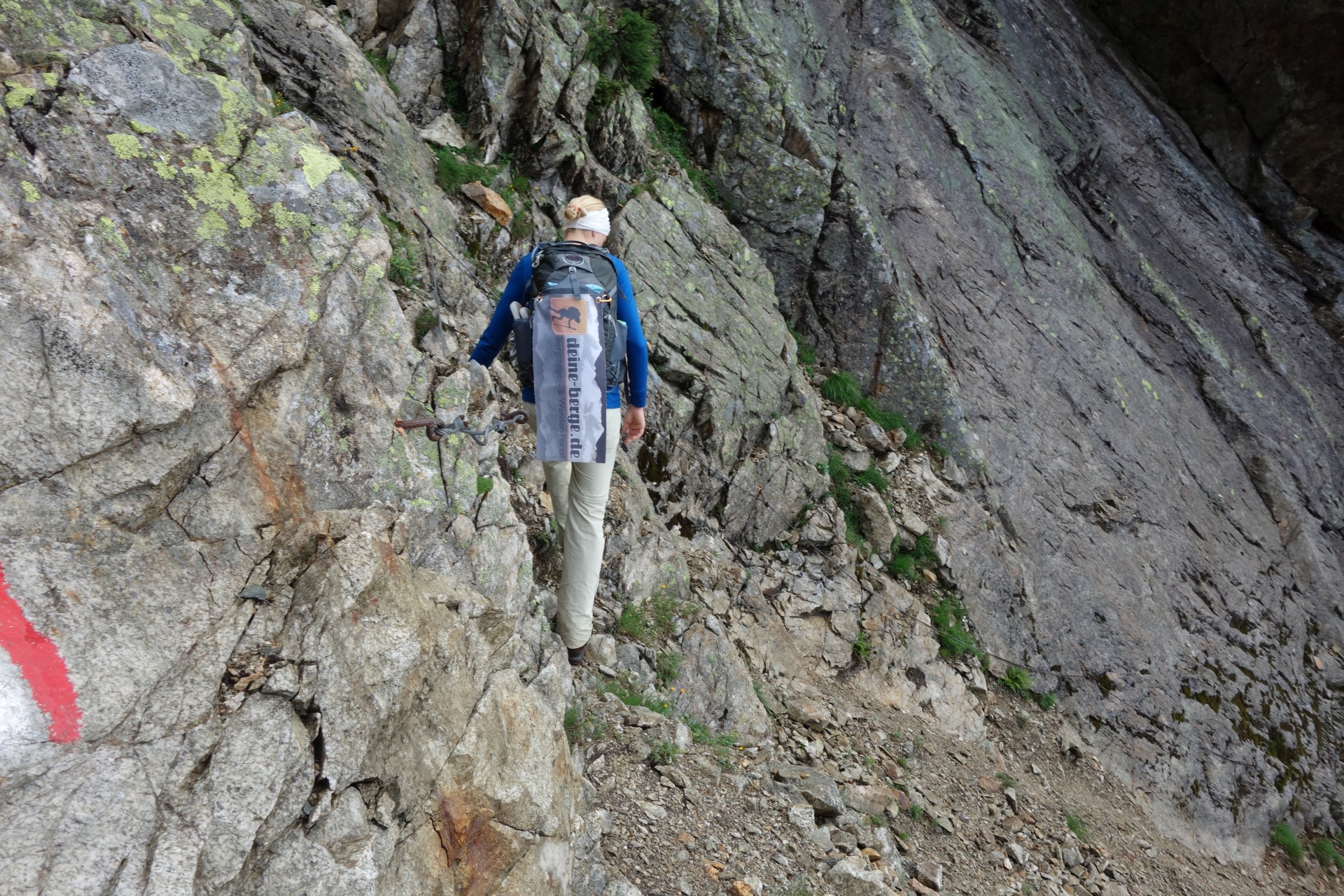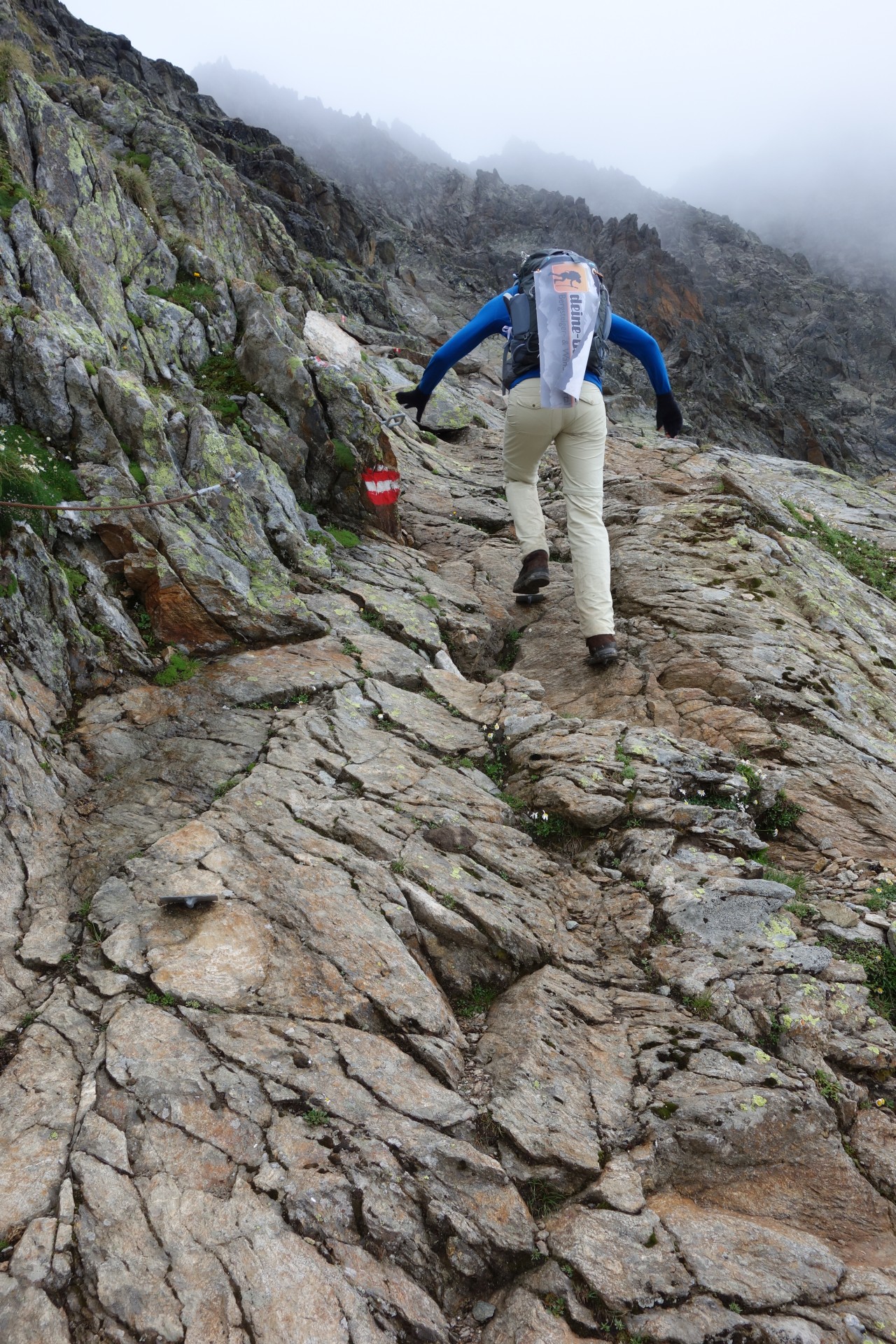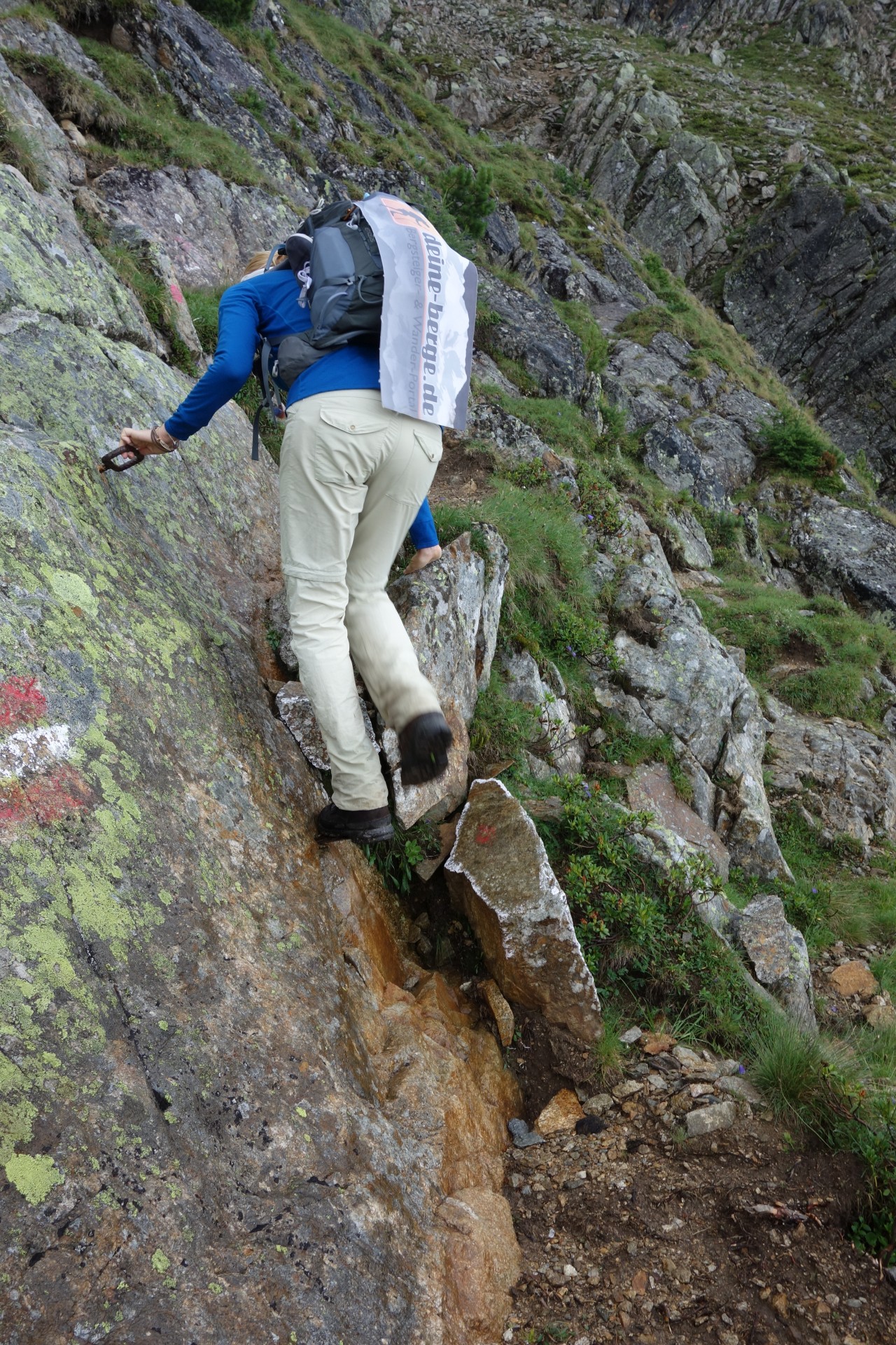 Neue Bielefelder Hütte - Achplatte - Lauser - Niederreichscharte - Hochreichscharte - Hochreichkopf - Schweinfurter Hütte: Die Felsen sind ein wenig feucht und wir müssen aufpassen