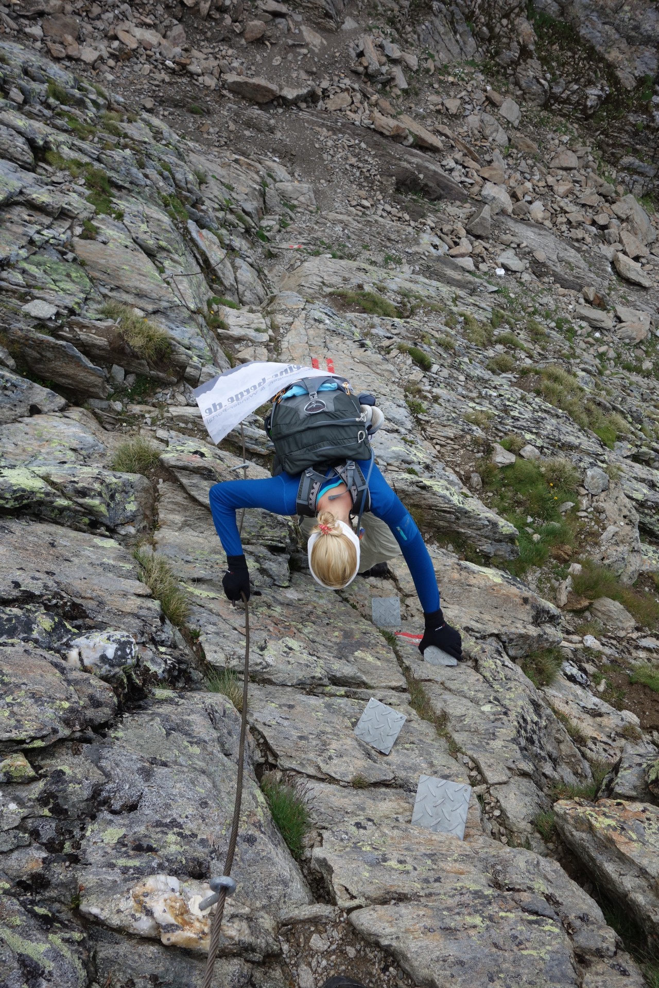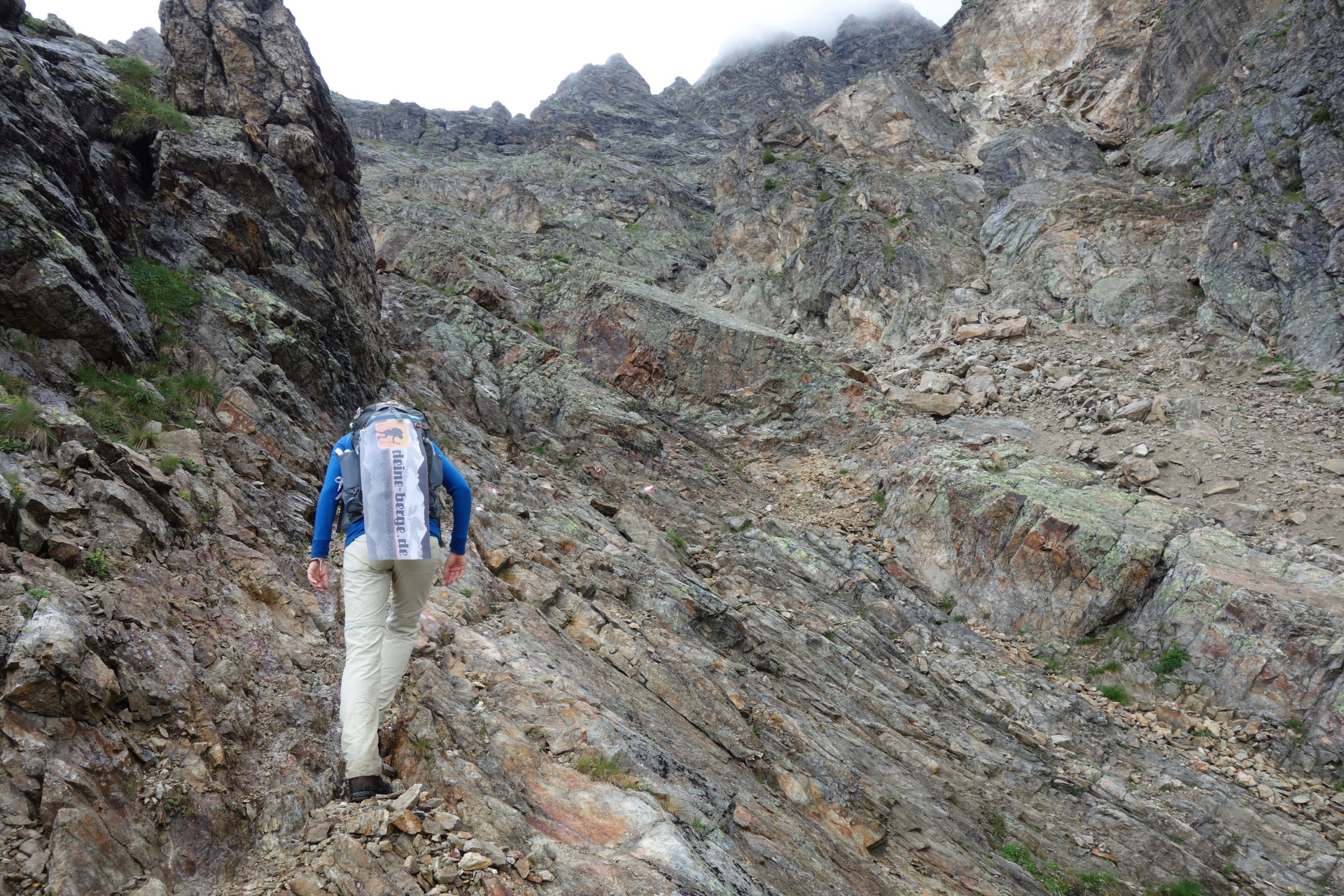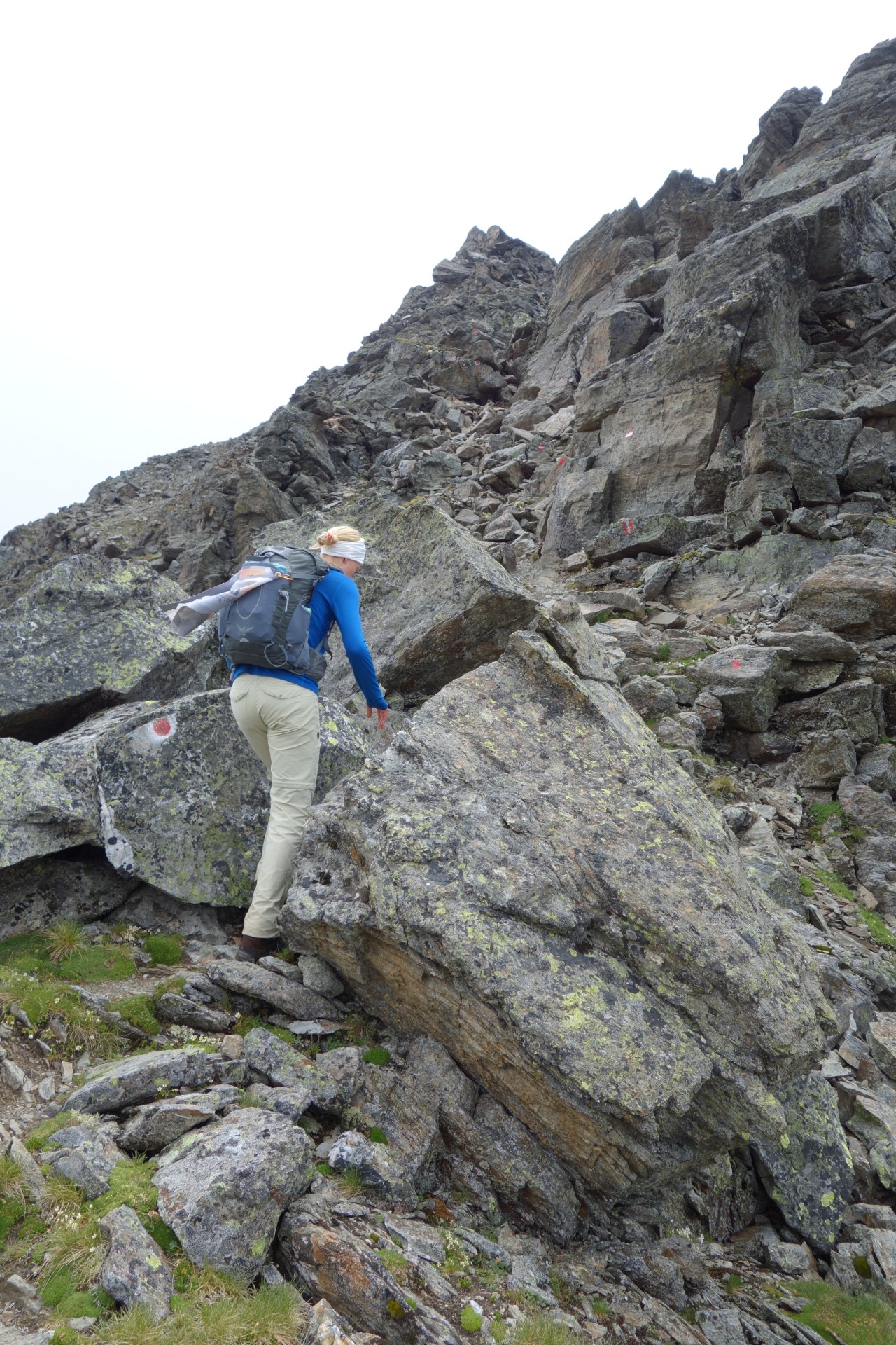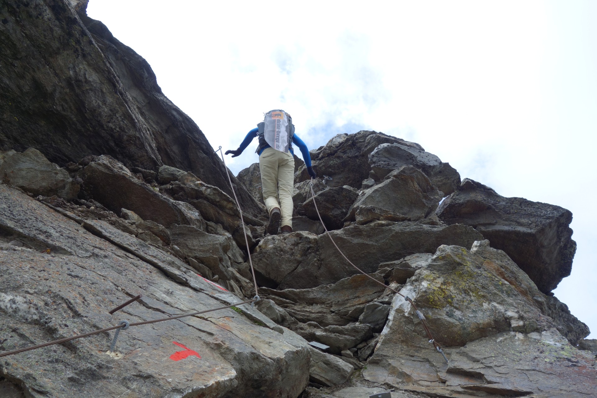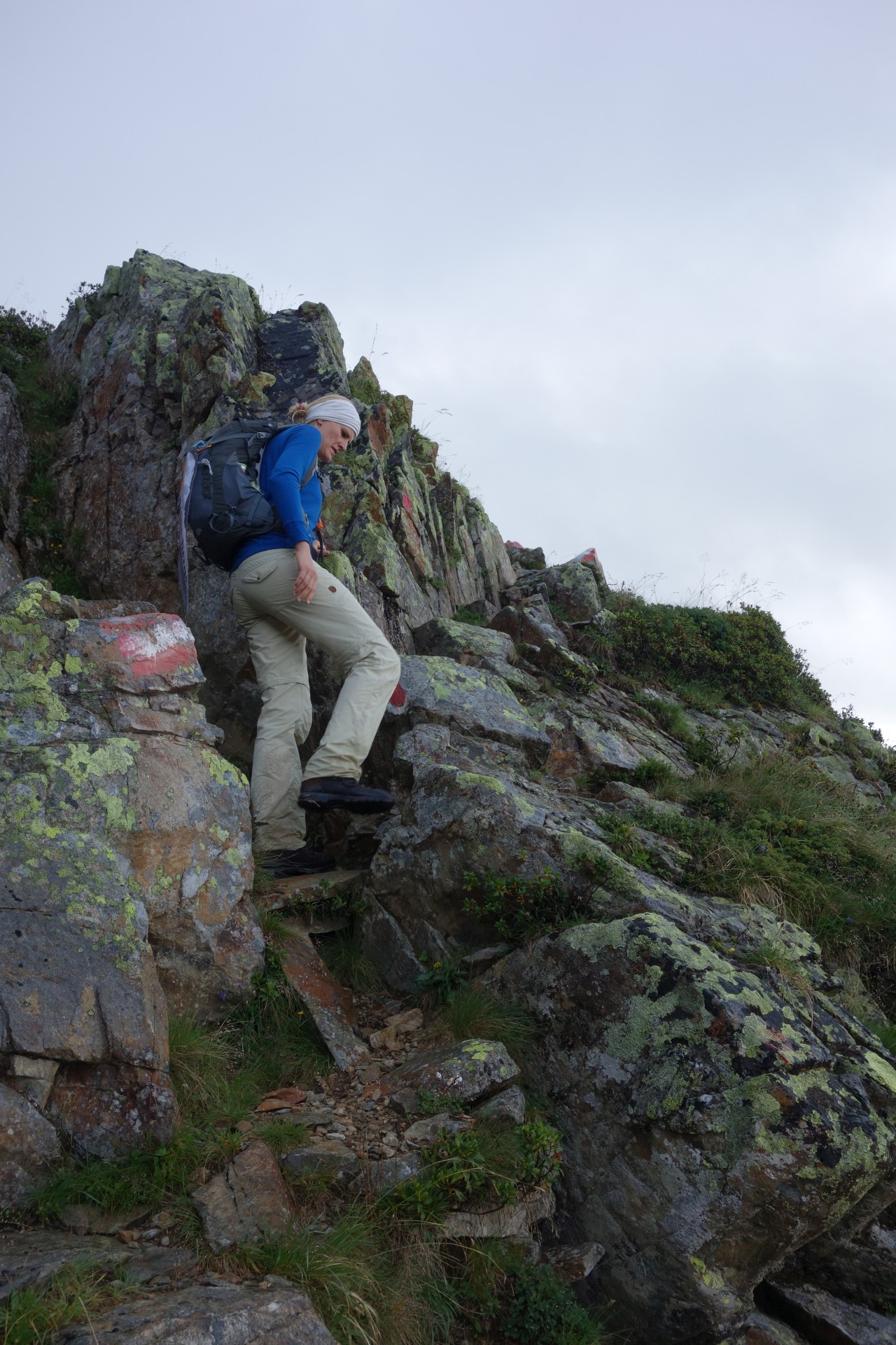 Neue Bielefelder Hütte - Achplatte - Lauser - Niederreichscharte - Hochreichscharte - Hochreichkopf - Schweinfurter Hütte: Die Felsen sind ein wenig feucht und wir müssen aufpassen
