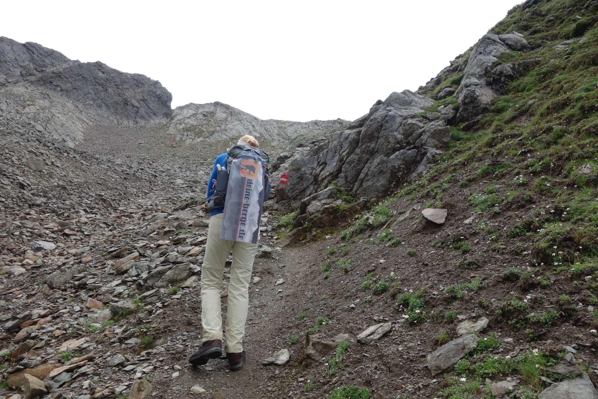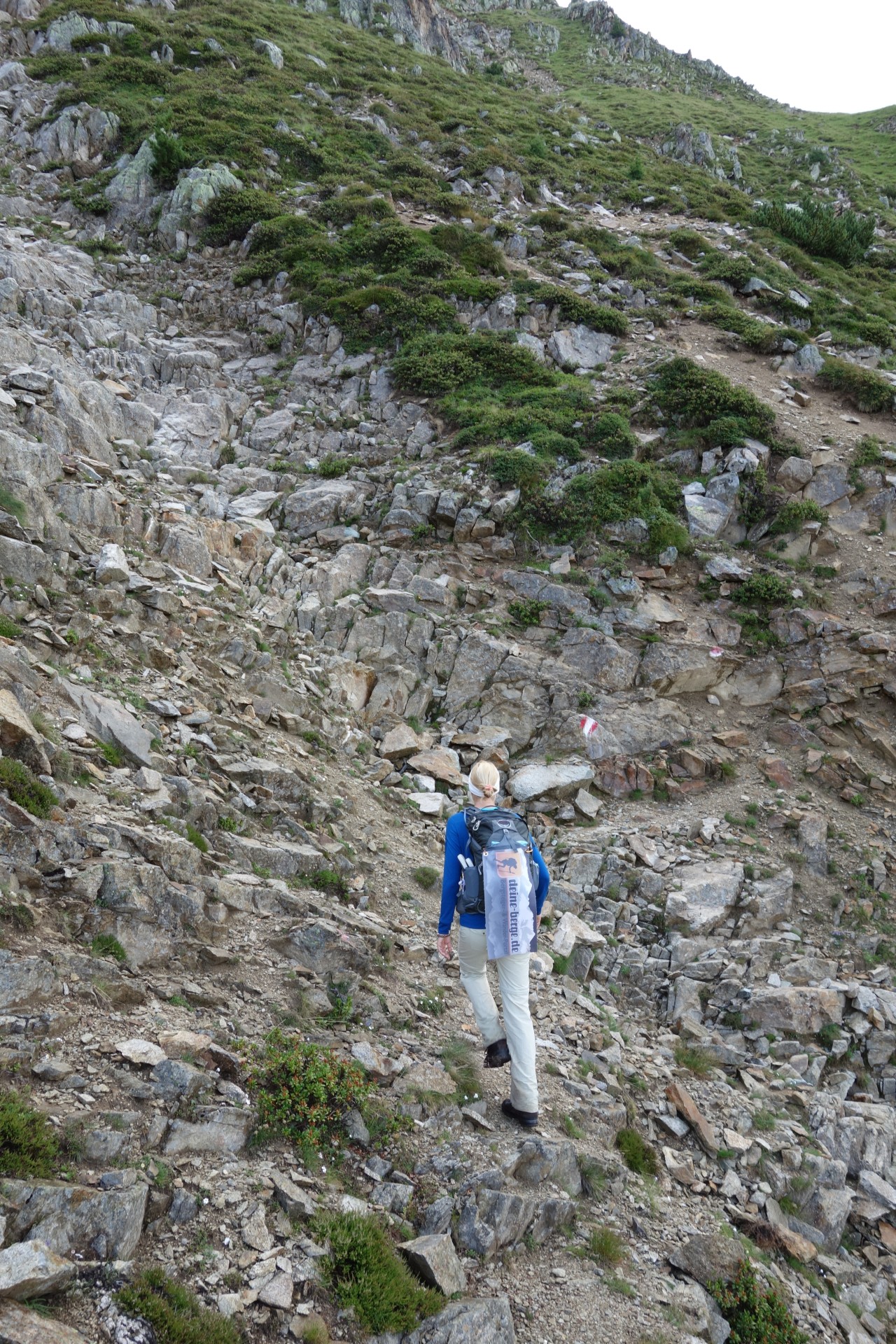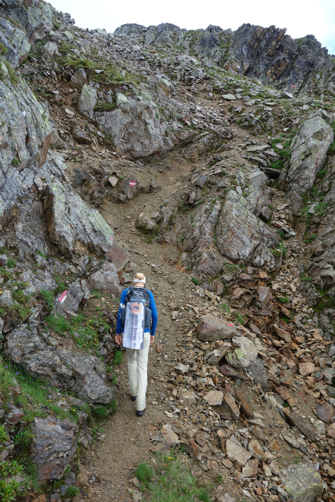 Neue Bielefelder Hütte - Achplatte - Lauser - Niederreichscharte - Hochreichscharte - Hochreichkopf - Schweinfurter Hütte: Wir steigen über loses Gestein recht steil bergauf