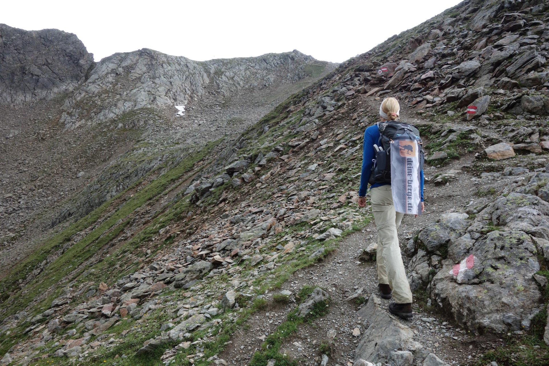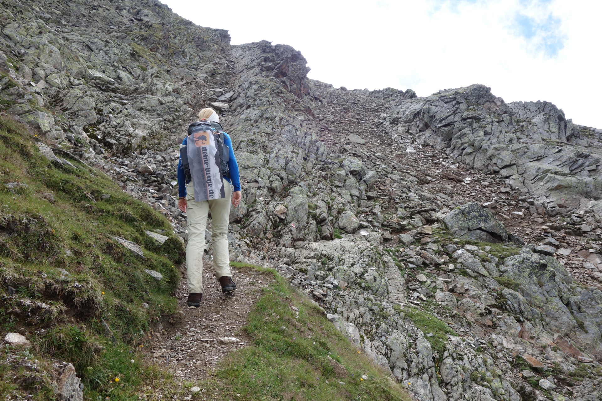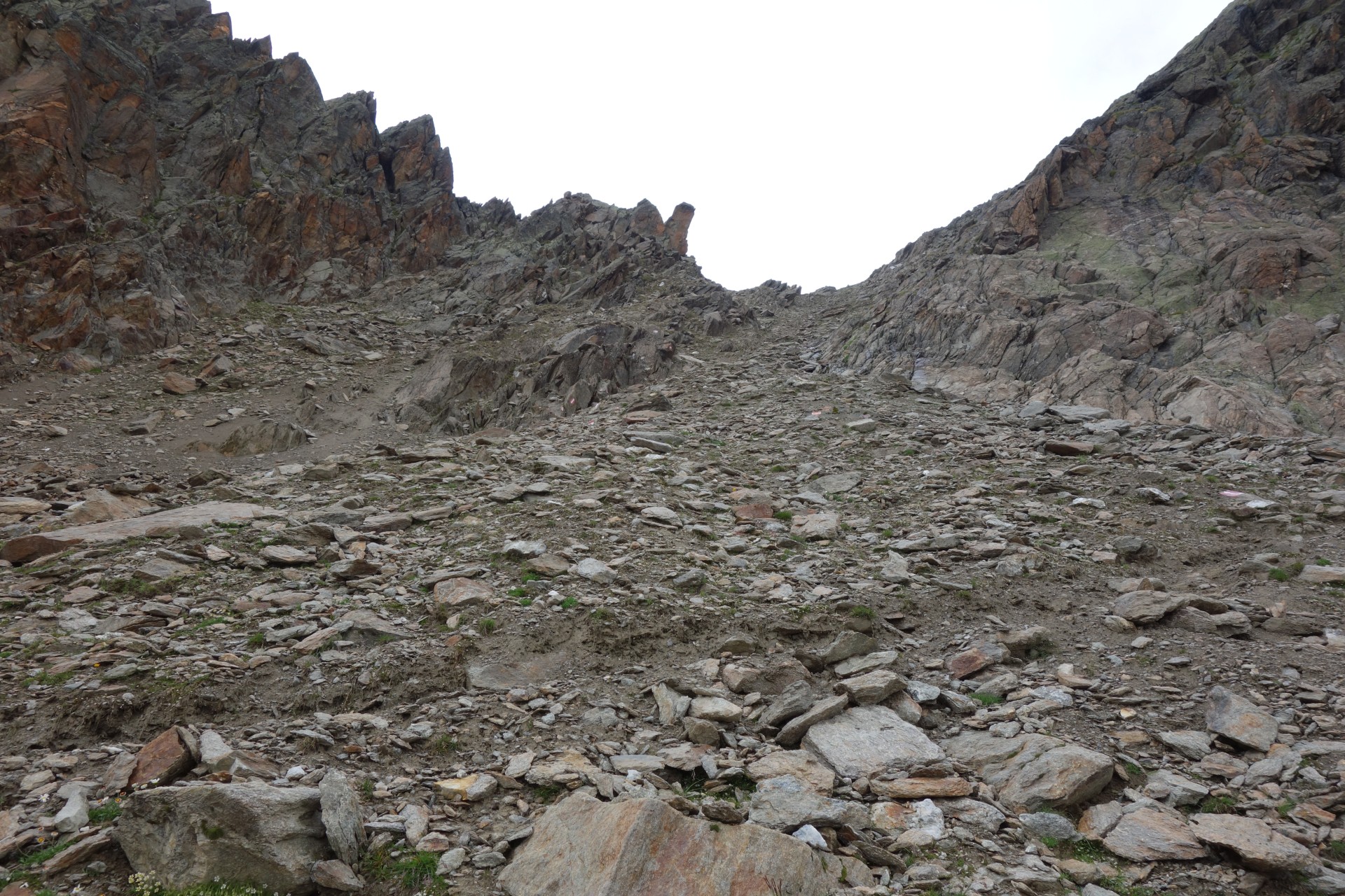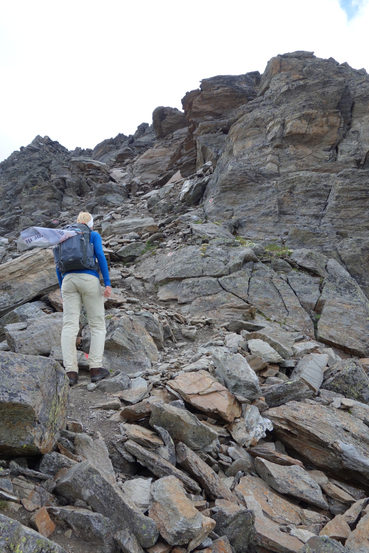 Neue Bielefelder Hütte - Achplatte - Lauser - Niederreichscharte - Hochreichscharte - Hochreichkopf - Schweinfurter Hütte: Wir steigen über loses Gestein recht steil bergauf