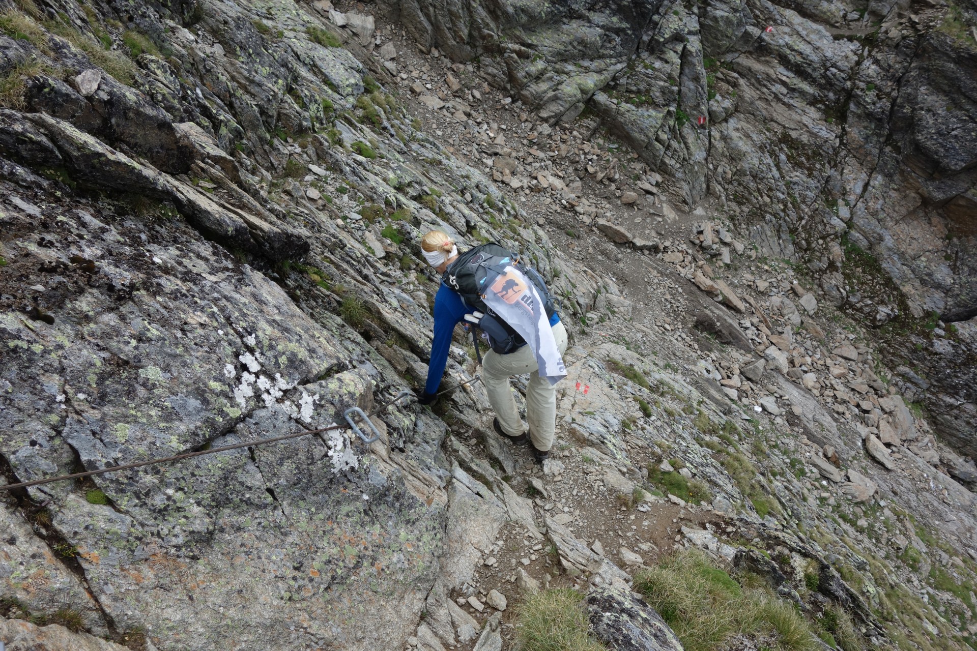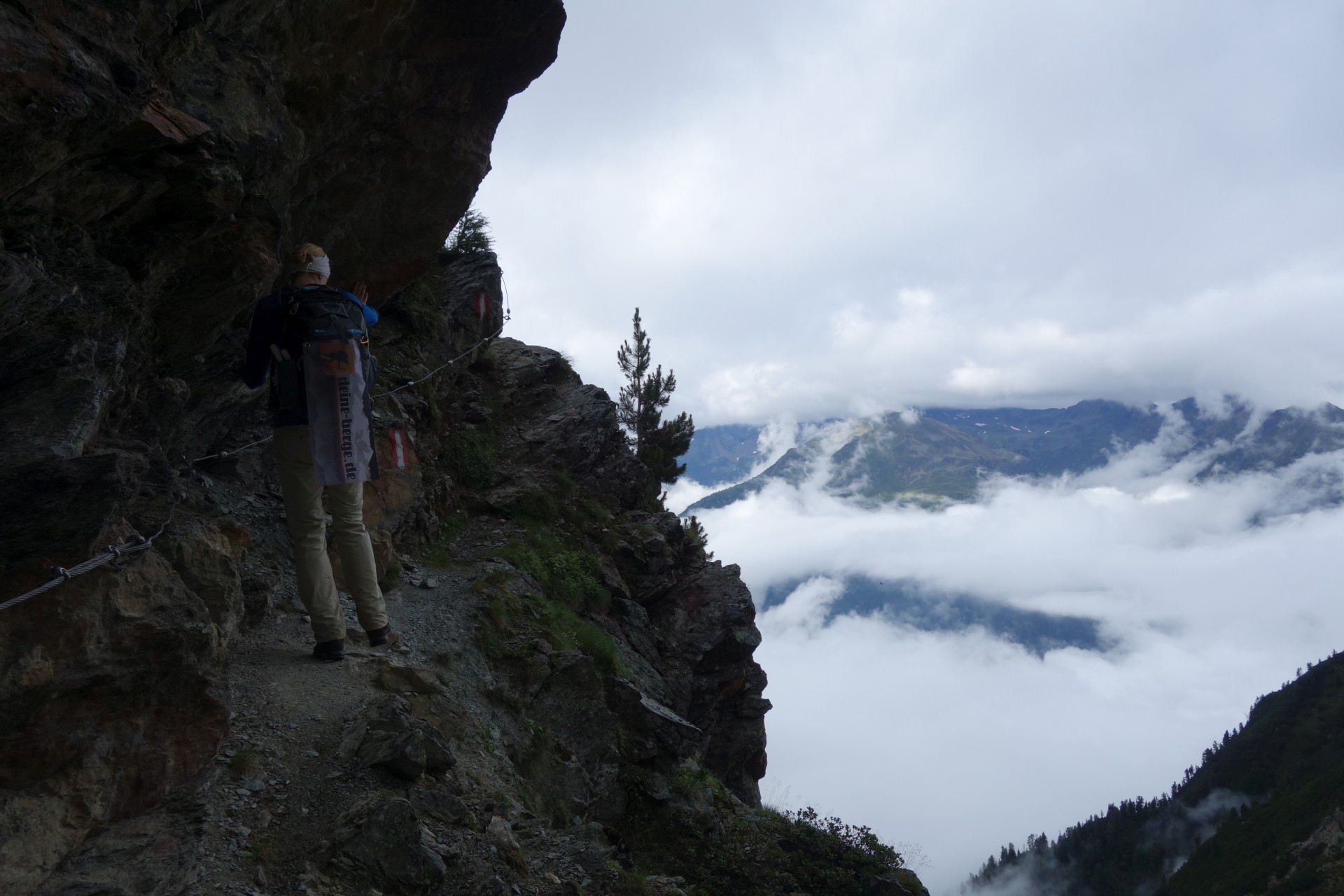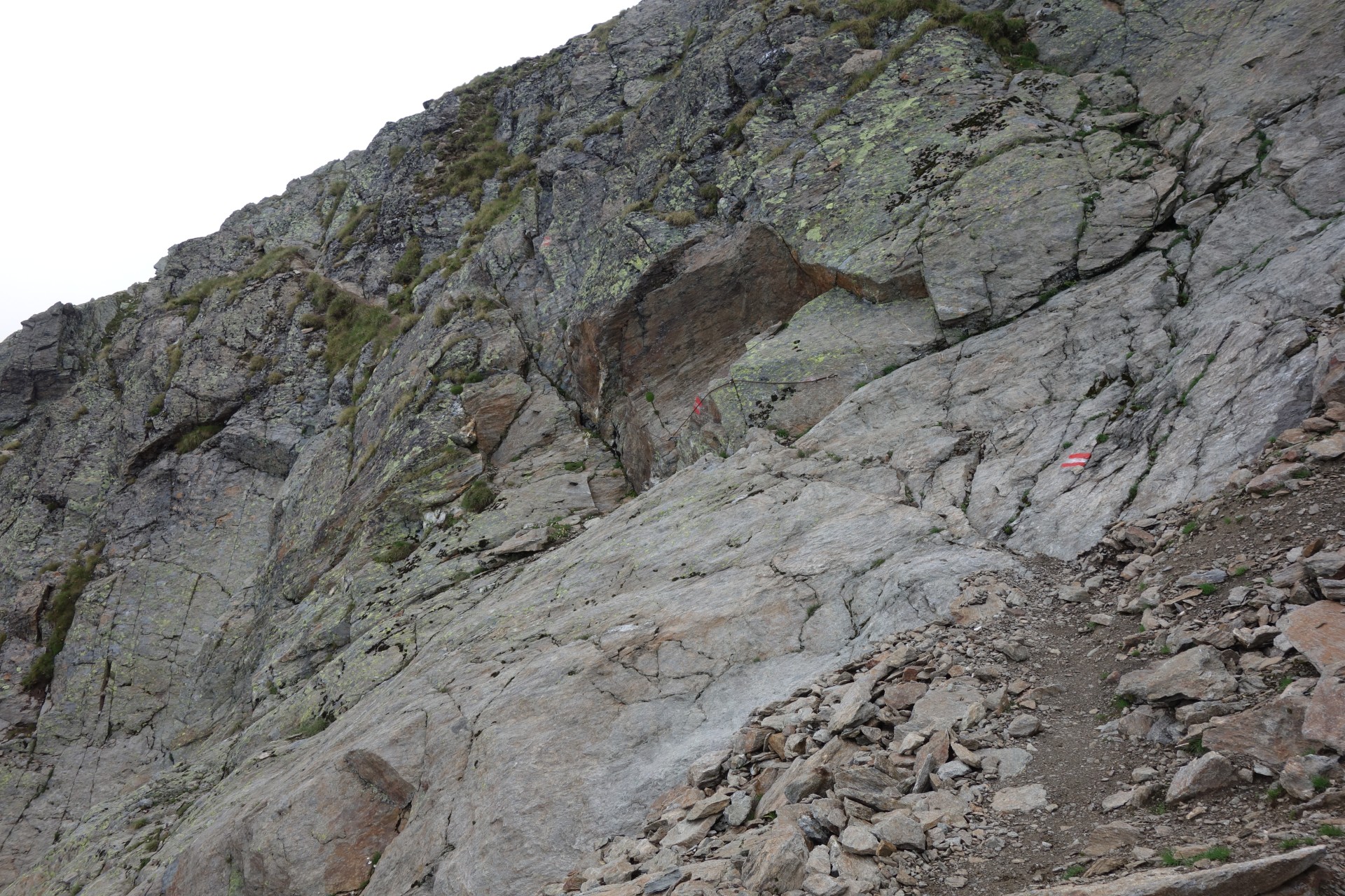 Neue Bielefelder Hütte - Achplatte - Lauser - Niederreichscharte - Hochreichscharte - Hochreichkopf - Schweinfurter Hütte: Wir orientieren uns an dem Stahlseil da der Weg sehr rutschig ist