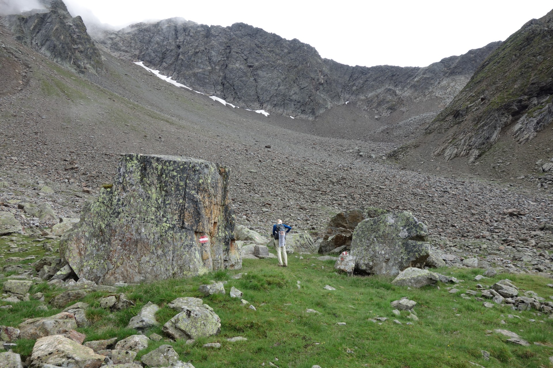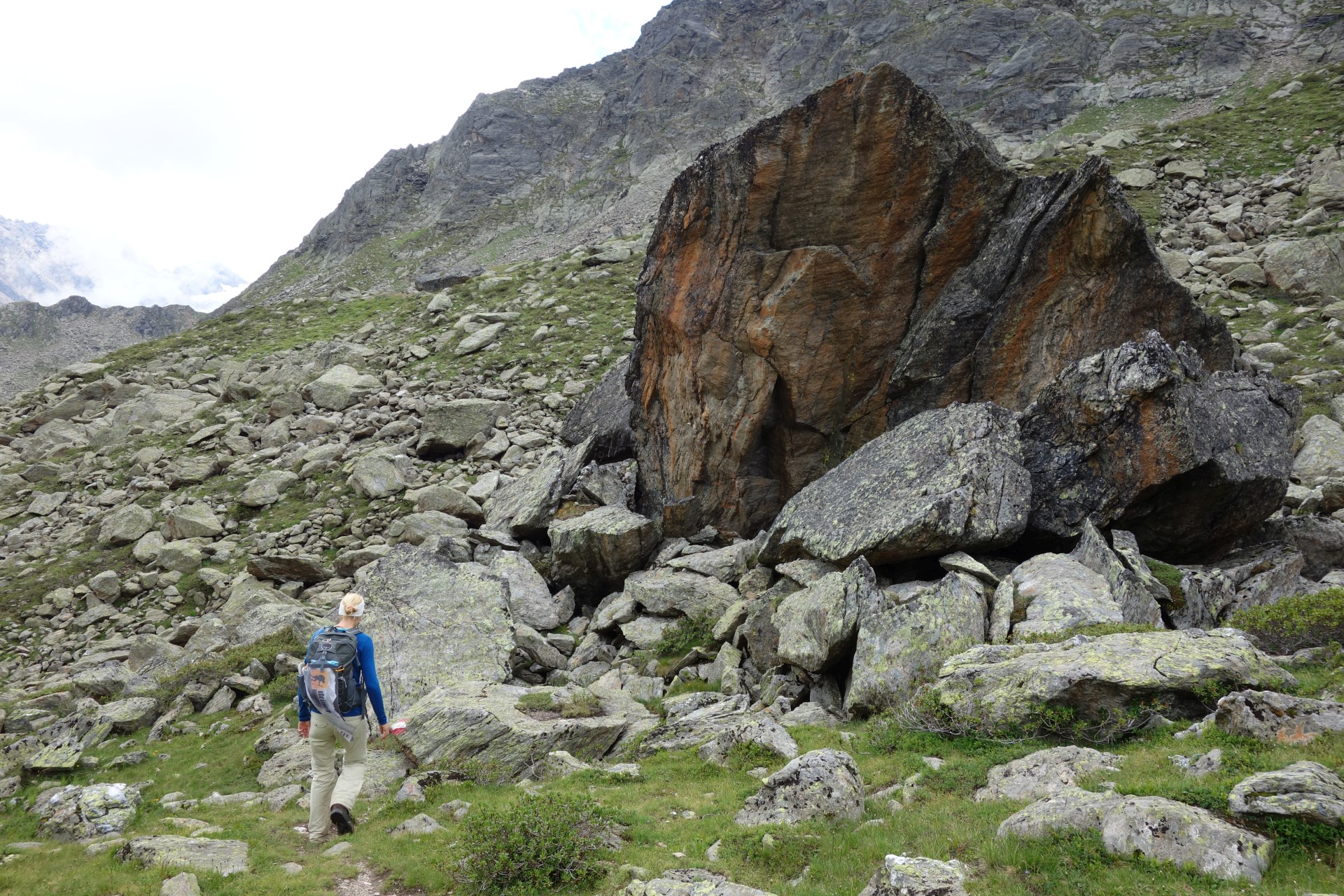 Neue Bielefelder Hütte - Achplatte - Lauser - Niederreichscharte - Hochreichscharte - Hochreichkopf - Schweinfurter Hütte: Wir kommen an diesem riesigen Findling vorbei der mal aus dem Berg gebrochen ist