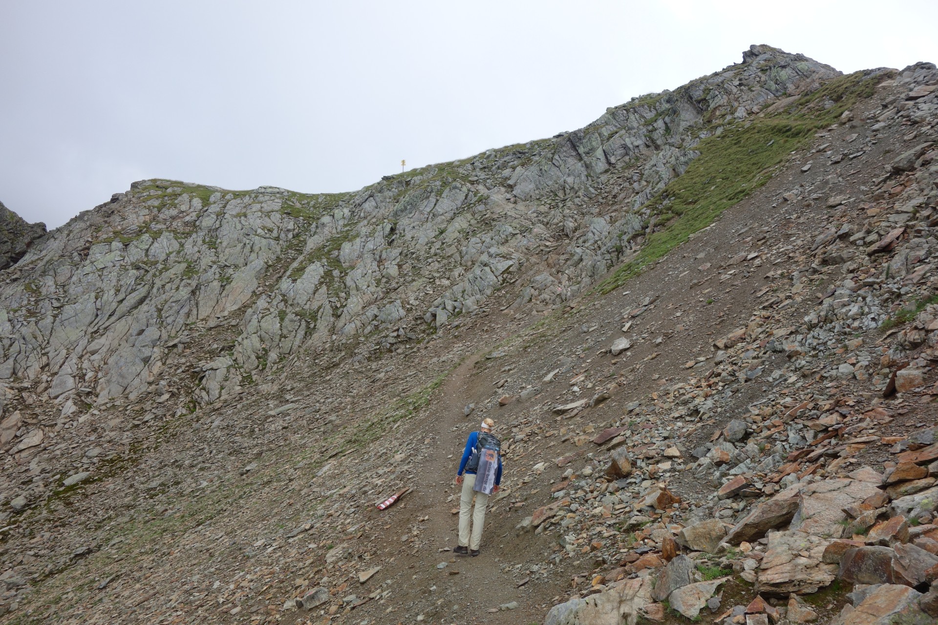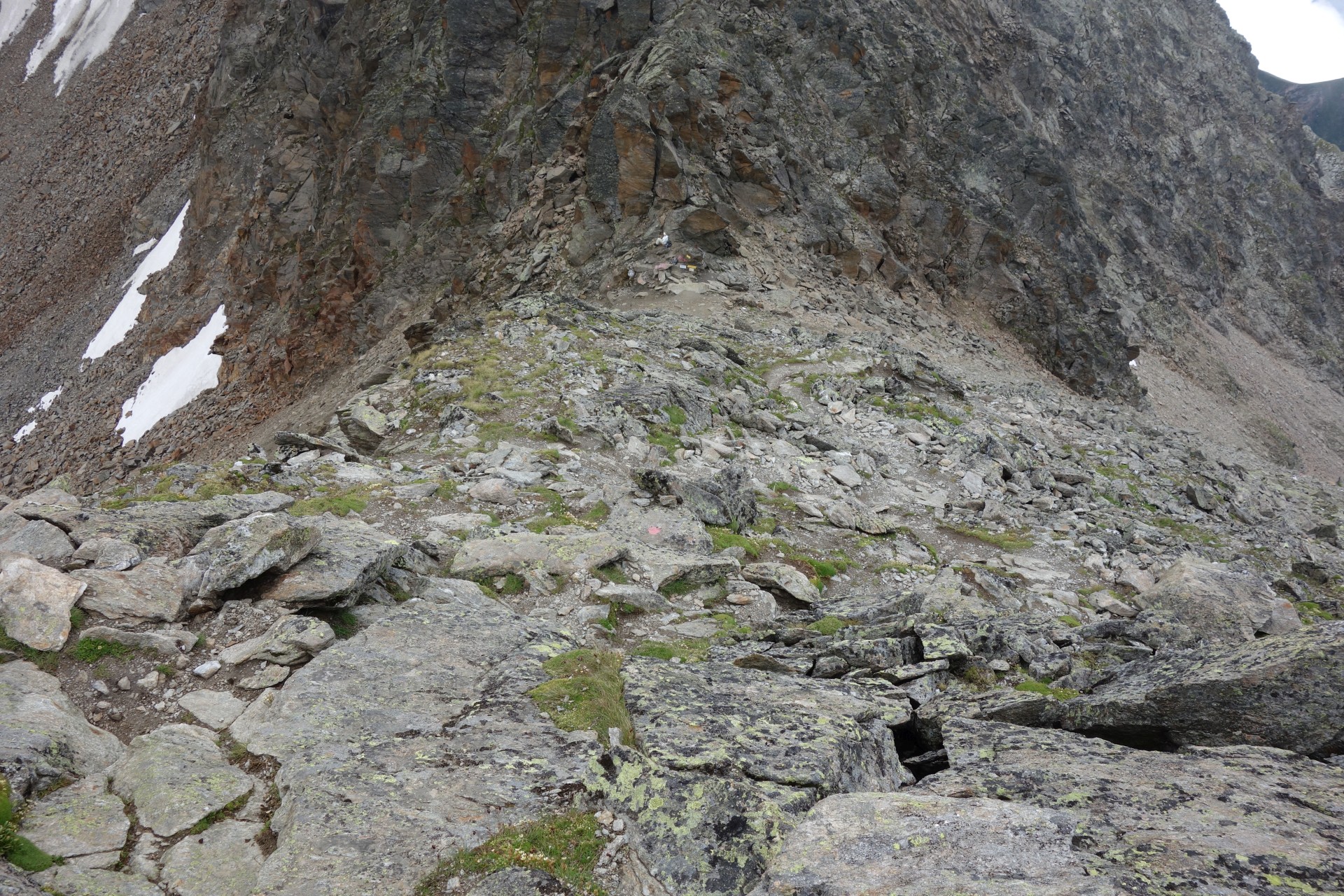 Neue Bielefelder Hütte - Achplatte - Lauser - Niederreichscharte - Hochreichscharte - Hochreichkopf - Schweinfurter Hütte: Der weitere Wegverlauf ist leicht absteigend durch den Hang