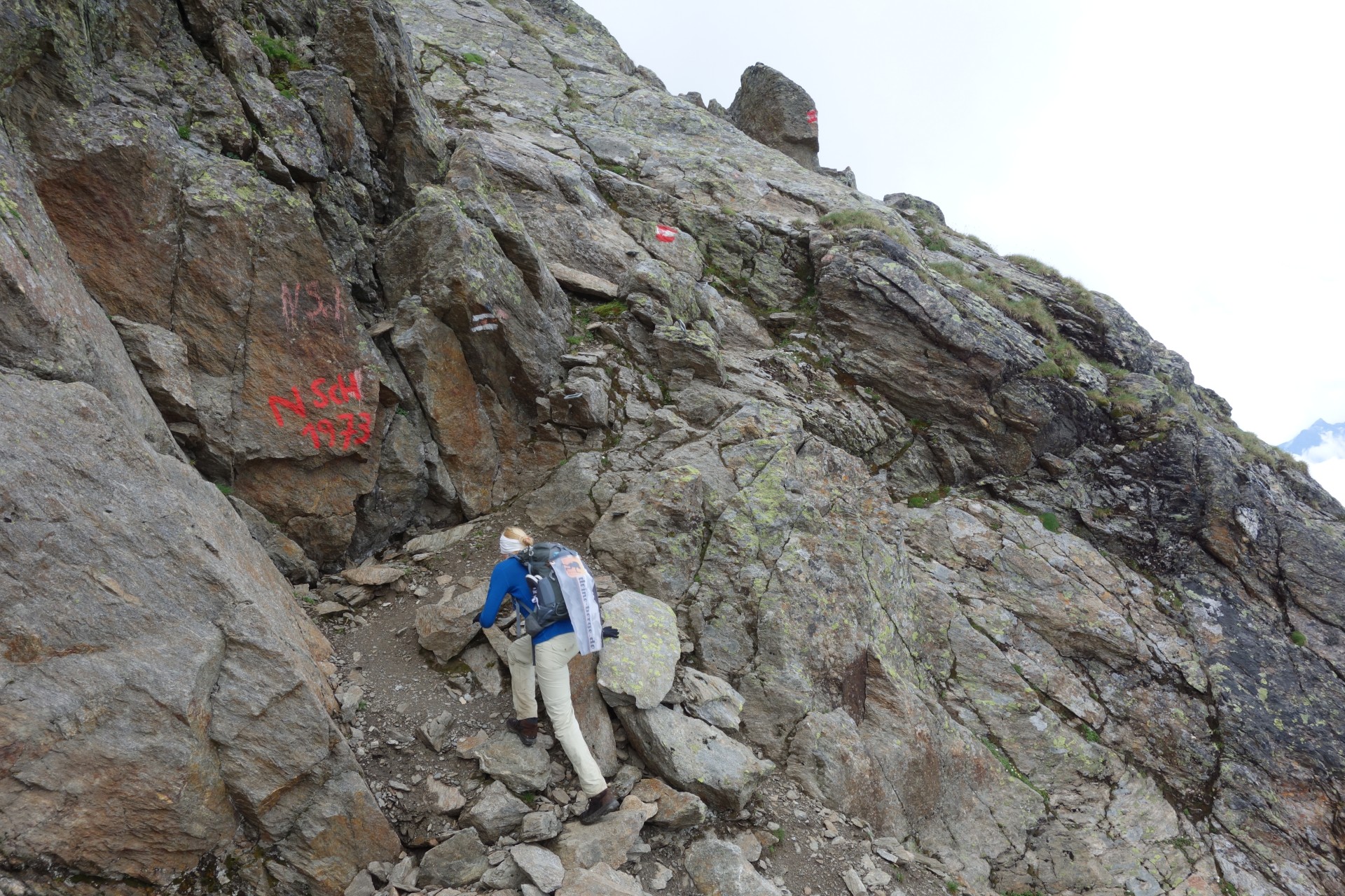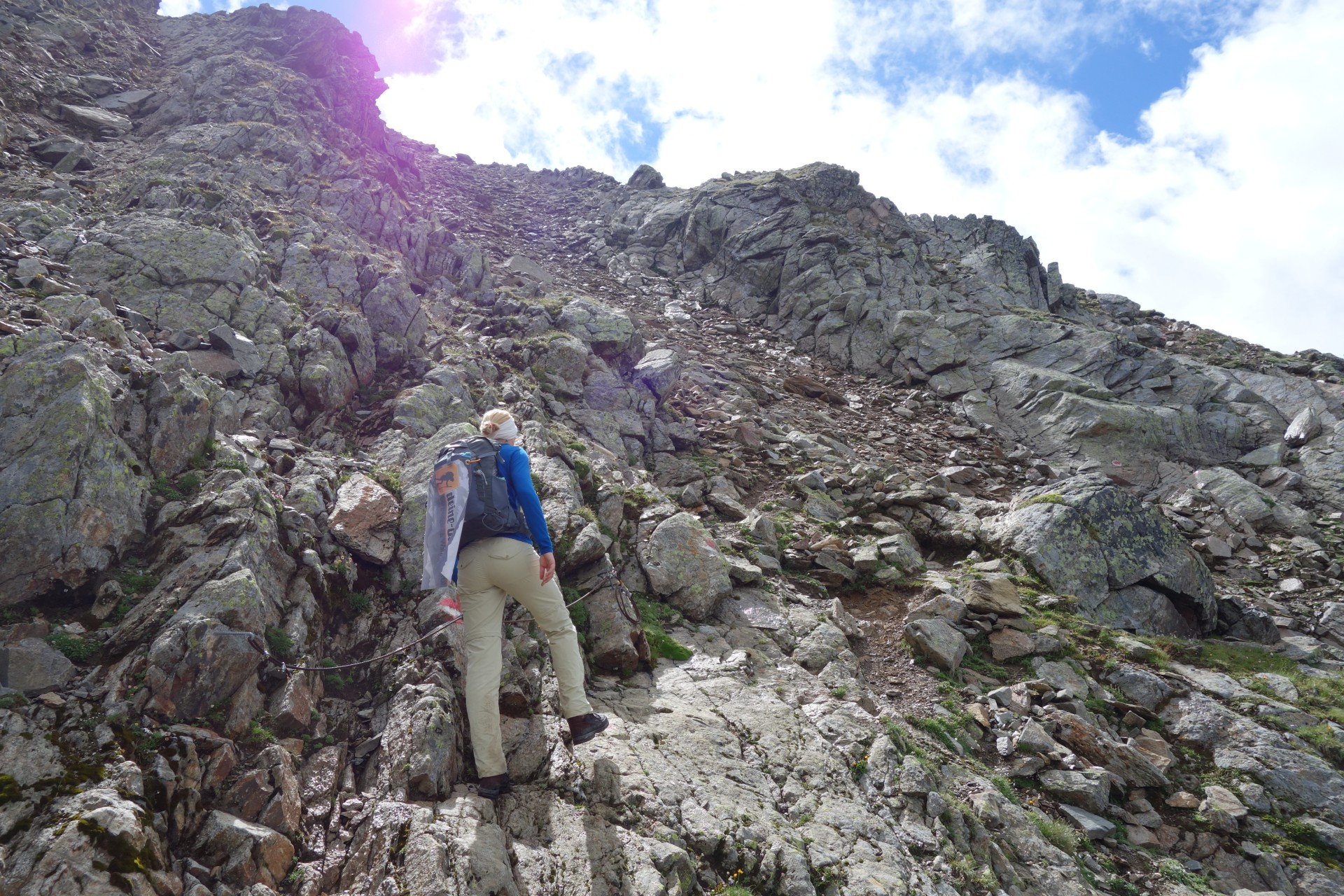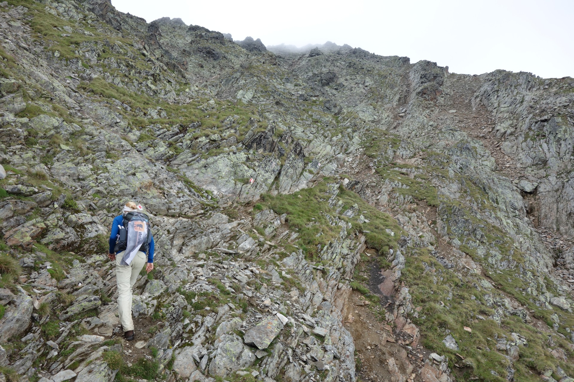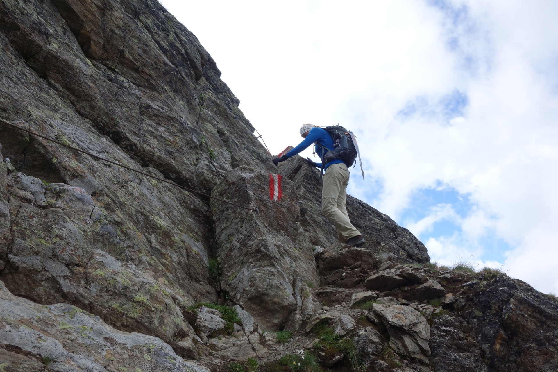 Neue Bielefelder Hütte - Achplatte - Lauser - Niederreichscharte - Hochreichscharte - Hochreichkopf - Schweinfurter Hütte: Eine steile Klippe will umschifft werden