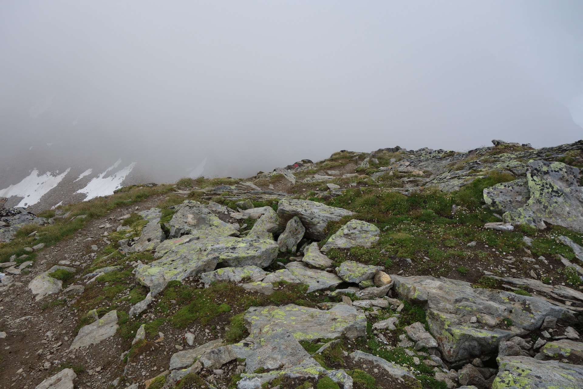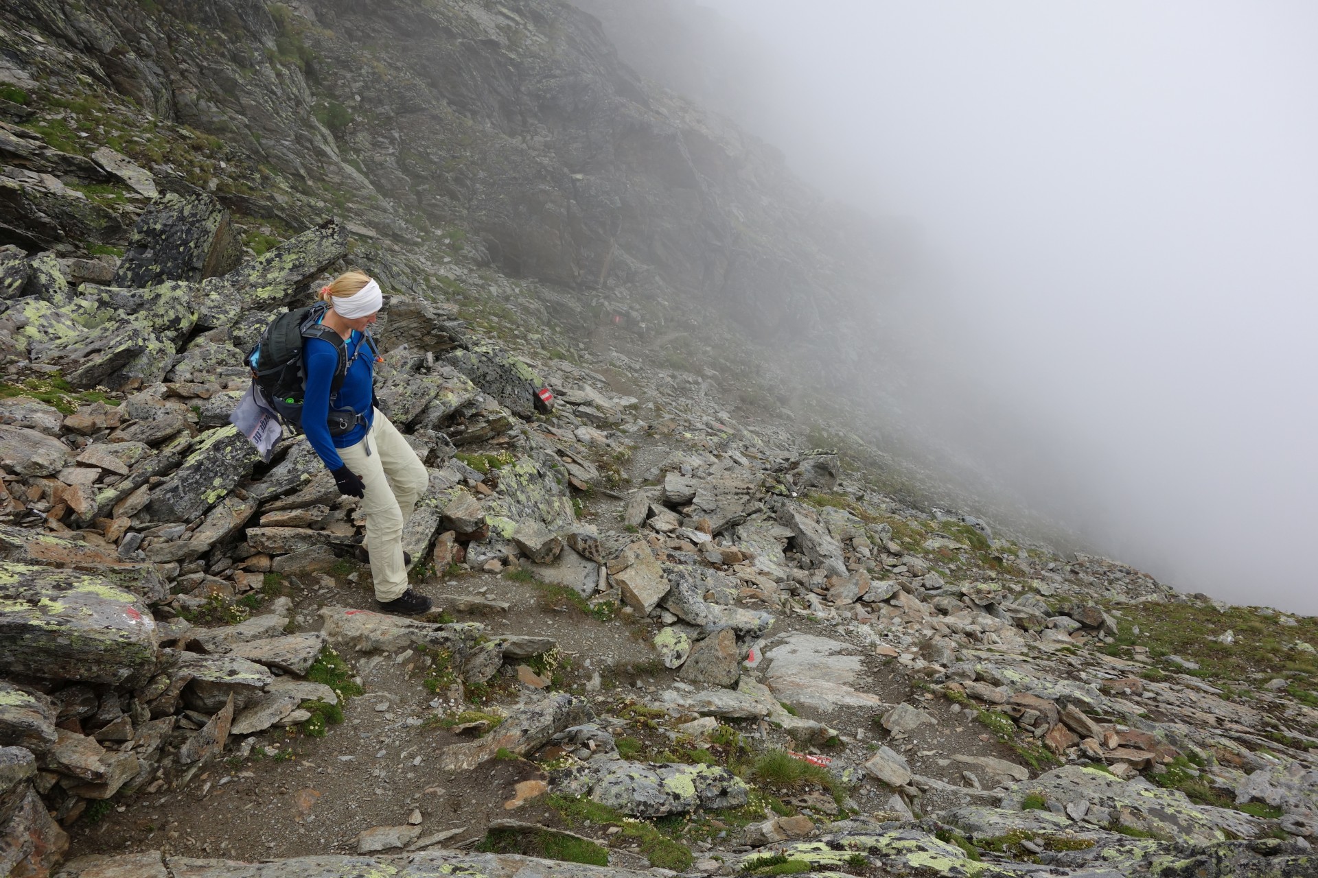 Neue Bielefelder Hütte - Achplatte - Lauser - Niederreichscharte - Hochreichscharte - Hochreichkopf - Schweinfurter Hütte: Der dichte Nebel durchnässt langsam unsere Kleidung