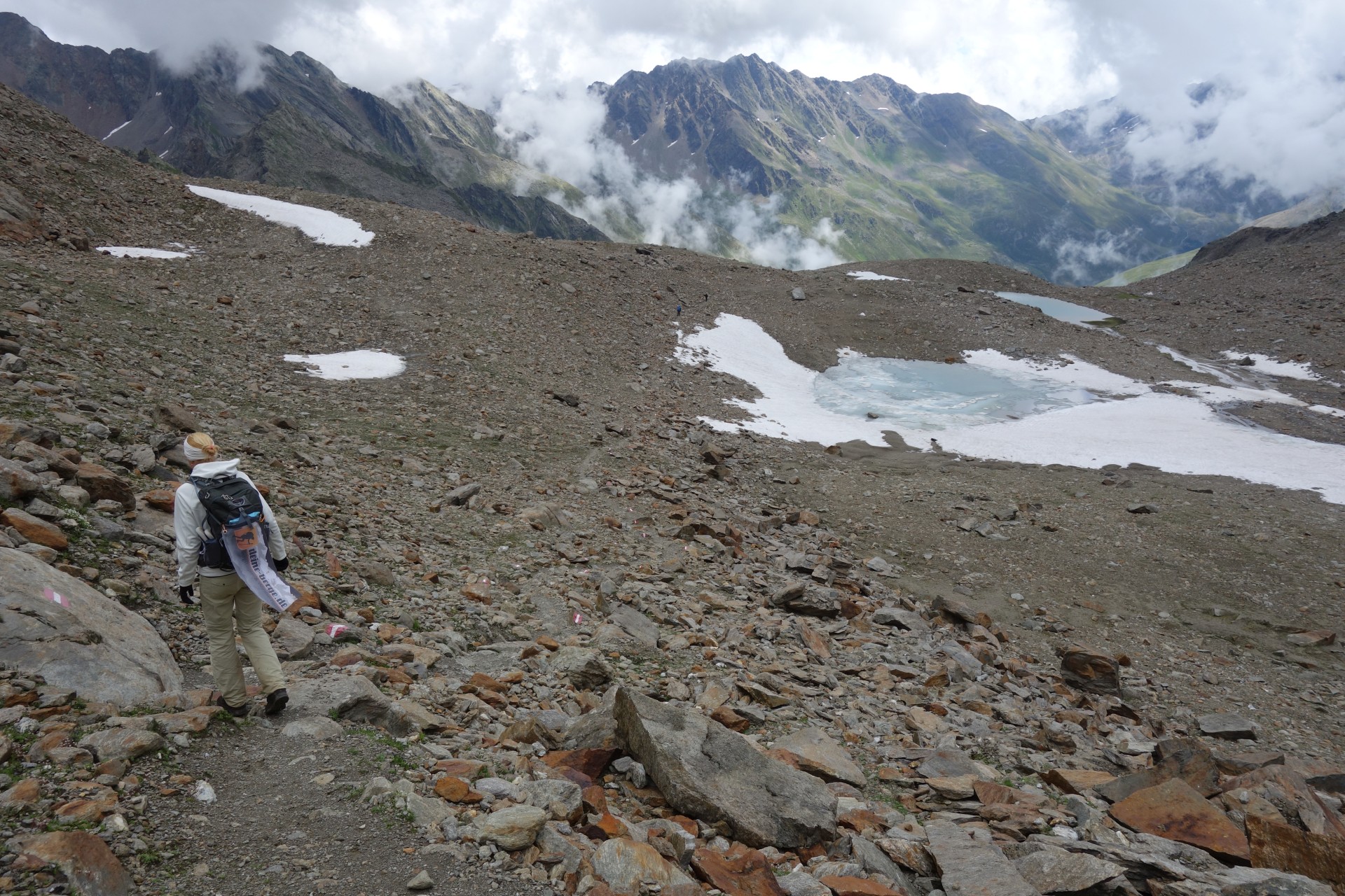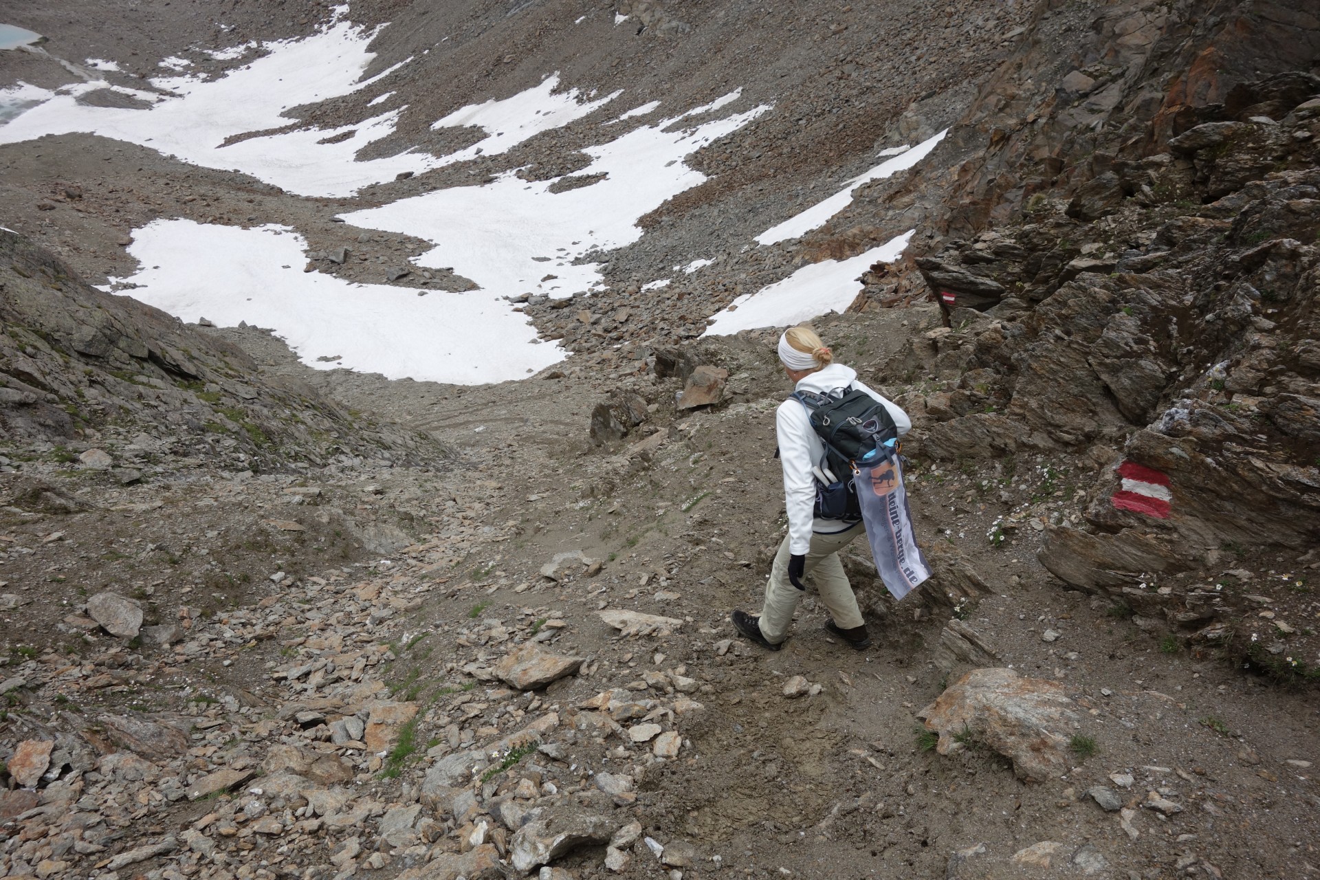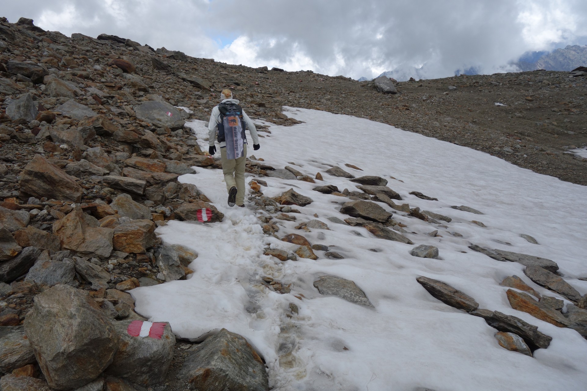 Neue Bielefelder Hütte - Achplatte - Lauser - Niederreichscharte - Hochreichscharte - Hochreichkopf - Schweinfurter Hütte: Auch eines der kleinen Schneefelder touchieren wir am Rand