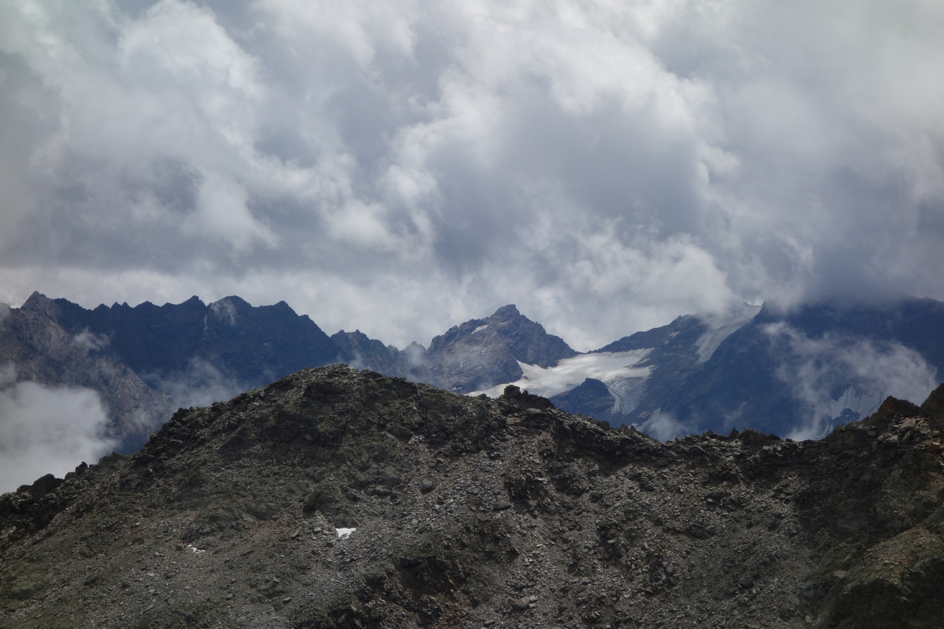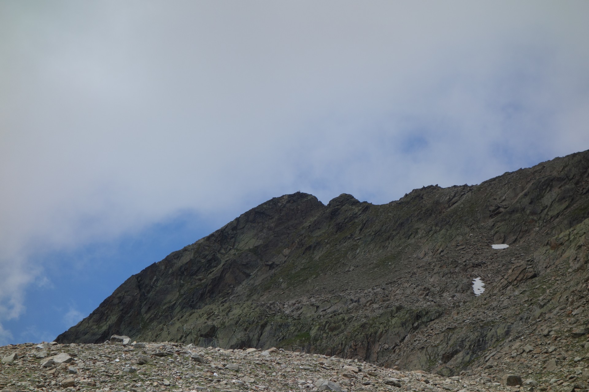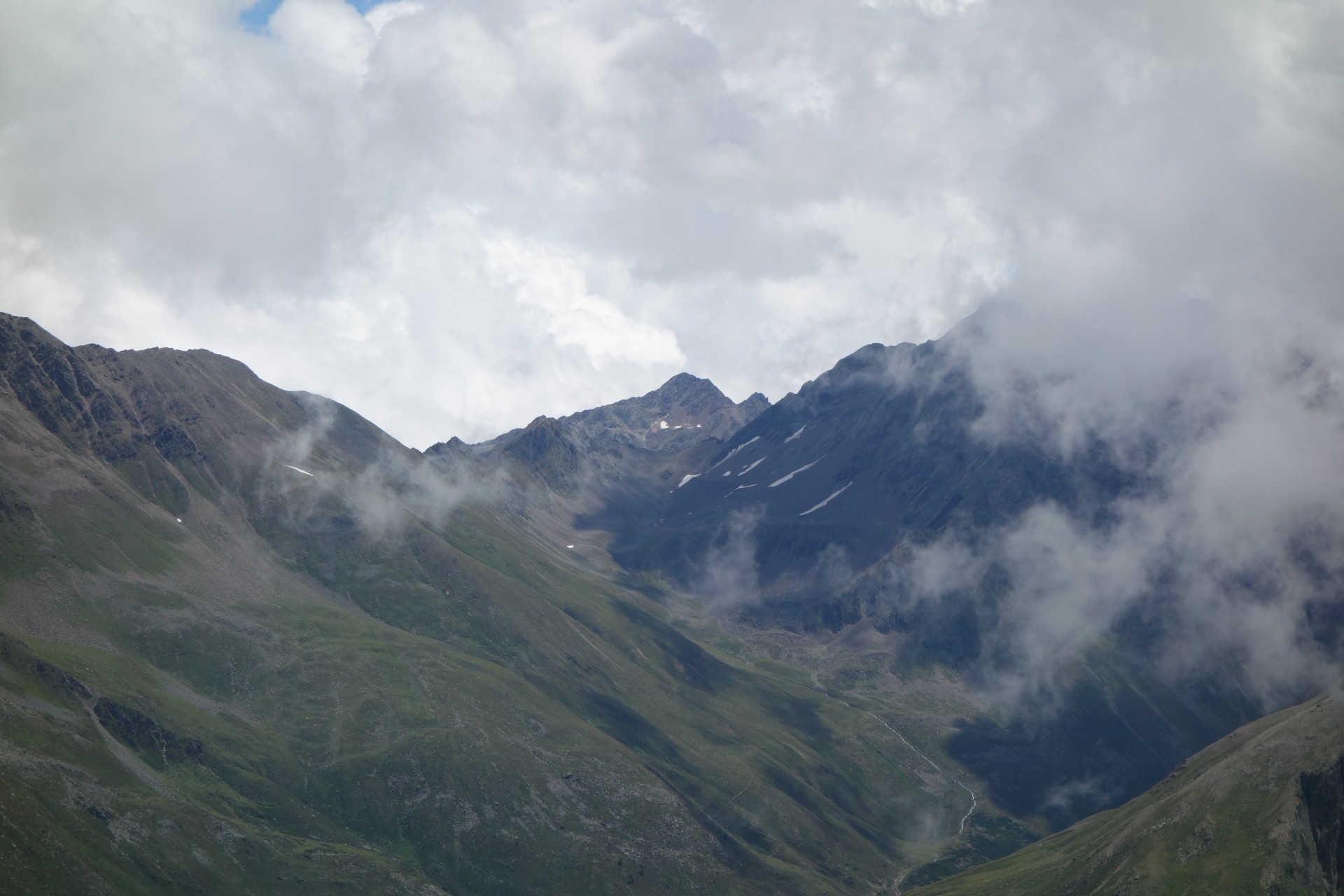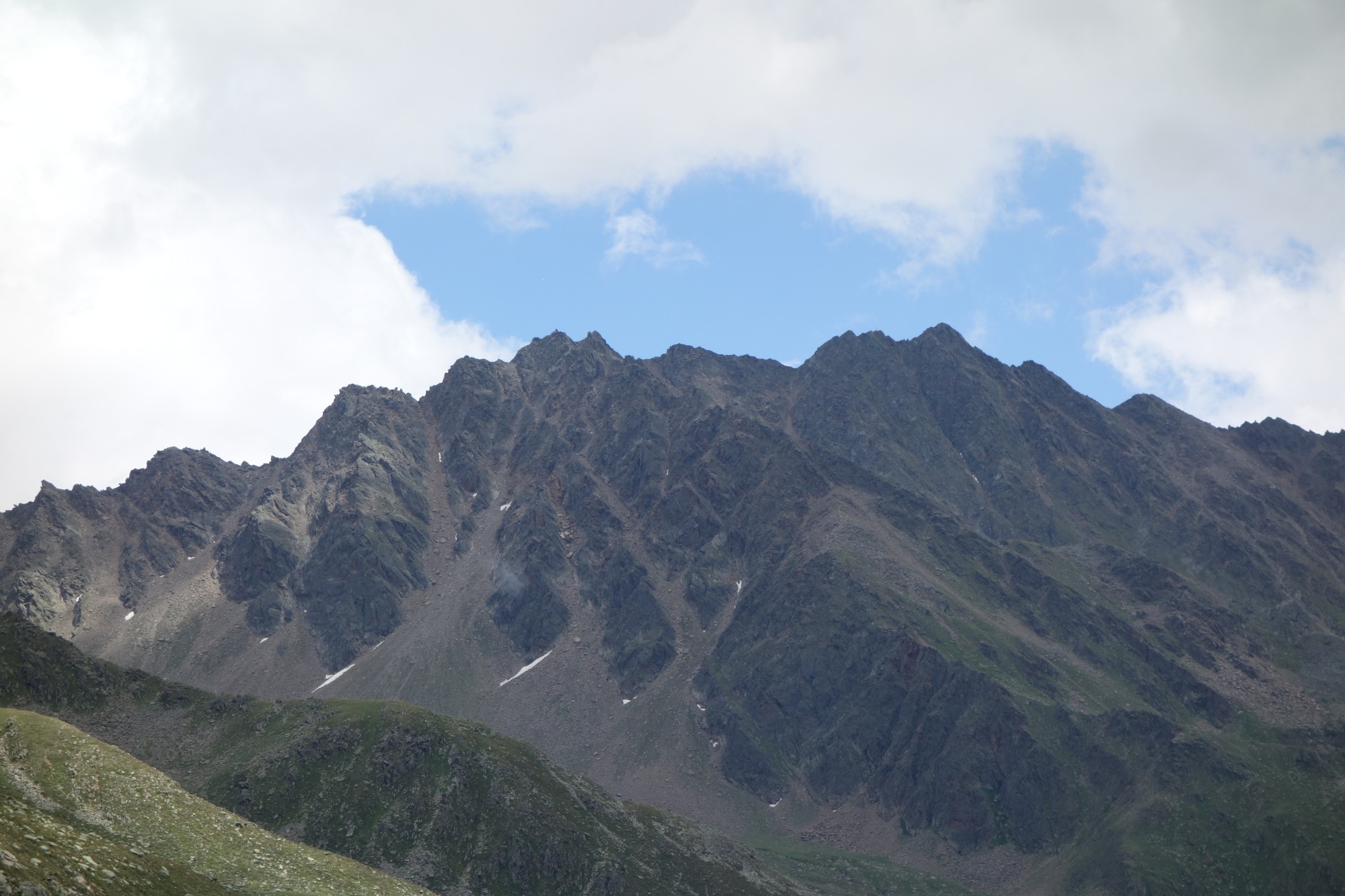 Neue Bielefelder Hütte - Achplatte - Lauser - Niederreichscharte - Hochreichscharte - Hochreichkopf - Schweinfurter Hütte: Es klart langsam wieder etwas auf und eröffnet den Blick auf die Gipfel
