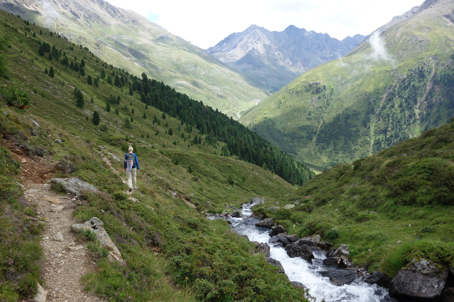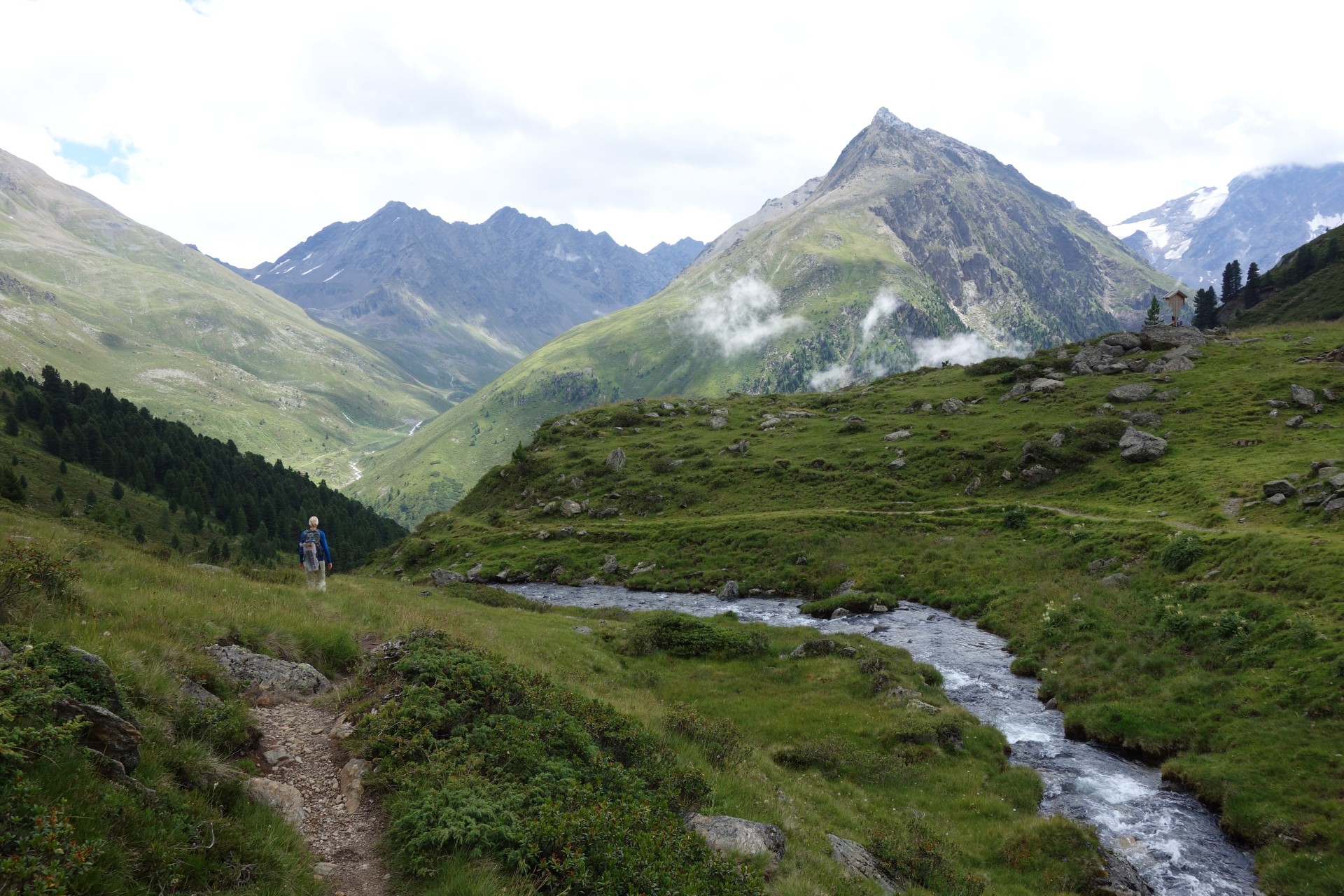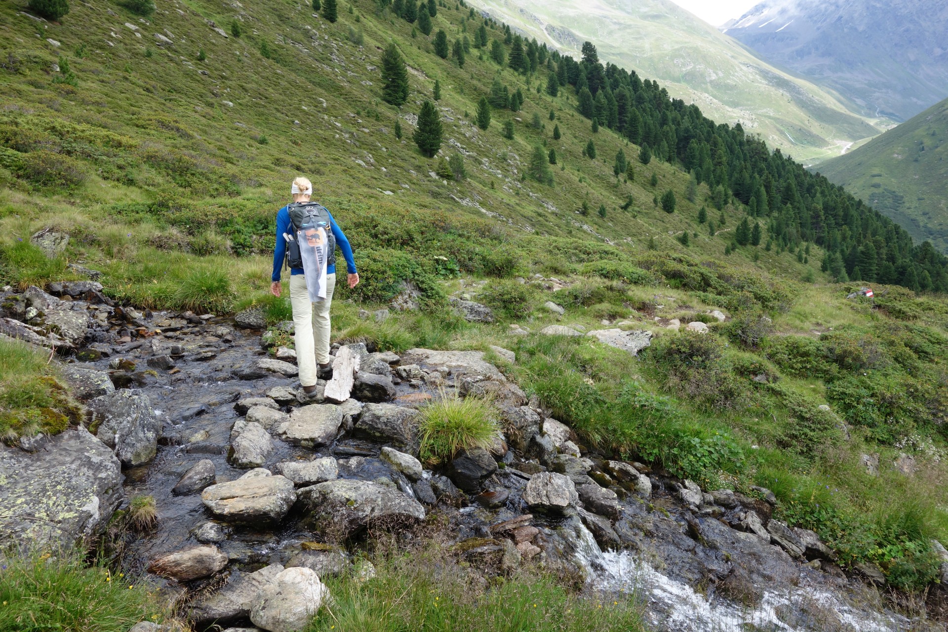 Neue Bielefelder Hütte - Achplatte - Lauser - Niederreichscharte - Hochreichscharte - Hochreichkopf - Schweinfurter Hütte: Wir steigen nun ein Stück entlang des Finstertalbachs ab