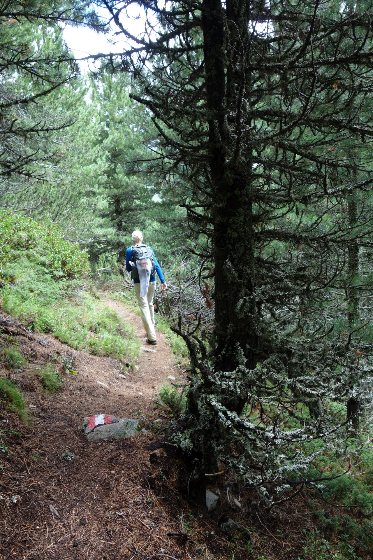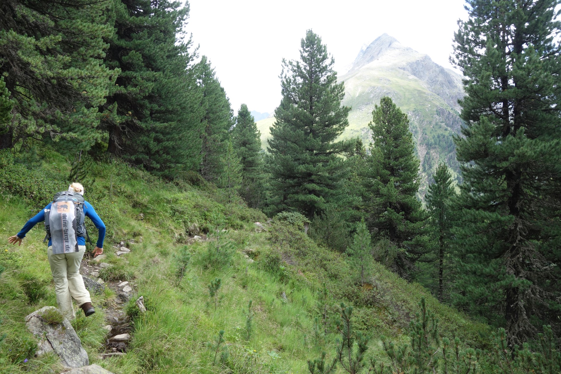 Neue Bielefelder Hütte - Achplatte - Lauser - Niederreichscharte - Hochreichscharte - Hochreichkopf - Schweinfurter Hütte: Nach sehr langer Zeit begegnen wir gleich auch wieder ein paar Bäumen
