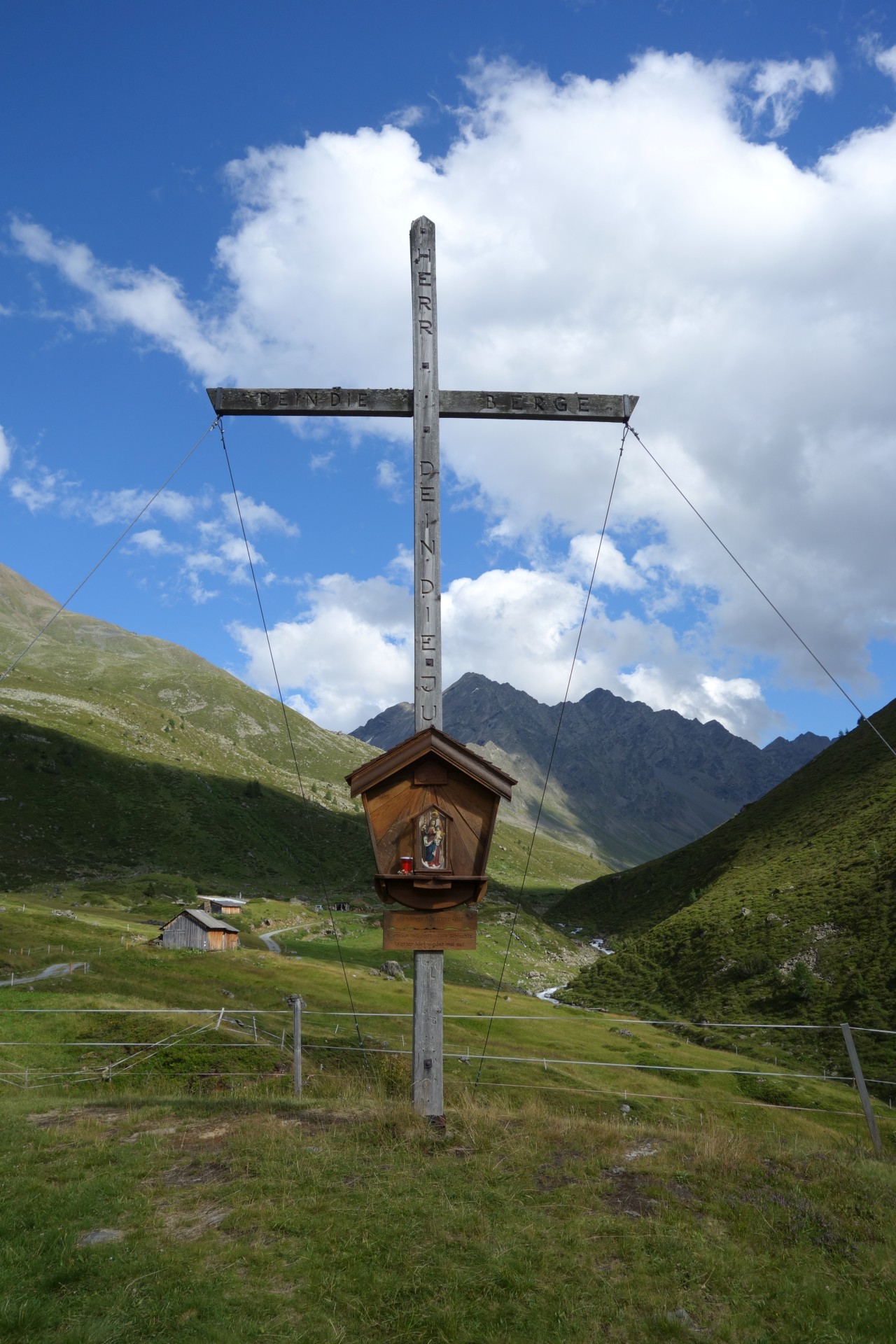 Neue Bielefelder Hütte - Achplatte - Lauser - Niederreichscharte - Hochreichscharte - Hochreichkopf - Schweinfurter Hütte: Kurz vor der Achplatte steht ein Gedenkkreuz