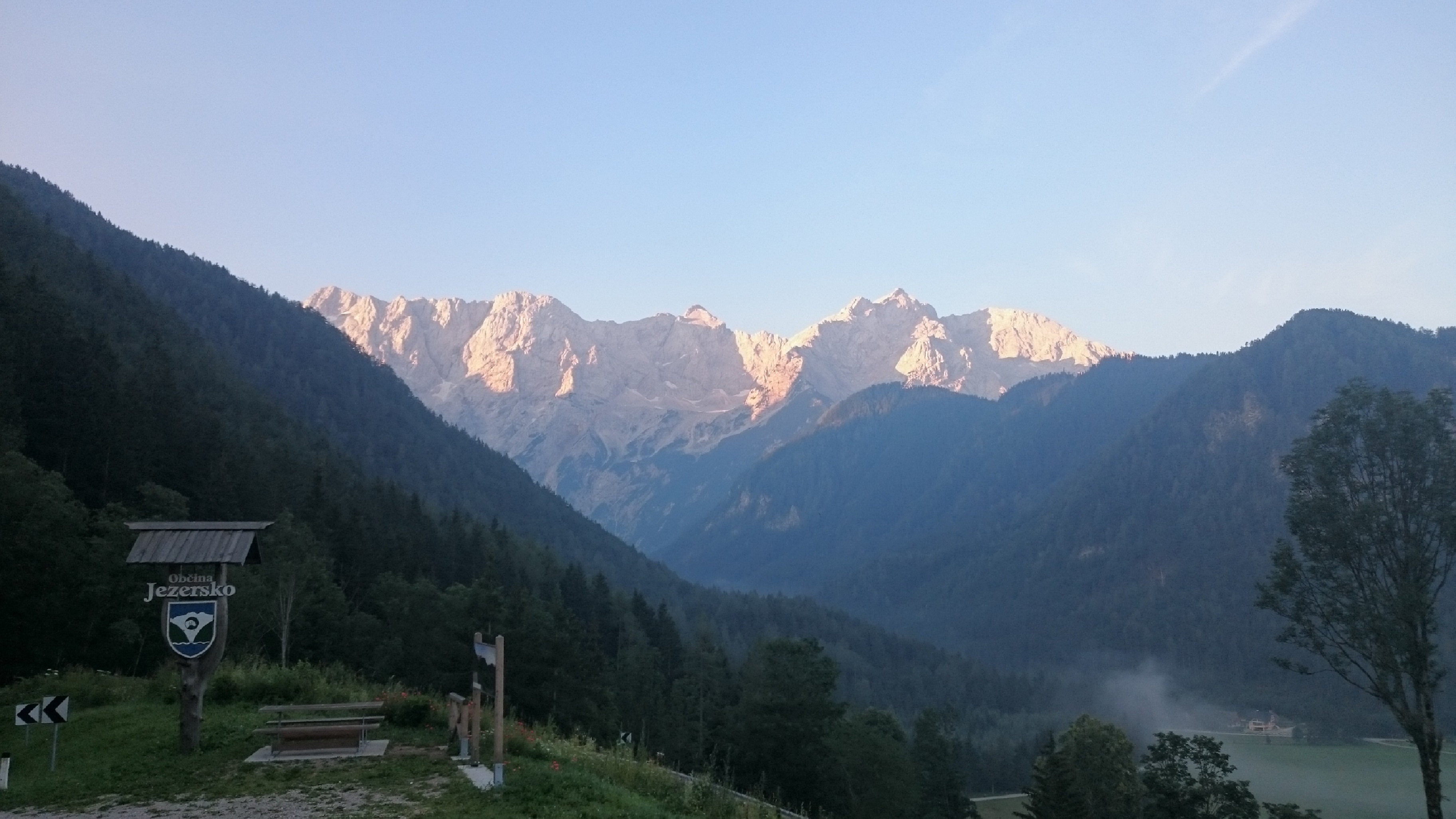 Bei der Tschechenhütte (1542m) nach rund einer Stunde angekommen, hat man eine wunderbare Aussicht zurück nach Österreich (Kärntner Storschitz, Hochobir), auf die östlichen Steiner (z.B. Veliki Baba, Ledinski Vrh) als auch zum Seeländer Sattel, den südlichsten Punkt Österreichs.
