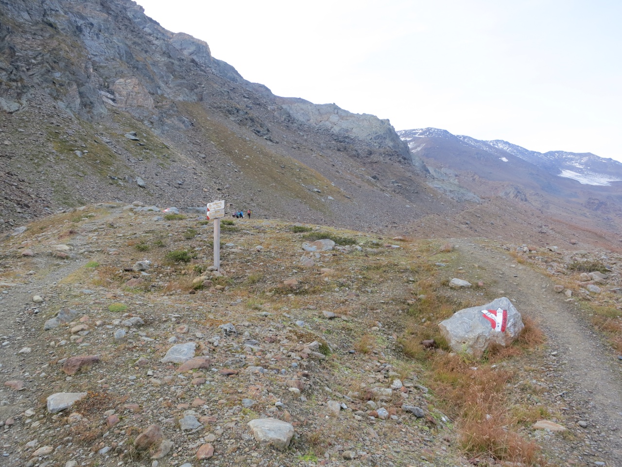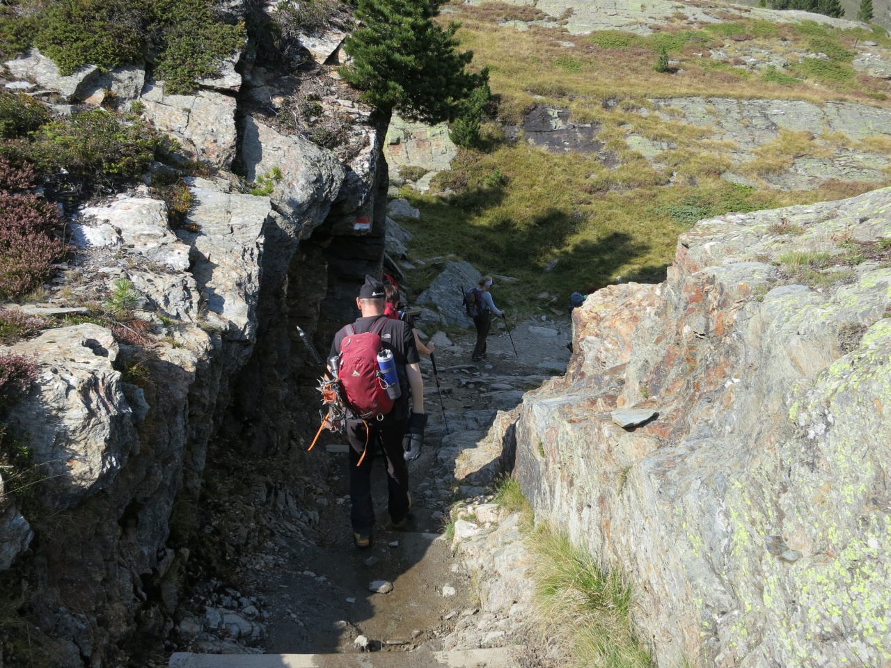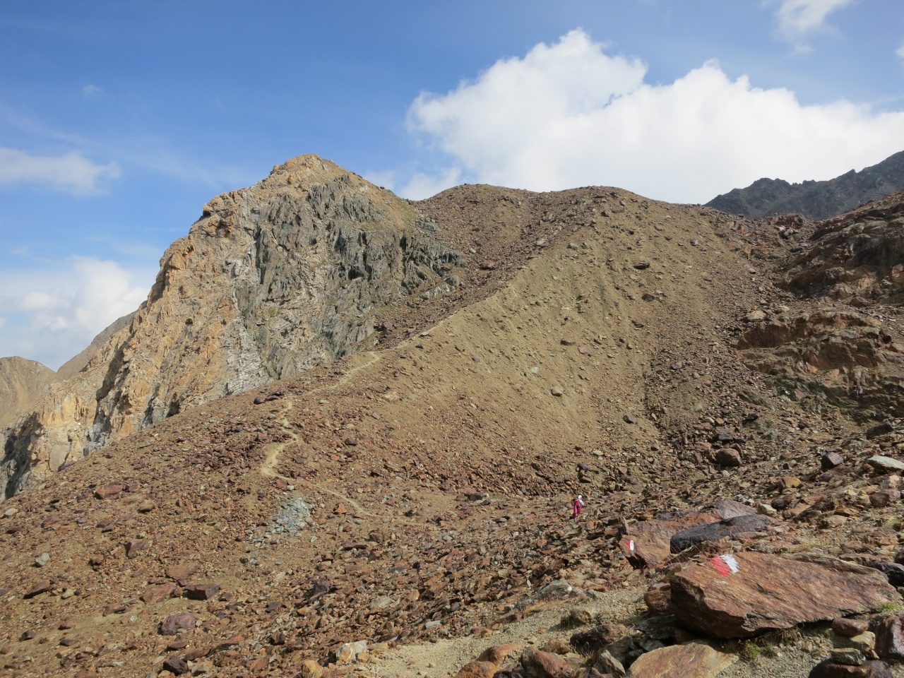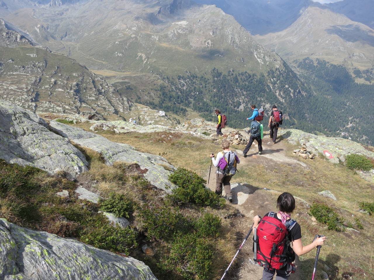 Den gut sichtbaren Steinmännern folgend bis auf den markierten Pfad von der Vorderen Rostpitz und dann Abstieg bis zur Zufallhütte.
