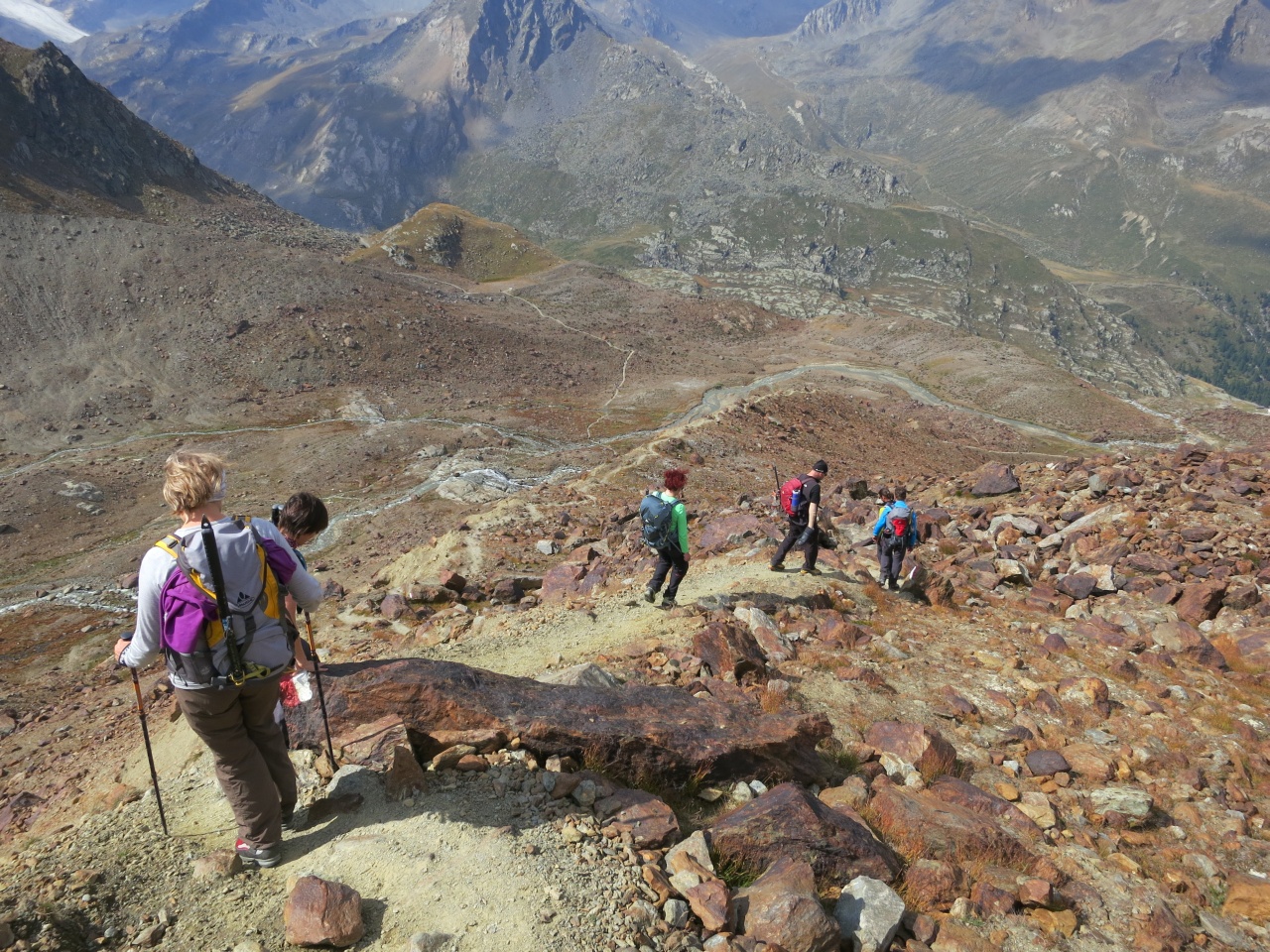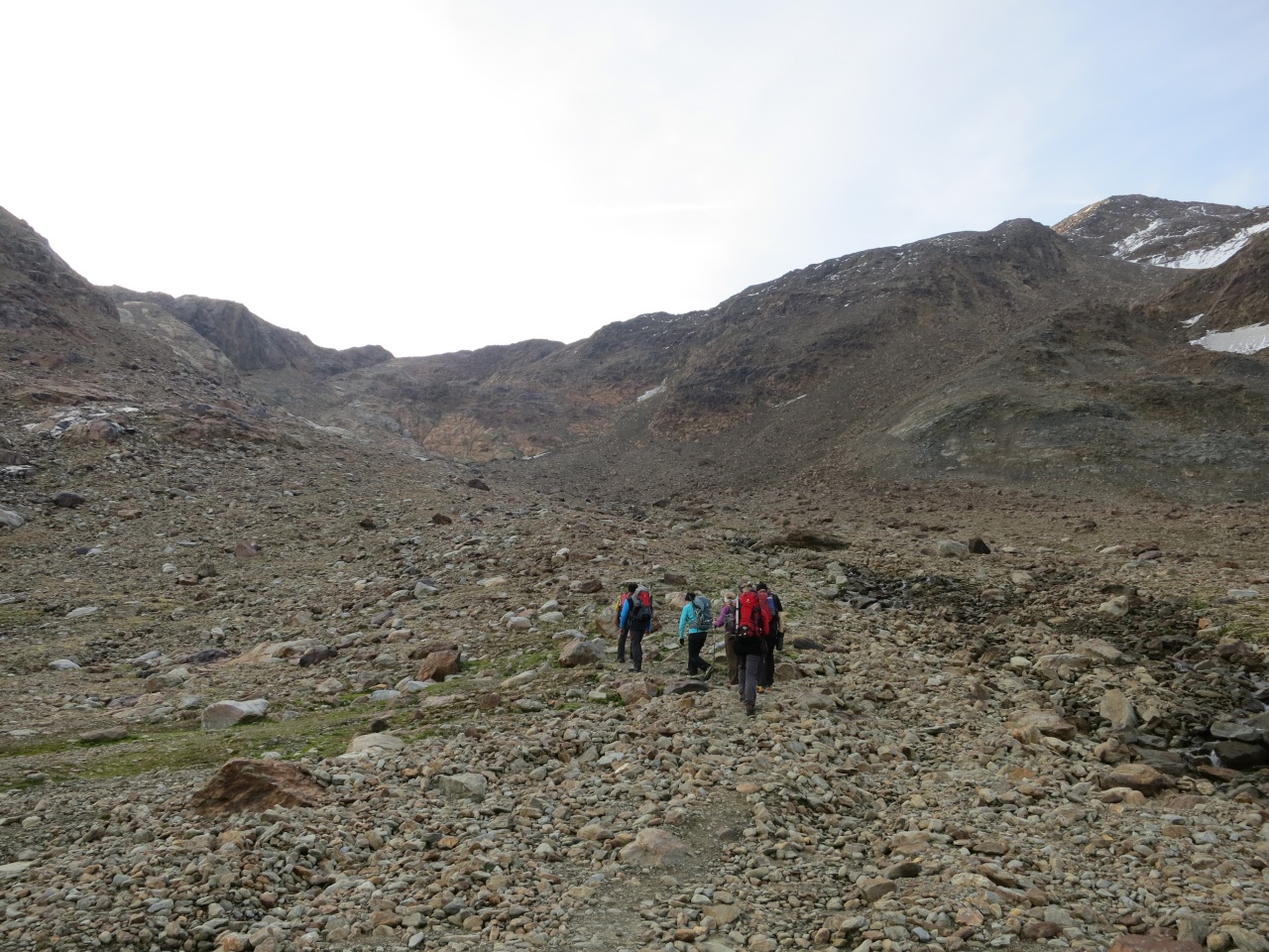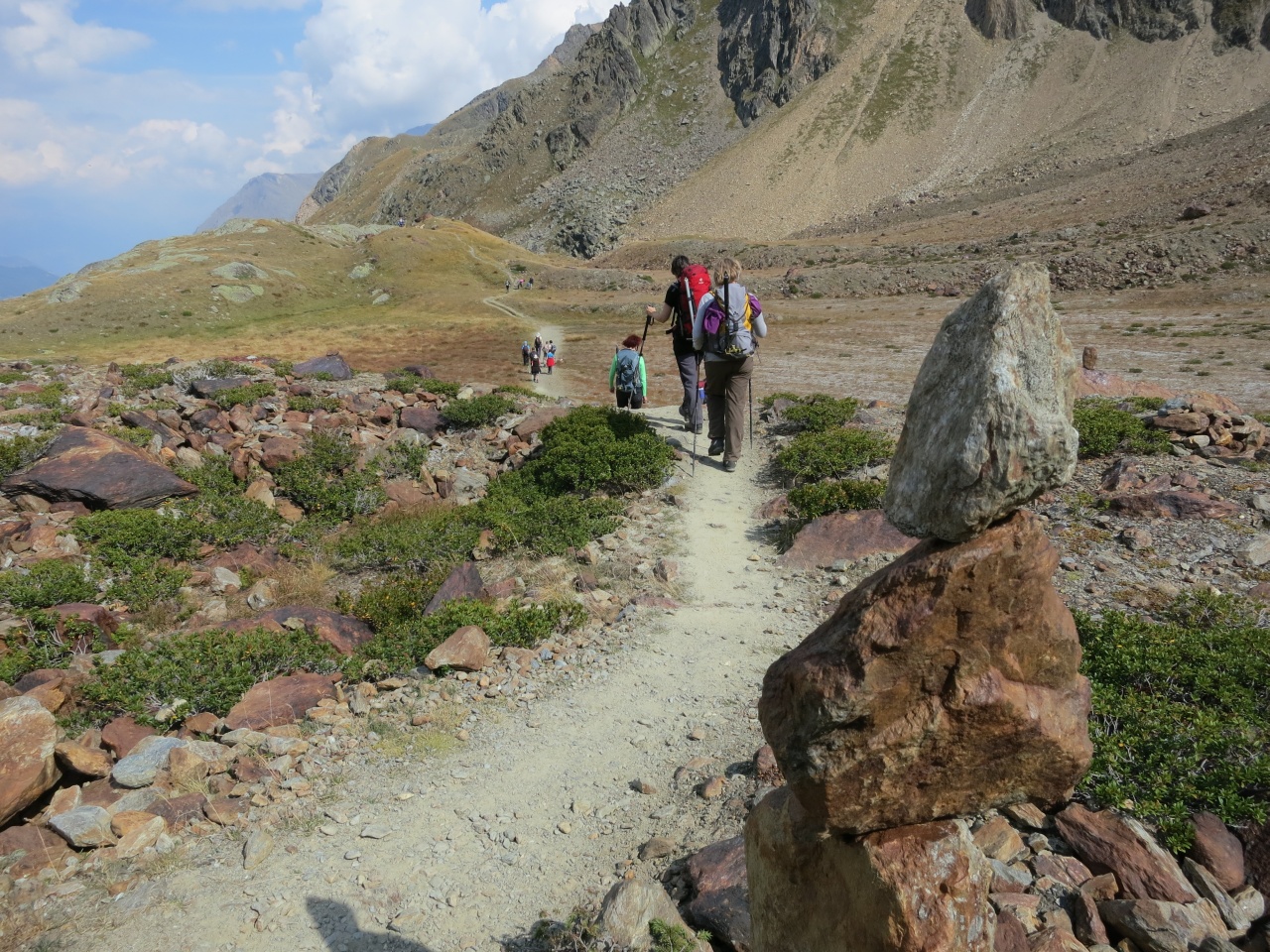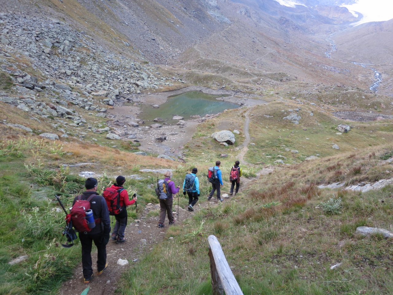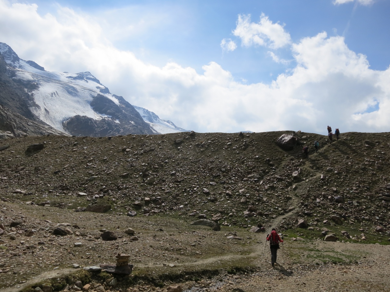 Den gut sichtbaren Steinmännern folgend bis auf den markierten Pfad von der Vorderen Rostpitz und dann Abstieg bis zur Zufallhütte.