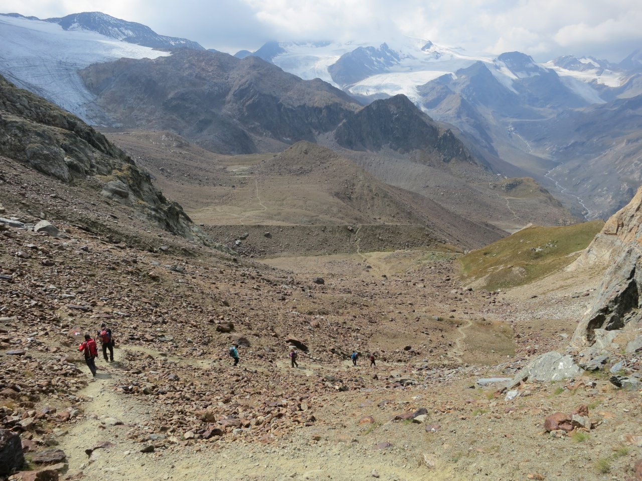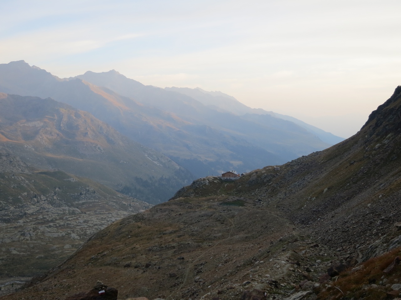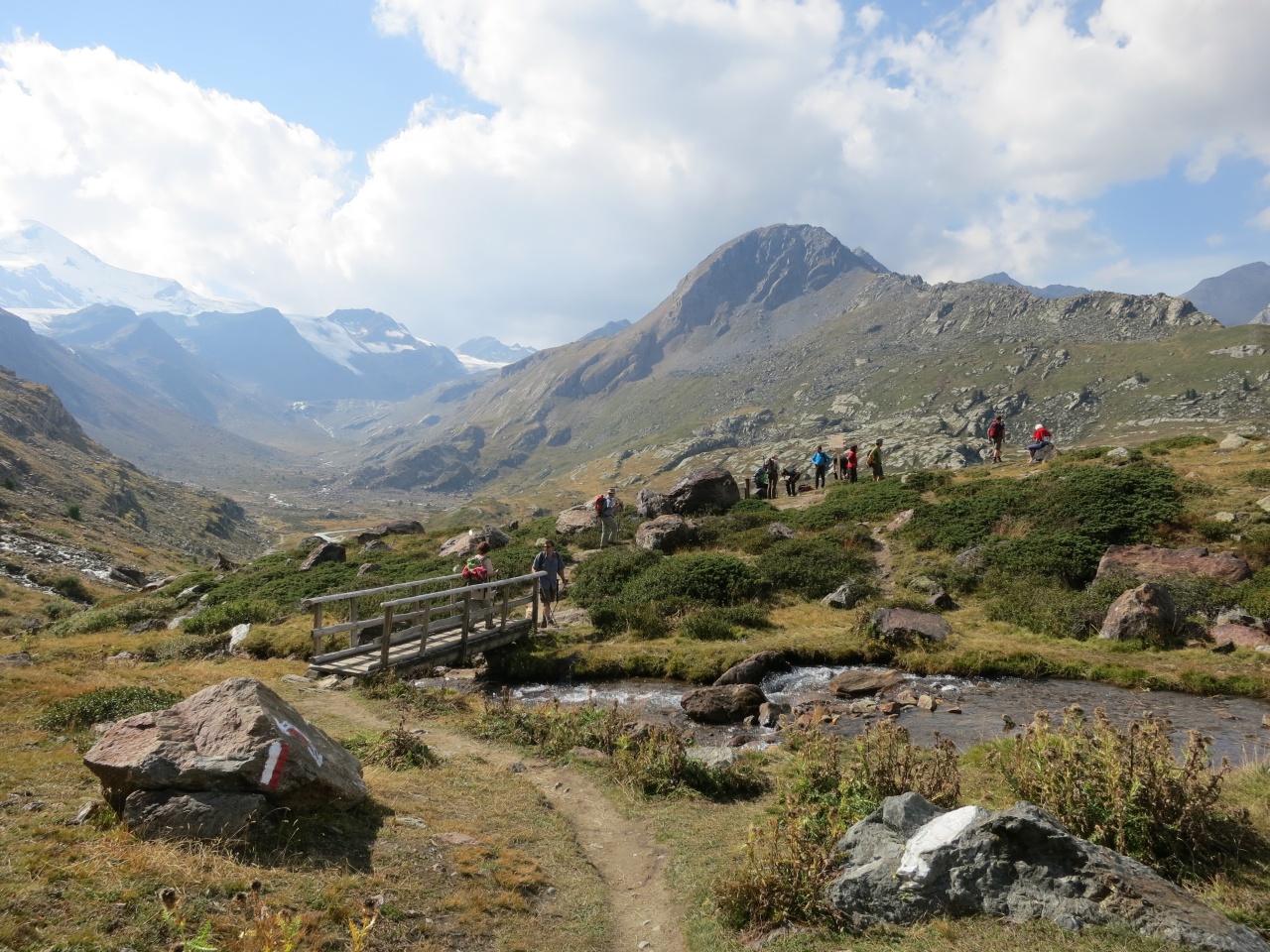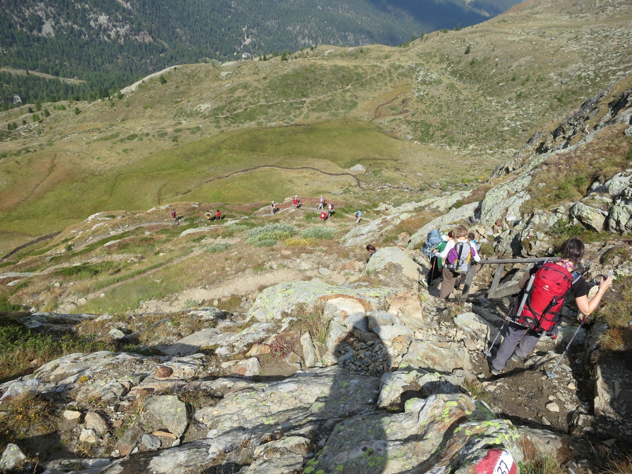 Den gut sichtbaren Steinmännern folgend bis auf den markierten Pfad von der Vorderen Rostpitz und dann Abstieg bis zur Zufallhütte.