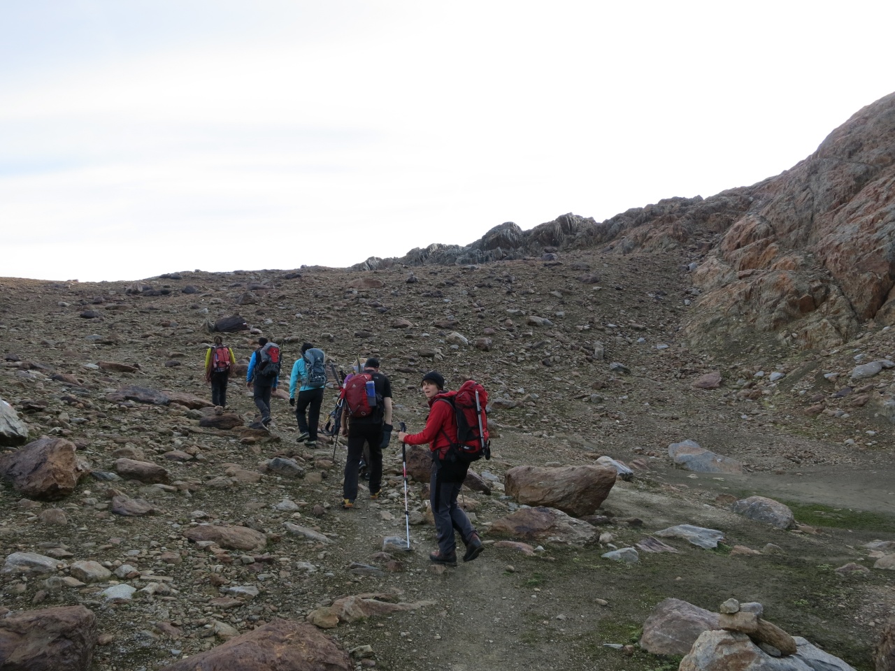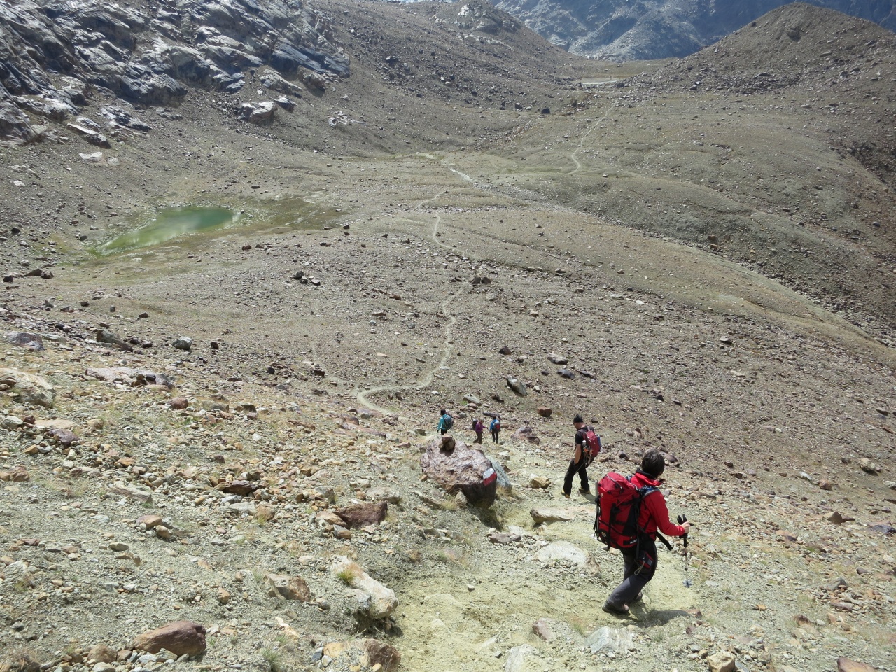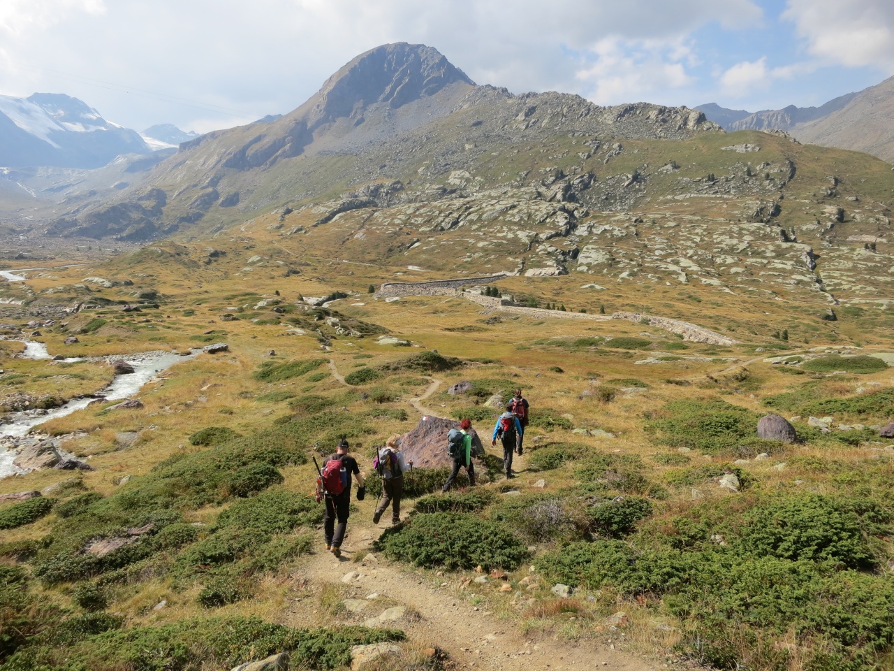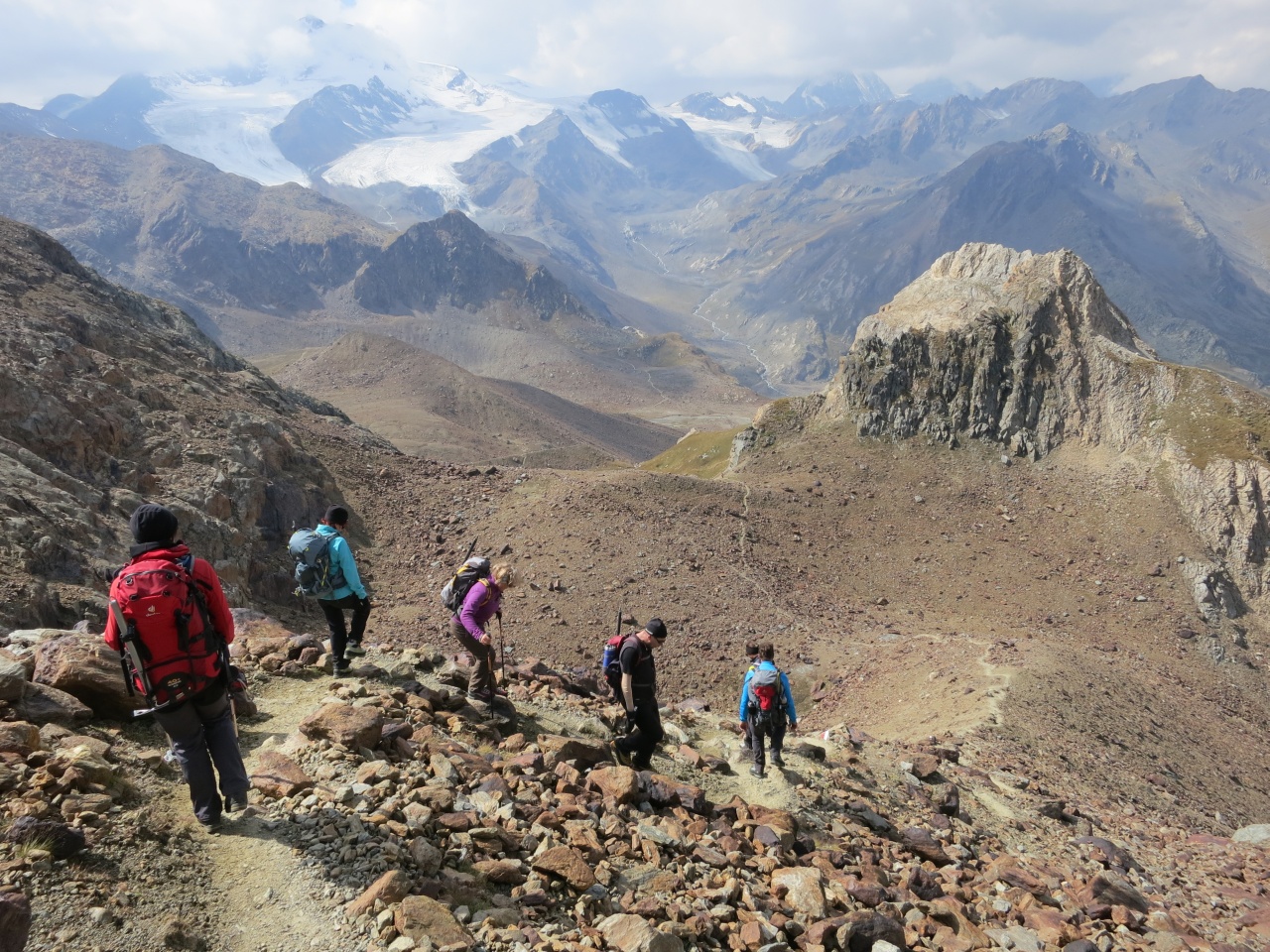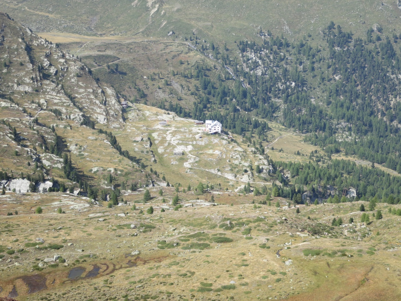 Den gut sichtbaren Steinmännern folgend bis auf den markierten Pfad von der Vorderen Rostpitz und dann Abstieg bis zur Zufallhütte.