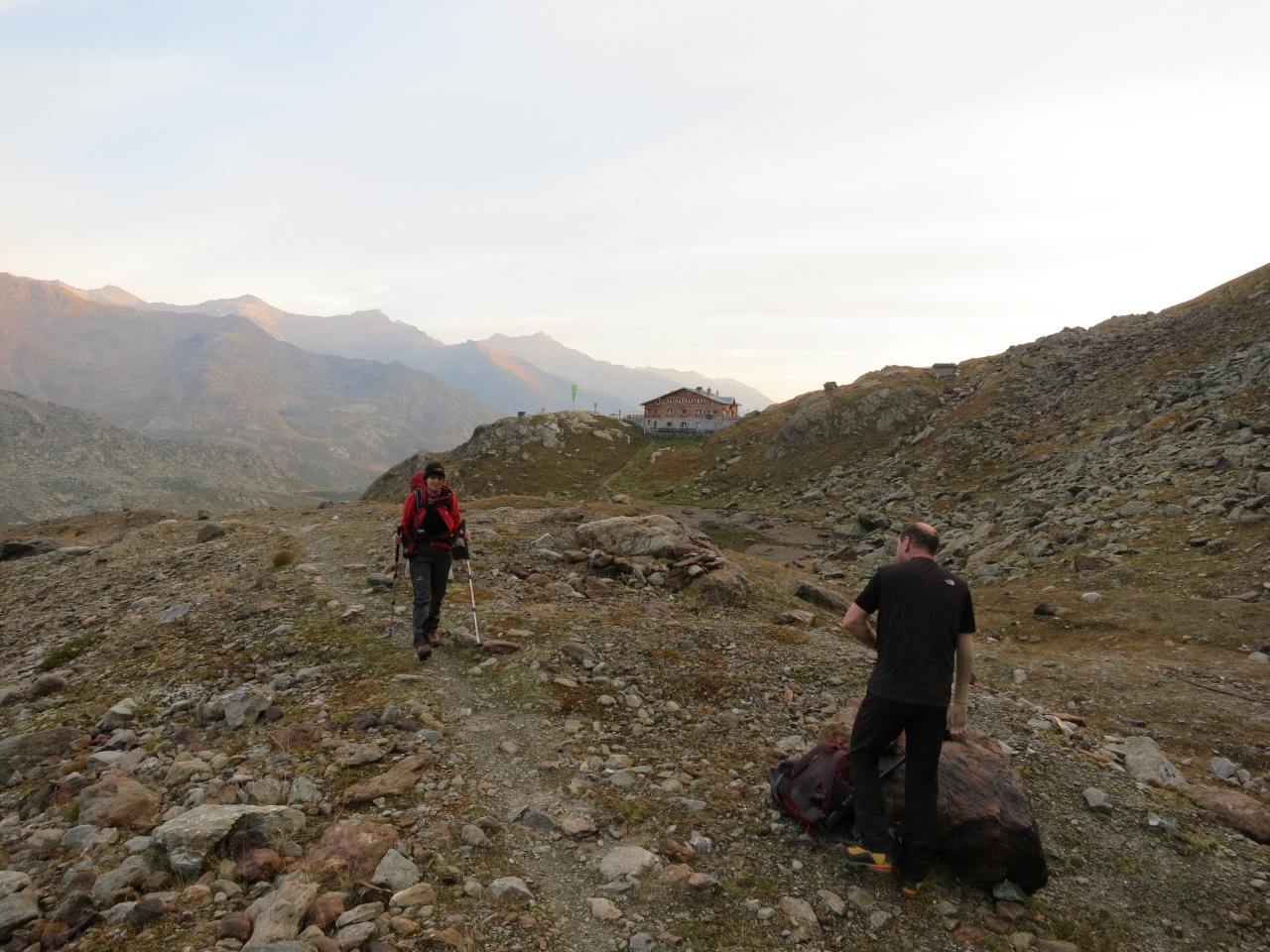 Überschreitung Cima Marmotta und Veneziaspitzen: Wir lassen die Marteller Hütte hinter uns