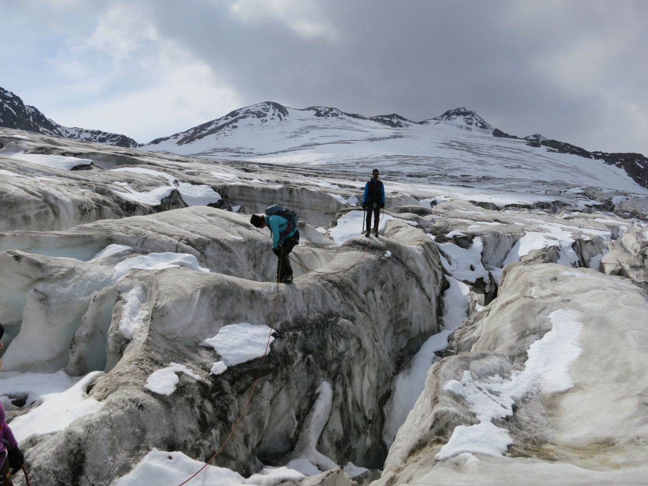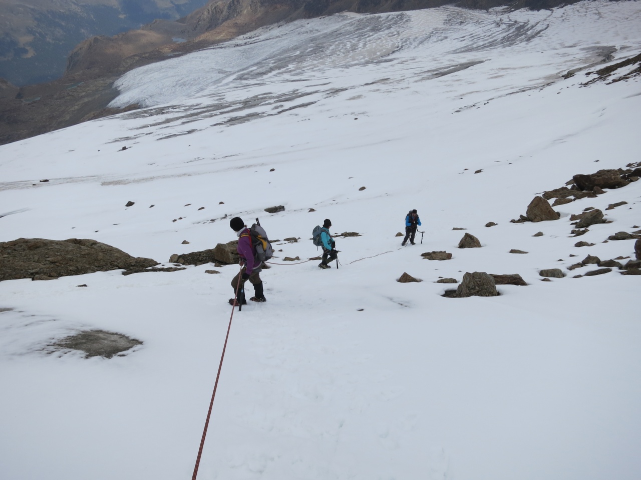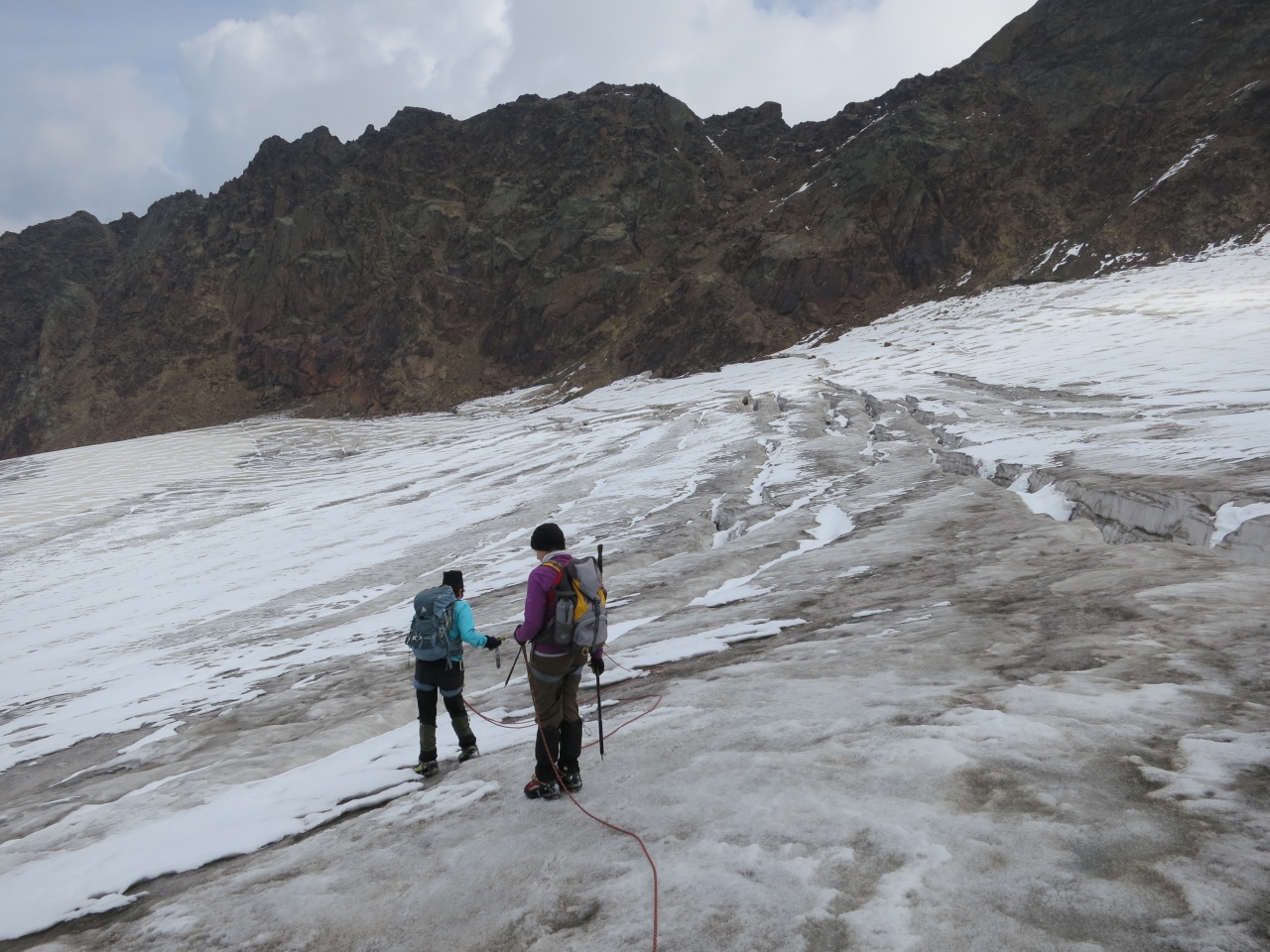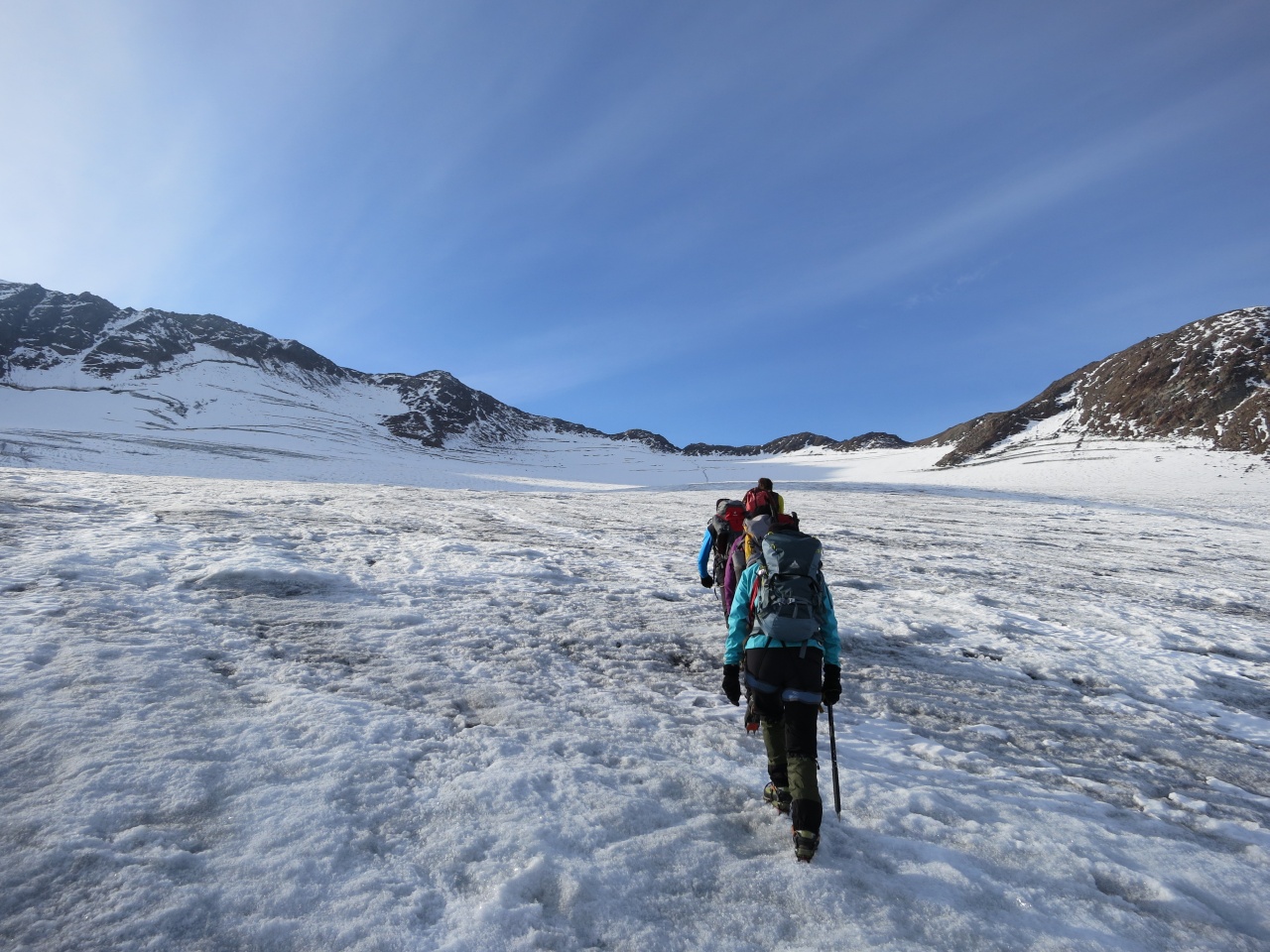 Überschreitung Cima Marmotta und Veneziaspitzen: Wir haben bereits die Hälfte des Gletschers überquert