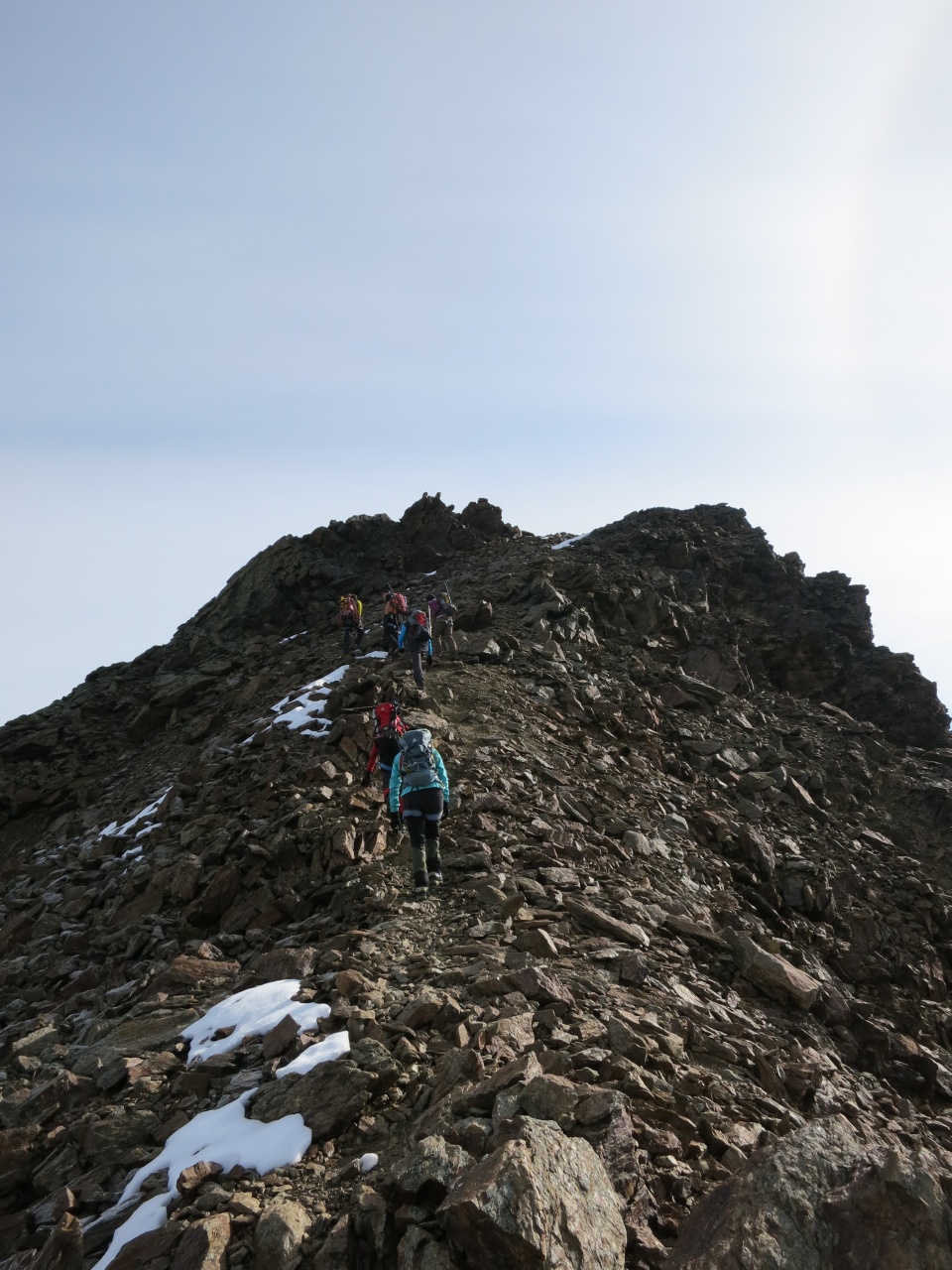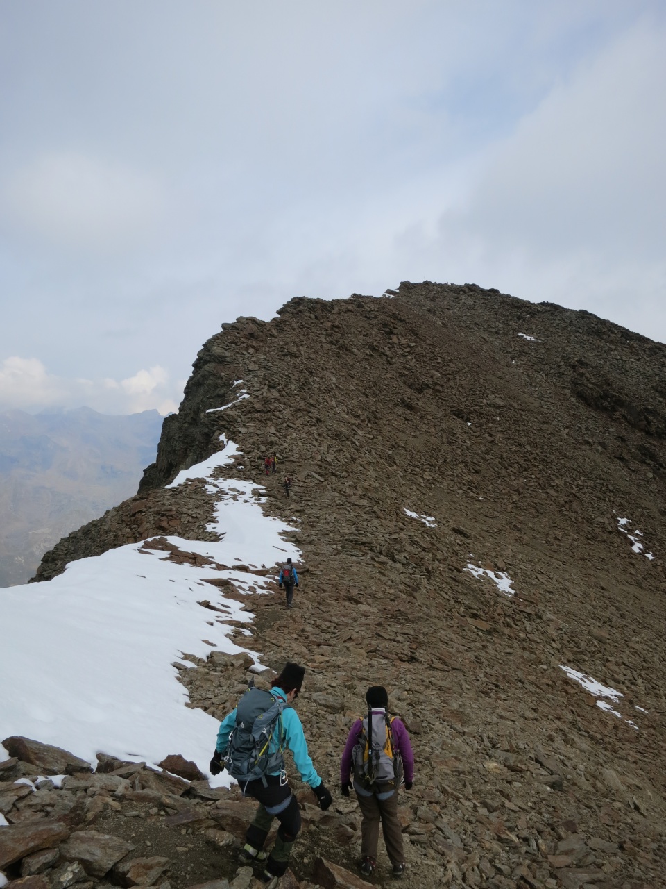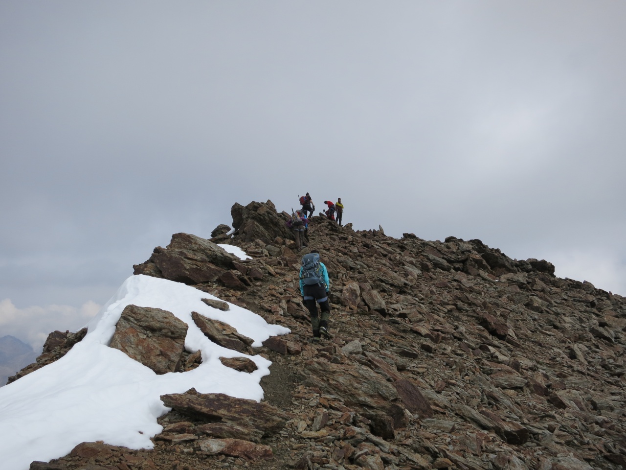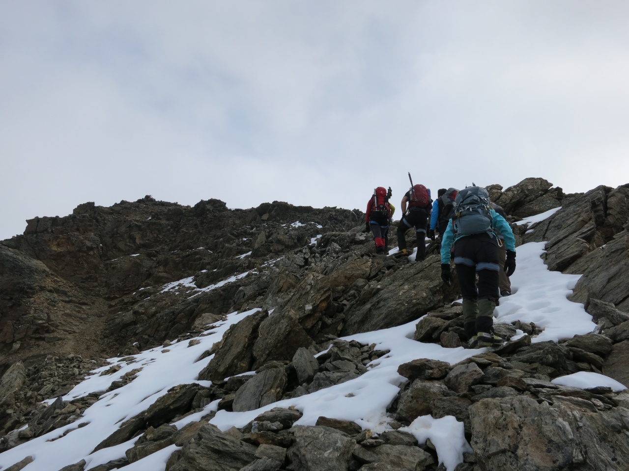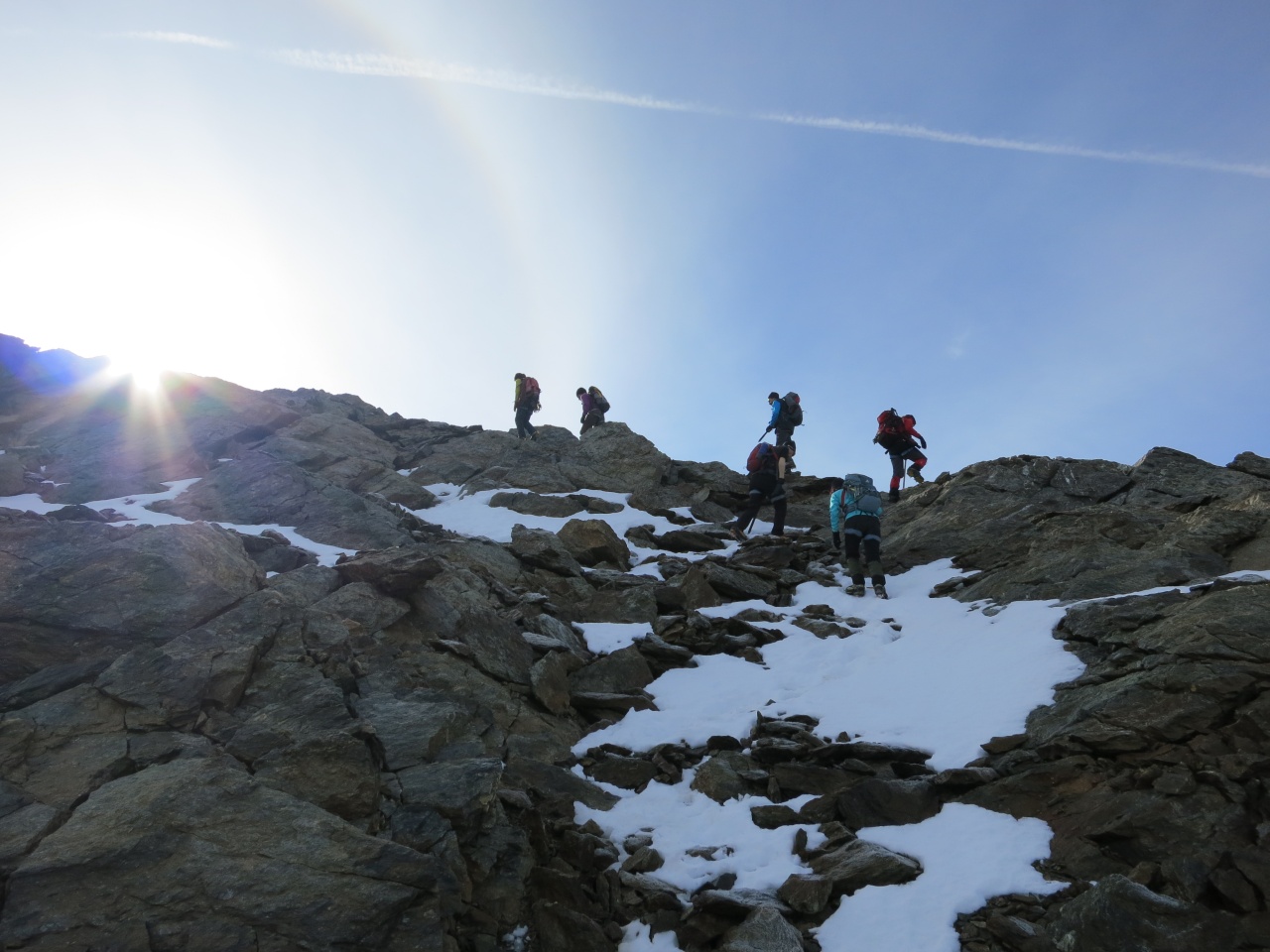 Noch ein kurzes Stück durch Schnee und Fels und schon sind die ersten am Grat