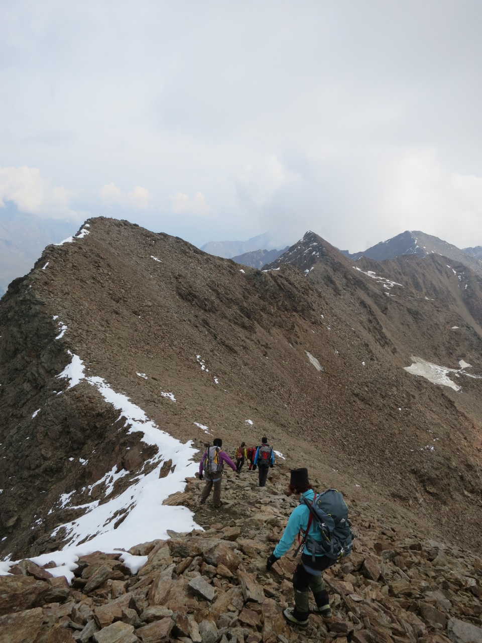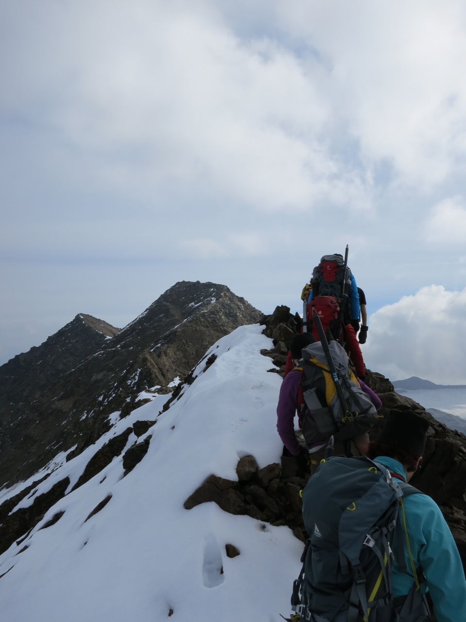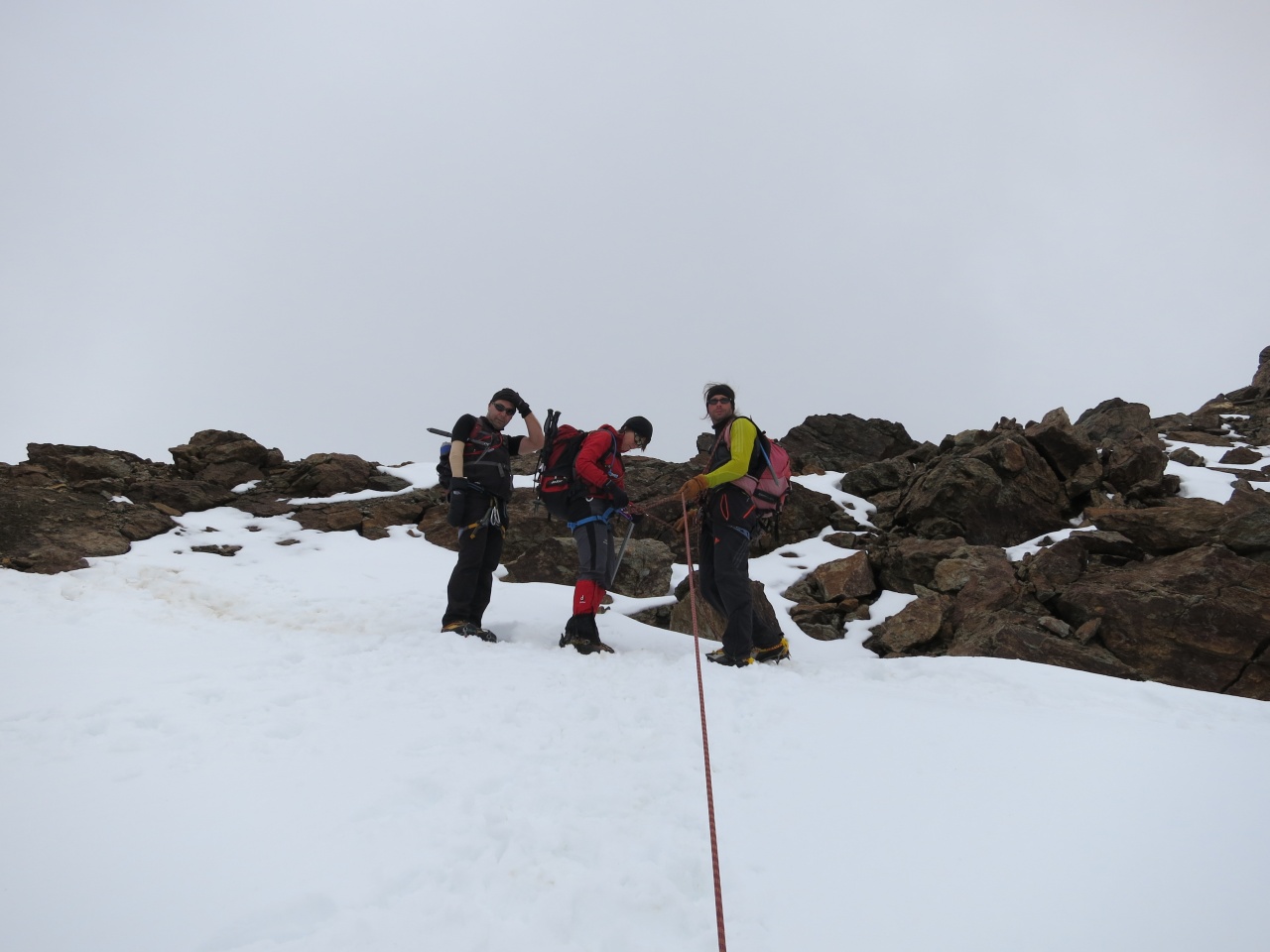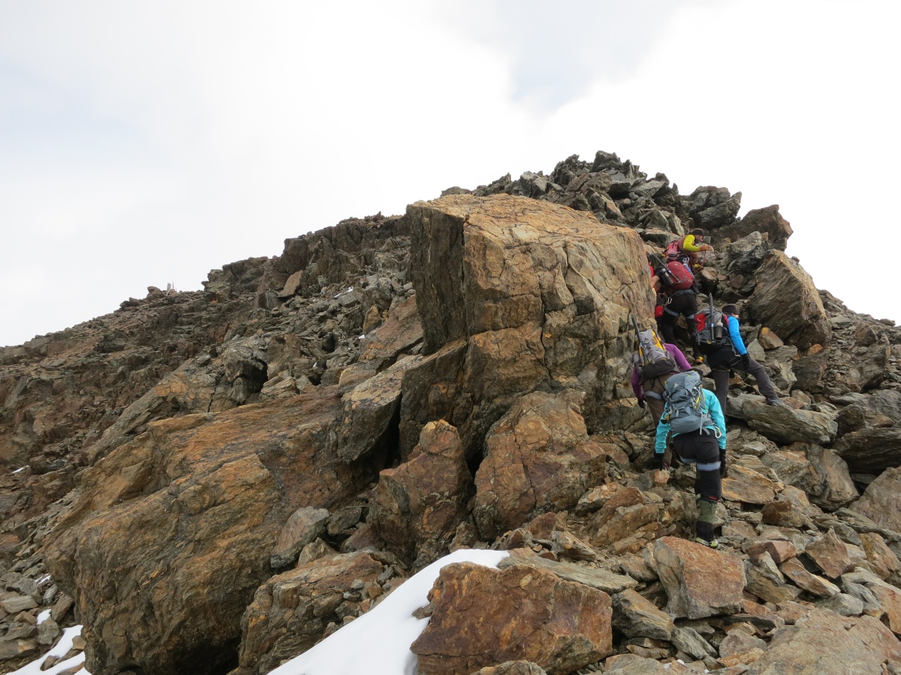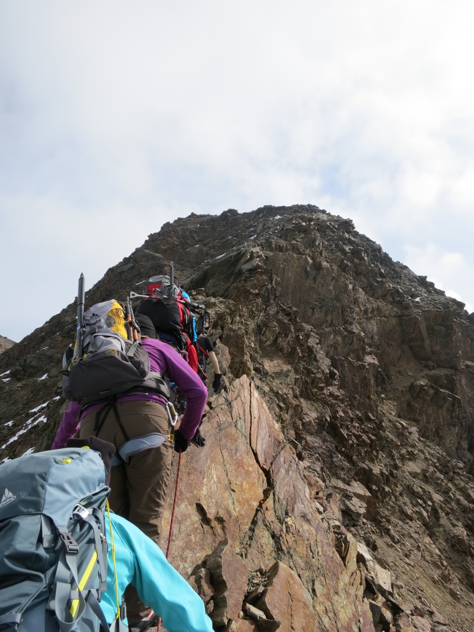 Noch ein kurzes Stück durch Schnee und Fels und schon sind die ersten am Grat