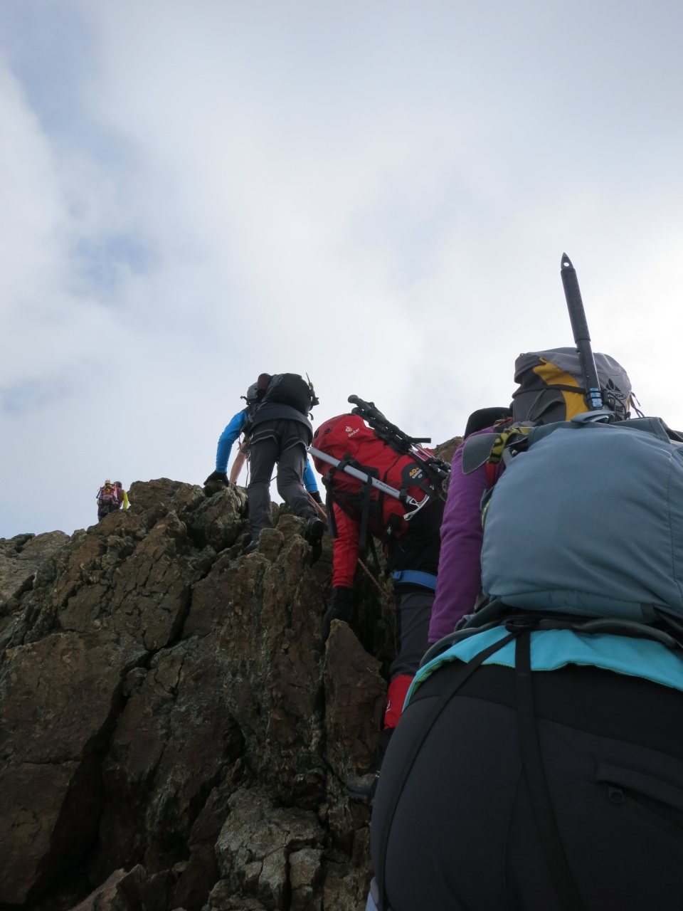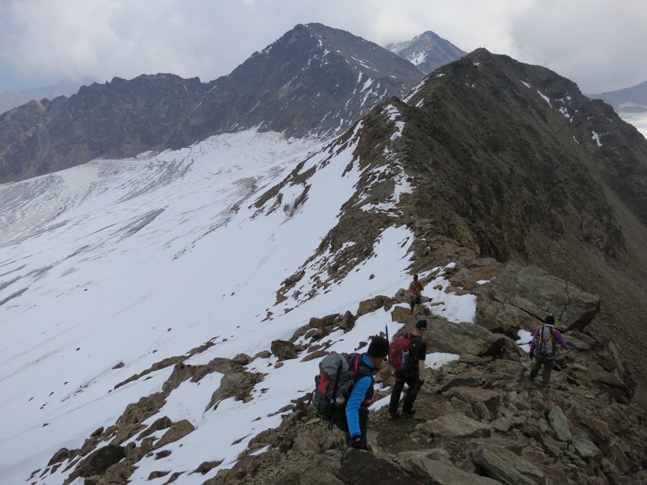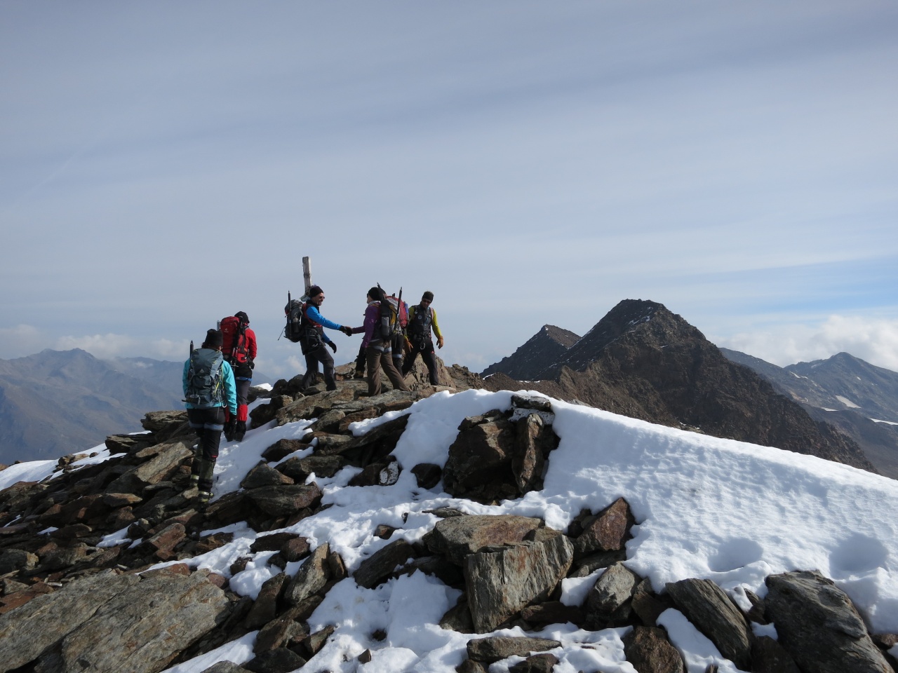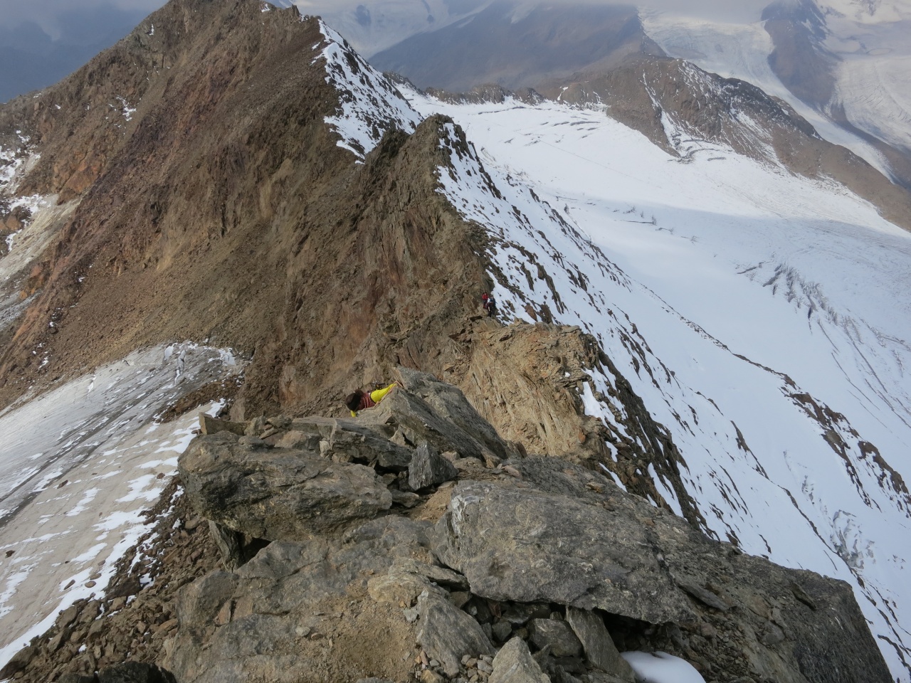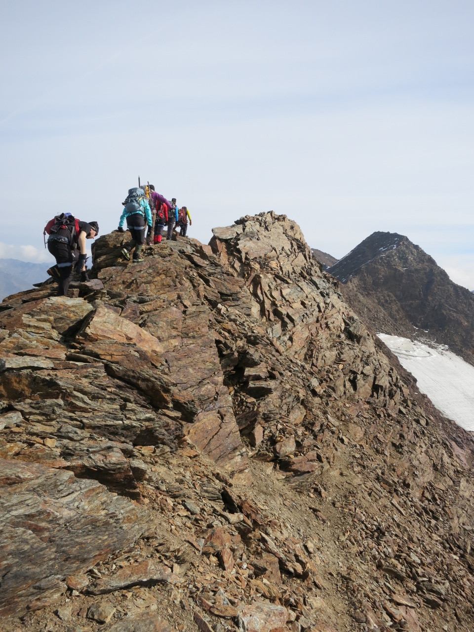 Noch ein kurzes Stück durch Schnee und Fels und schon sind die ersten am Grat