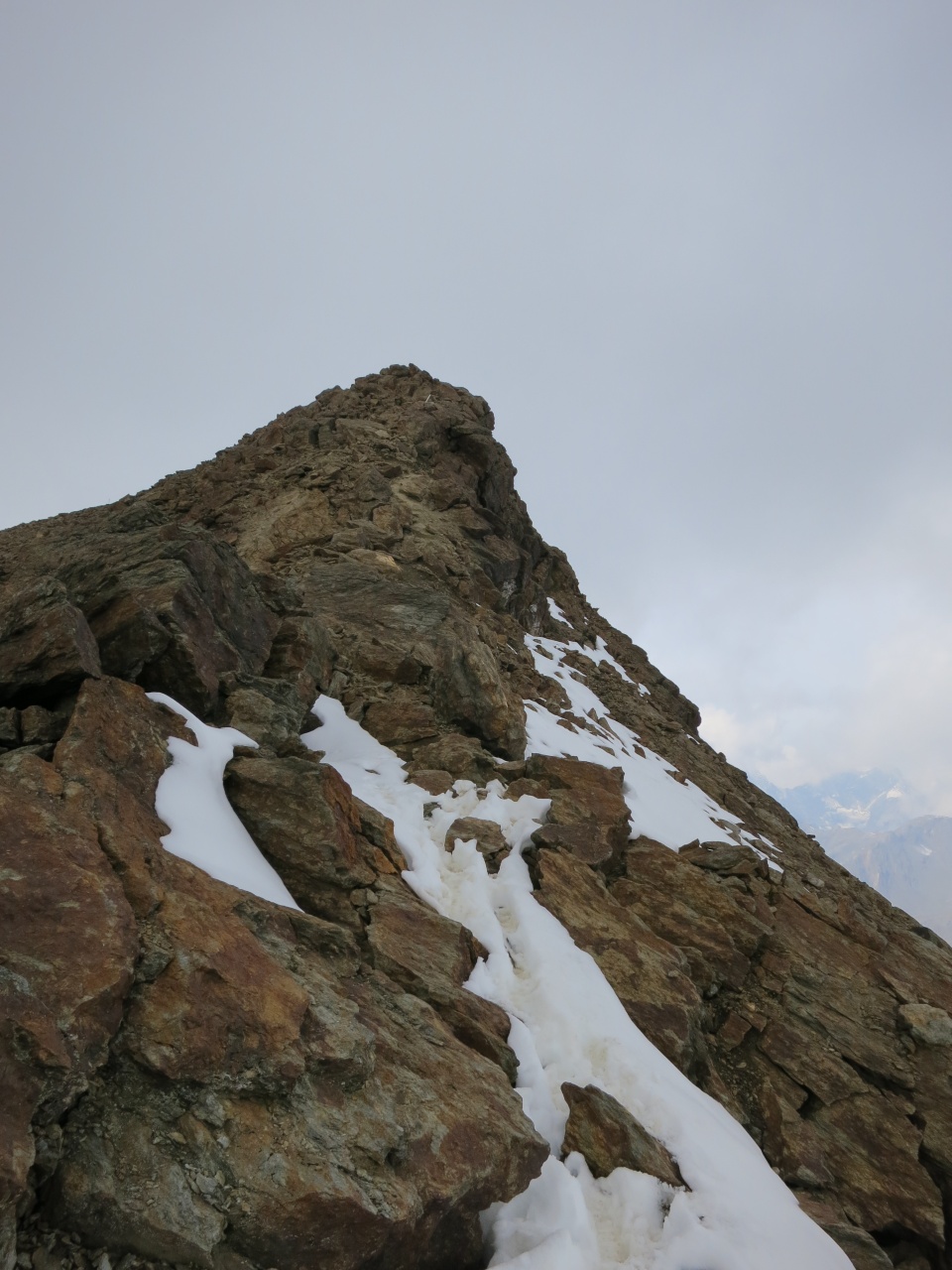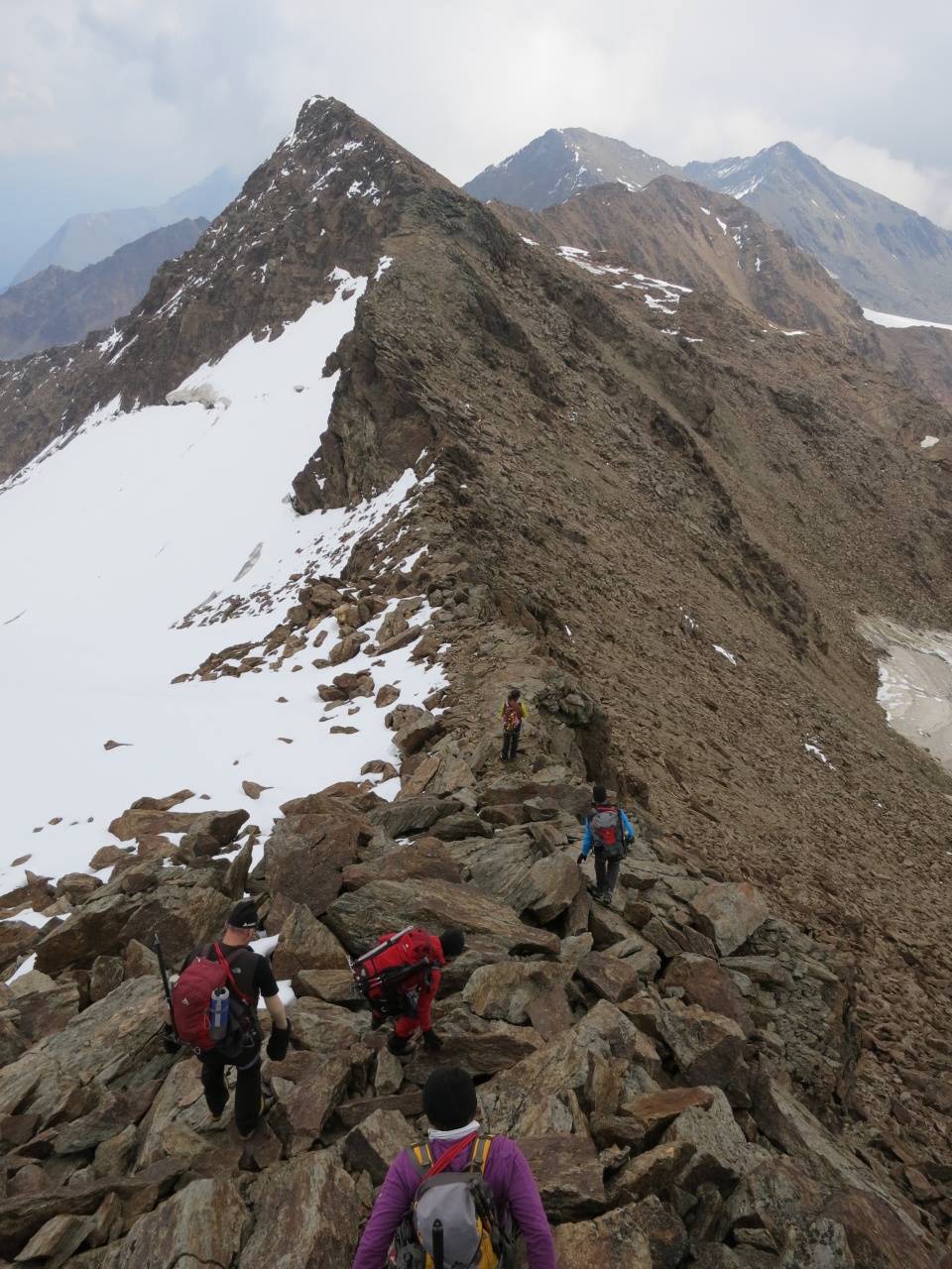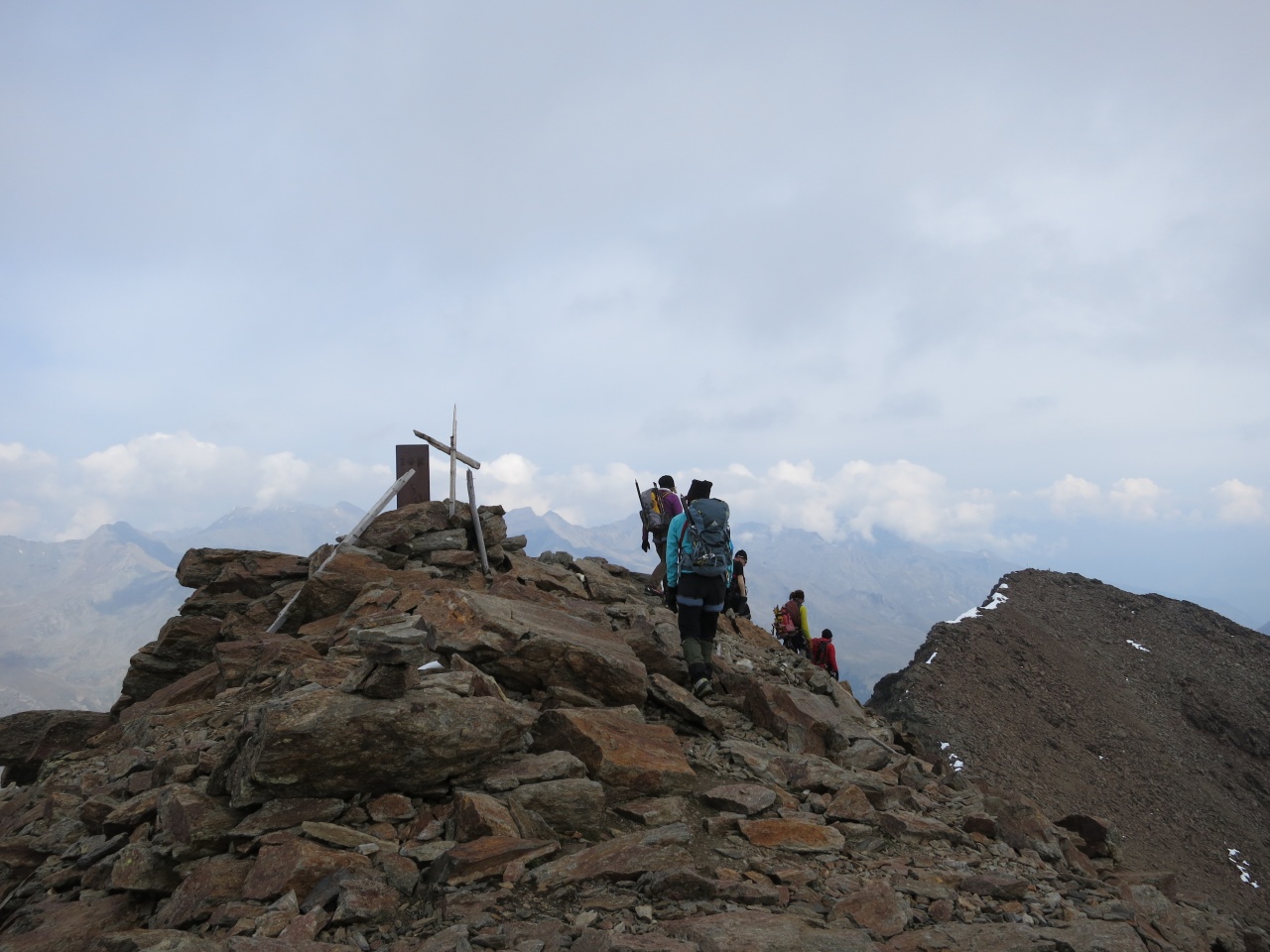 Überschreitung Cima Marmotta und Veneziaspitzen: Im trüben Licht sehen wir bereits unser Tagesziel am Himmel