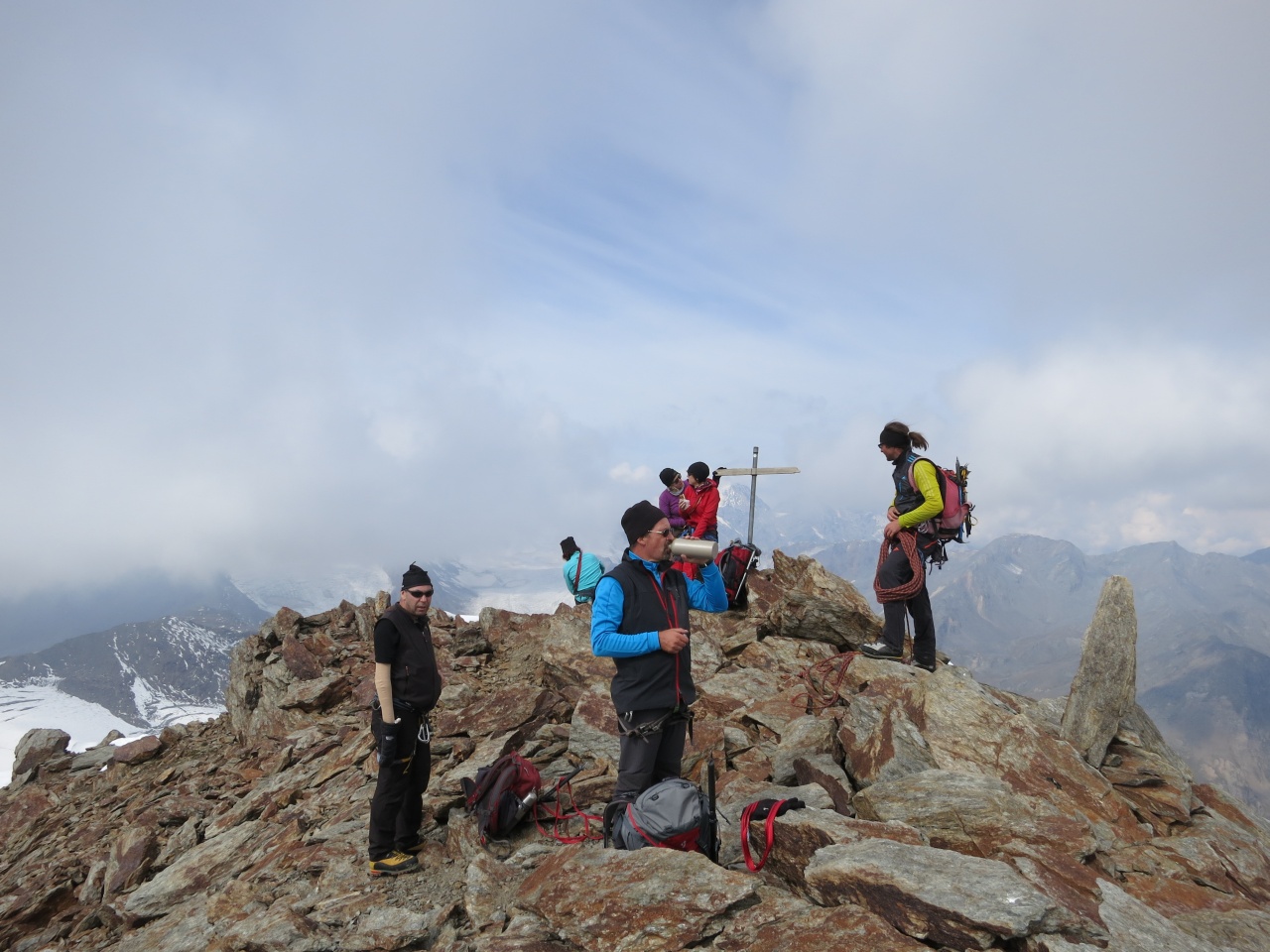 Überschreitung Cima Marmotta und Veneziaspitzen: Über der Veneziaspitze zeigt sich auch für uns erstmals die Sonne