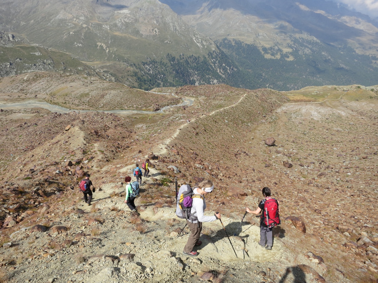 Überschreitung Cima Marmotta und Veneziaspitzen: Schön sieht man unter uns den Weg Richtung Zufallspitze