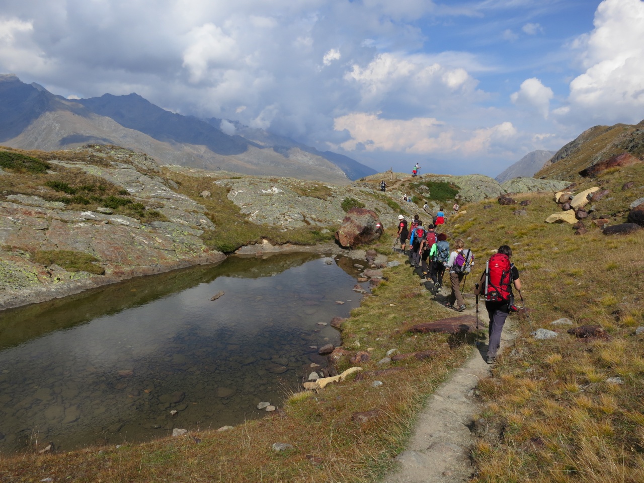 Überschreitung Cima Marmotta und Veneziaspitzen: Direkt hinter der Marteller Hütte befindeet sich ein kleiner See