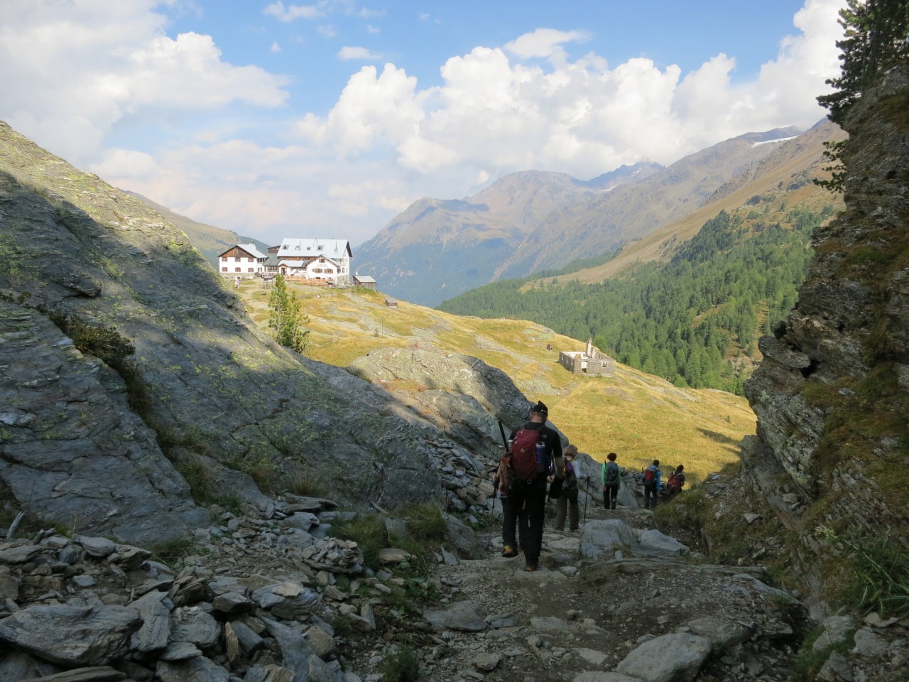 Überschreitung Cima Marmotta und Veneziaspitzen: Wir steigen zunächst zur Marteller Hütte auf