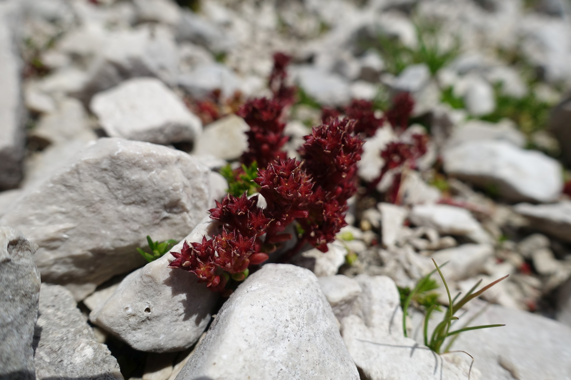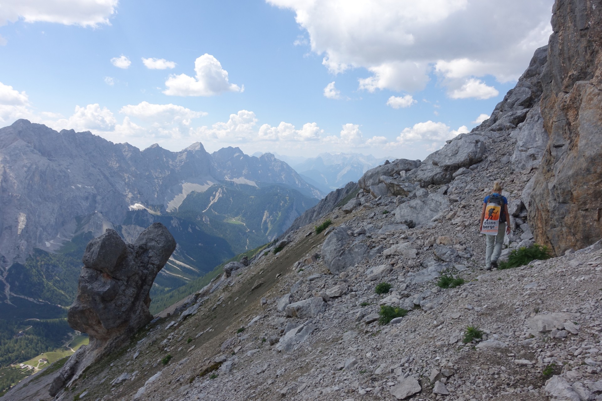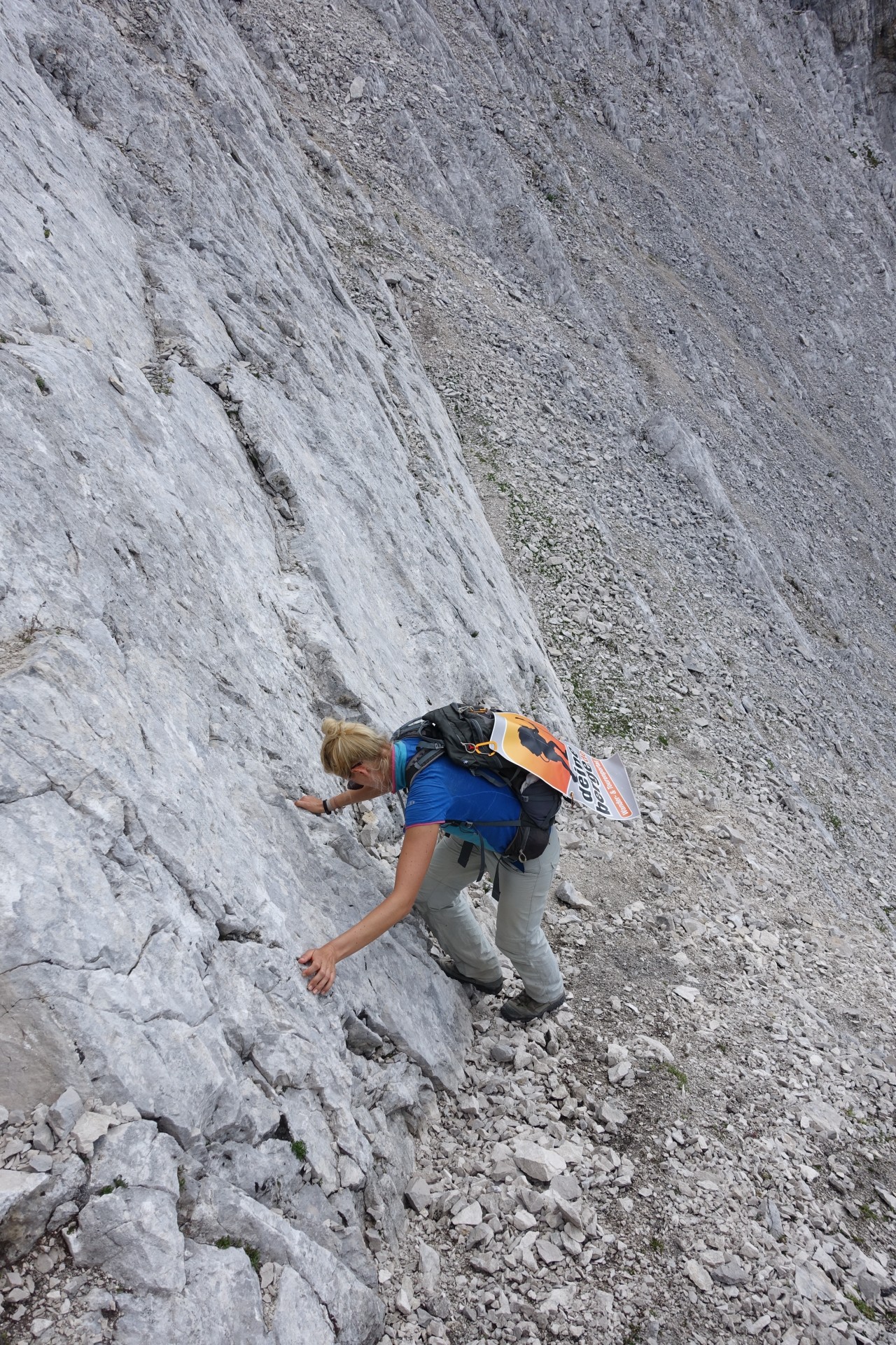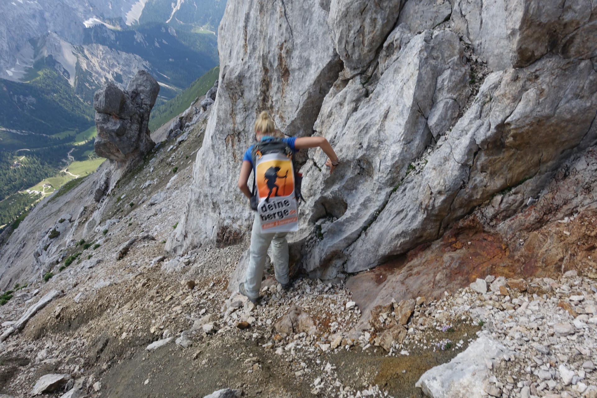 Einen Abzweig gibt es nicht vom Hauptweg, auch keine Markierung oder Pfadspur. Also stiegen wir durch eine Rinne in leichter interessanter Kletterei so lange auf, bis wir auf einen Steig trafen.