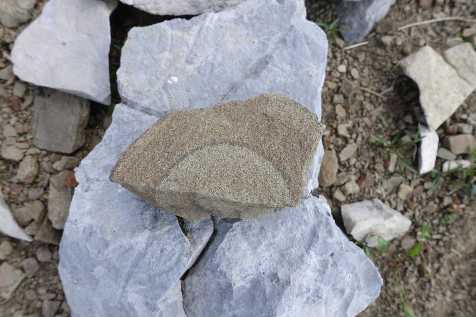 Aufstieg über ein trockenes Bachbett in leichter Kletterei.