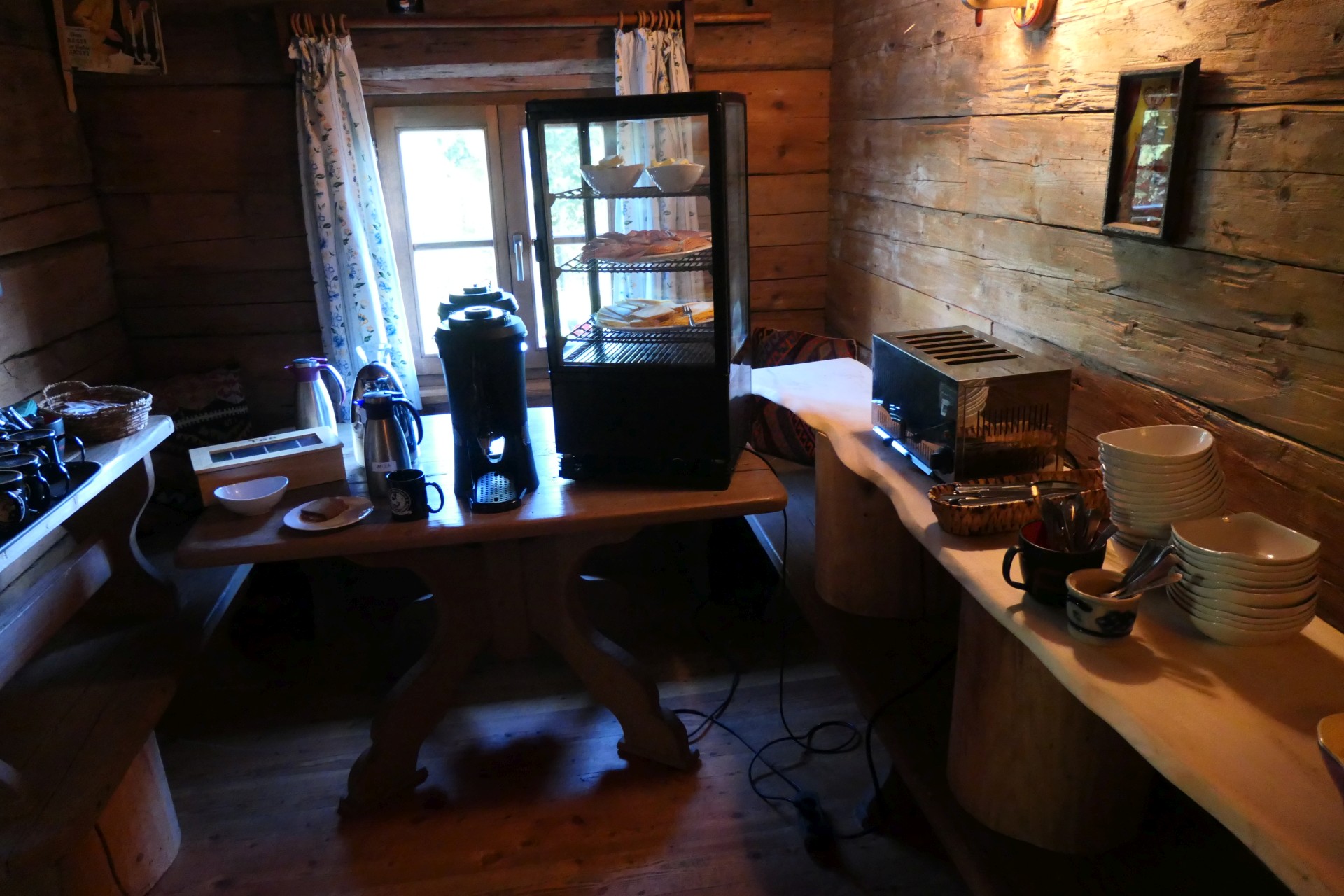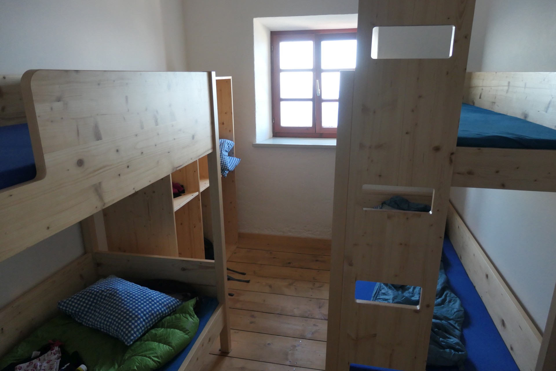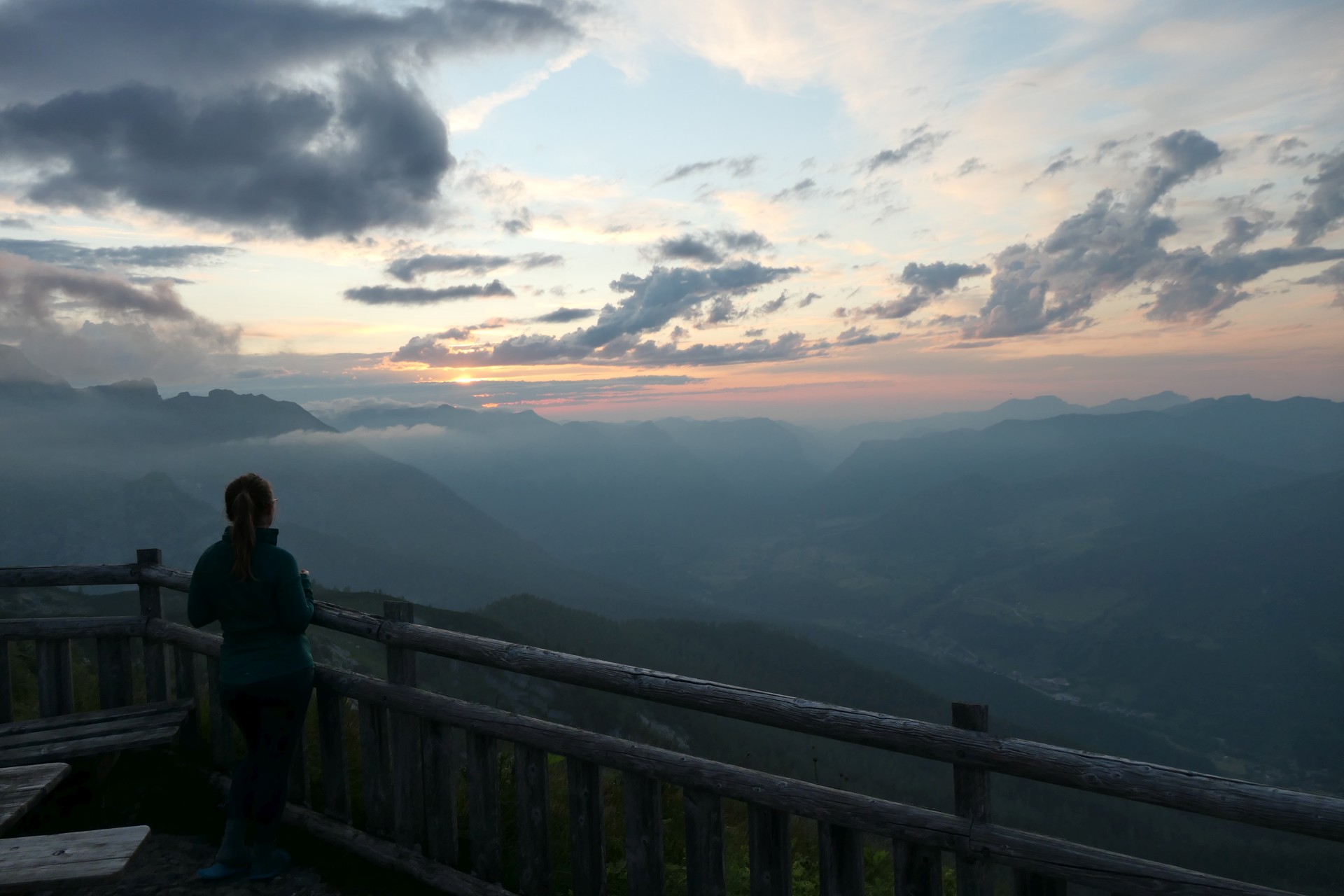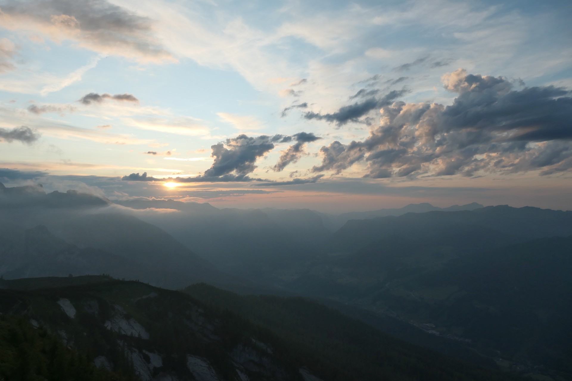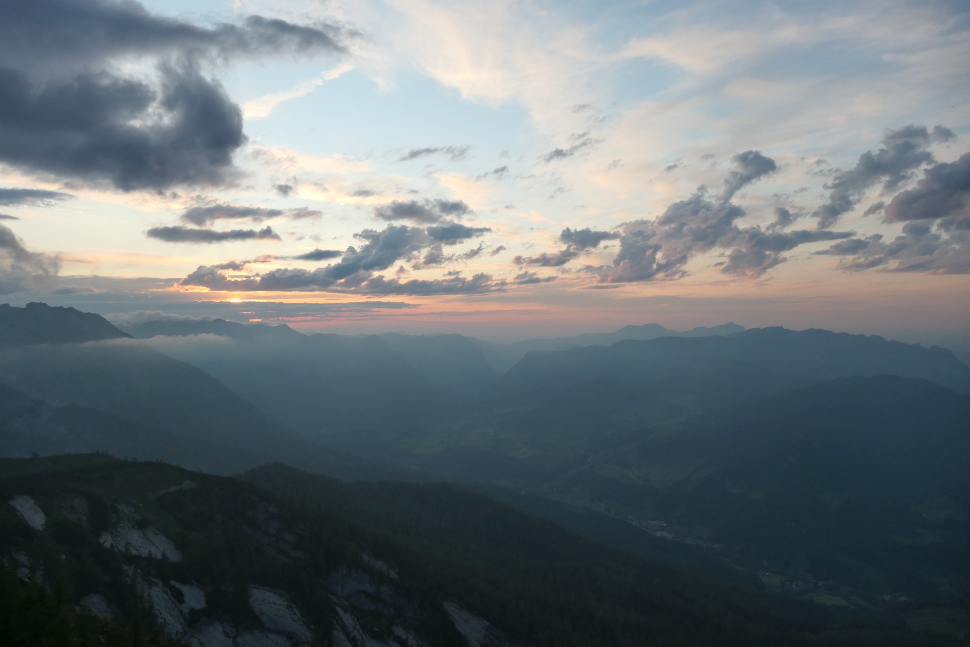 Wegen geplanter Watzmannüberschreitung nach Rast in Kühroint Aufstieg zum Watzmannhaus. Anfangs sehr idyllisch flach durch den Lärchenwald. Dann kurze Felspassage zur Falzalm und weiter über Falzsteig in Serpentinen hinauf zur Hütte.