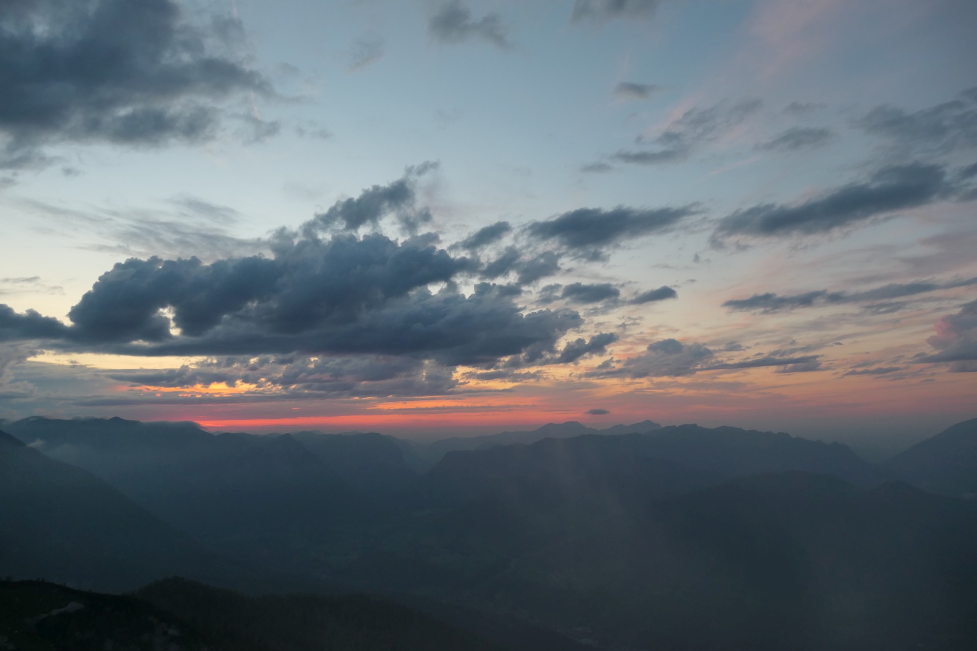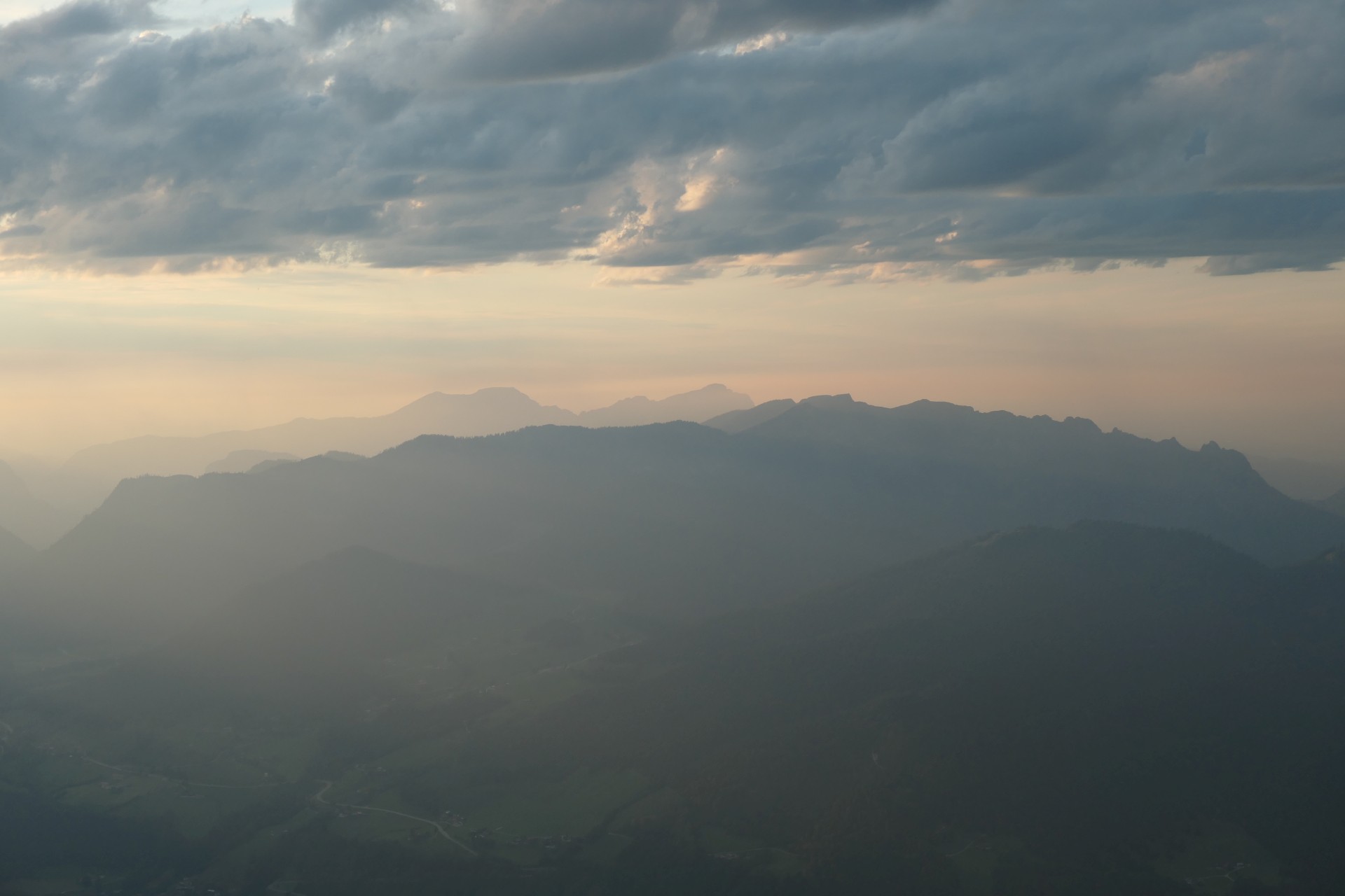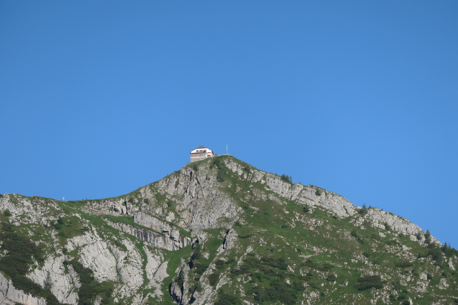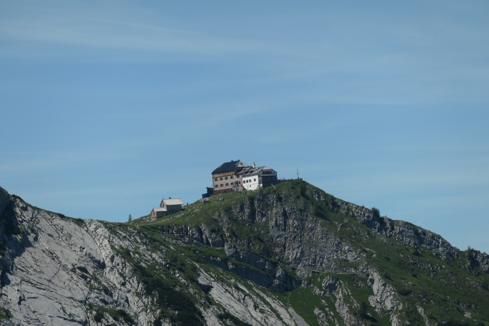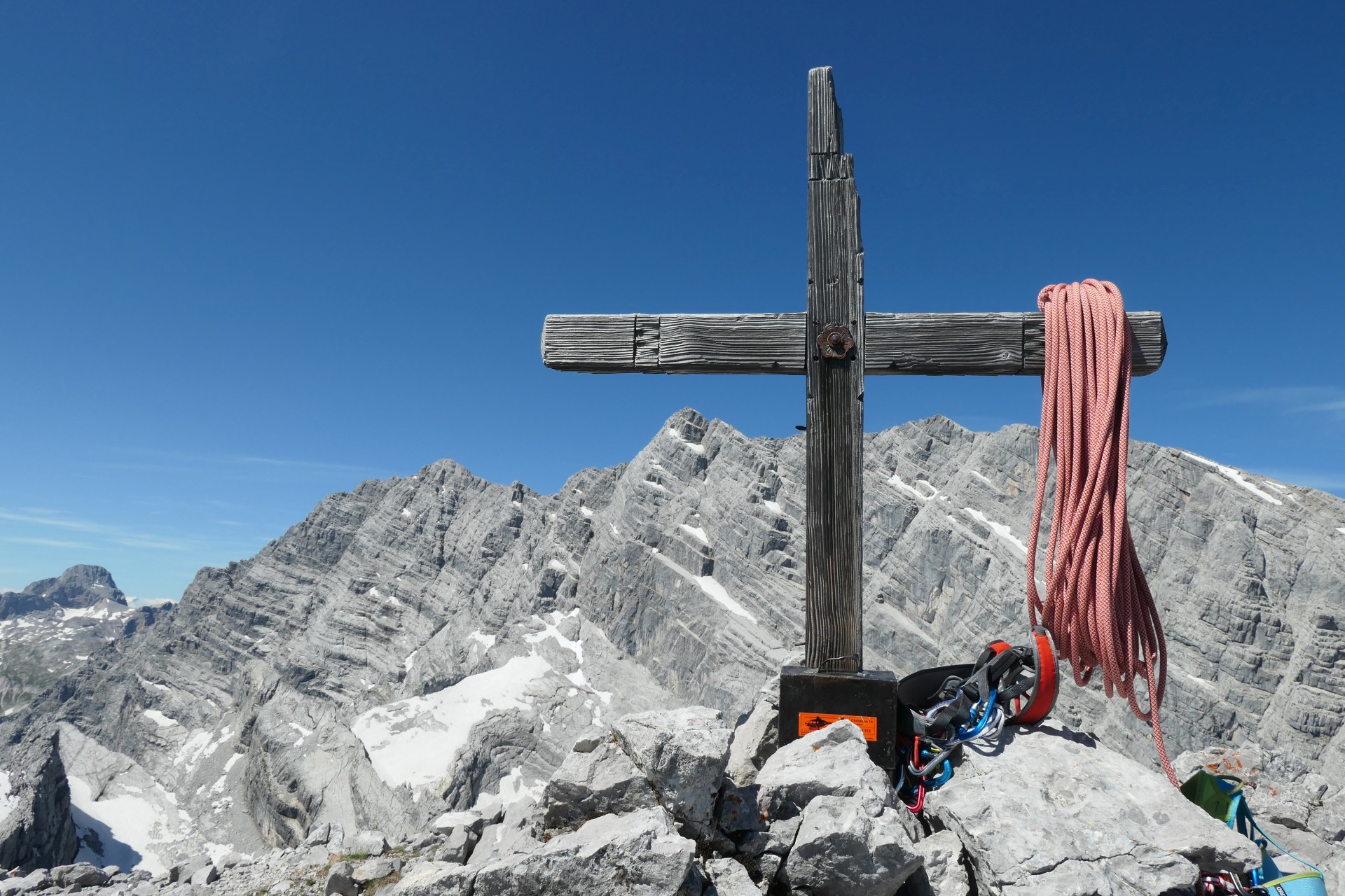 Abstieg über die steile Ostflanke mit zahlreichen Steinmännchen markiert und gut zu finden. Einige leichte Klettereien. Kurz vor dem Fensterl steile Graspassage. Bei Nässe sicher heikel. Nach dem Fensterl mit Tiefblick auf Königssee spannend bergab einigen Türmen ausweichend. Teils extrem rutschig und steil. Zuletzt schmal und eng hinauf zum Mooslahner.