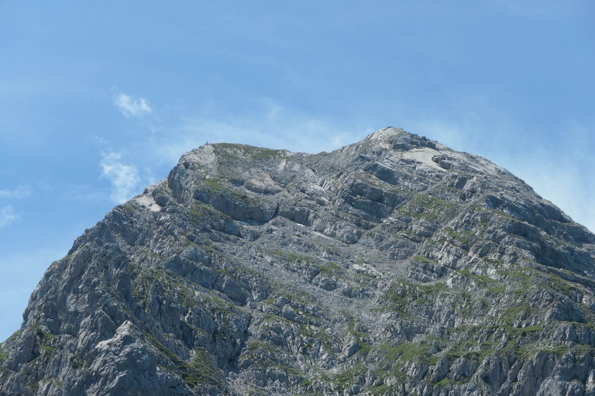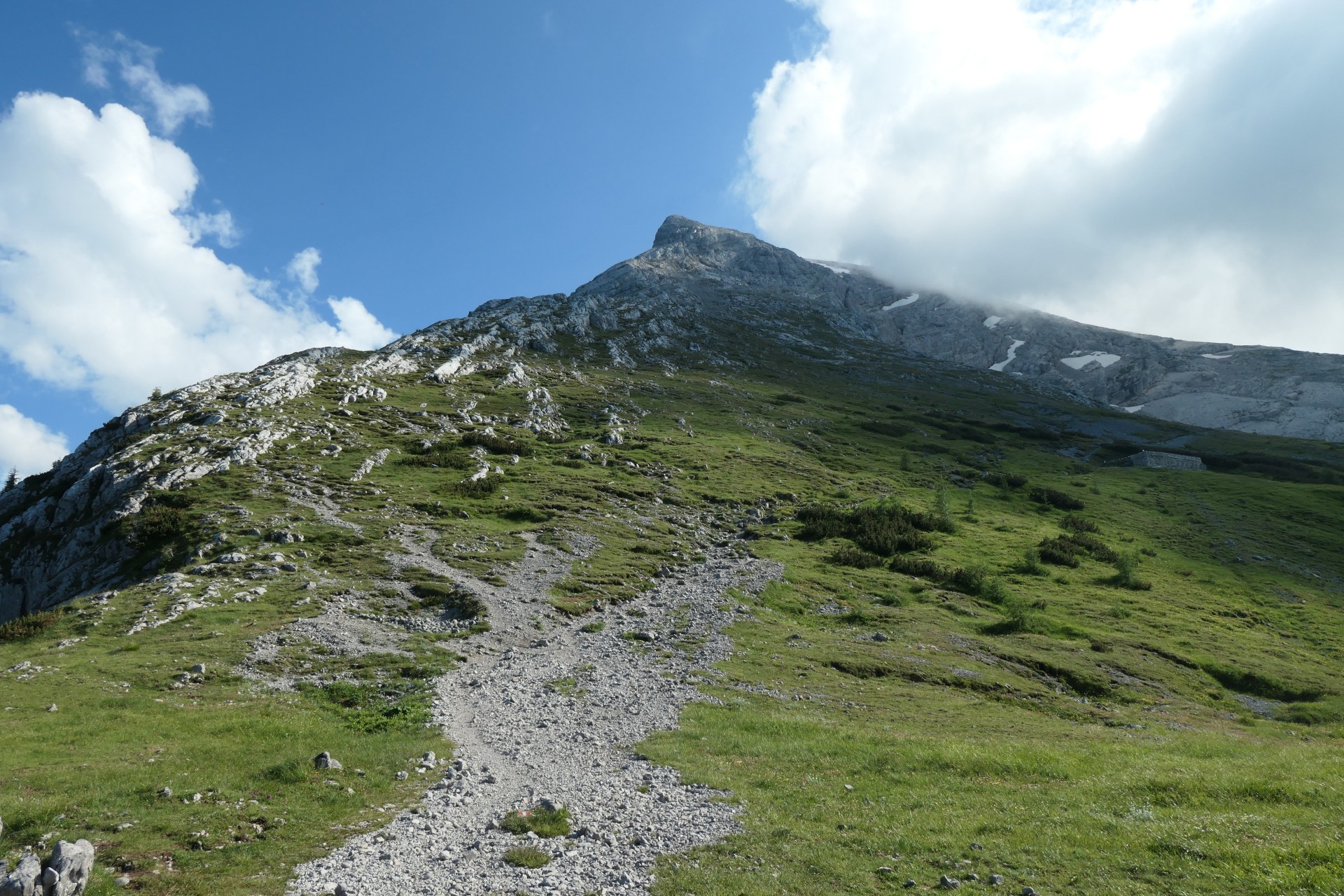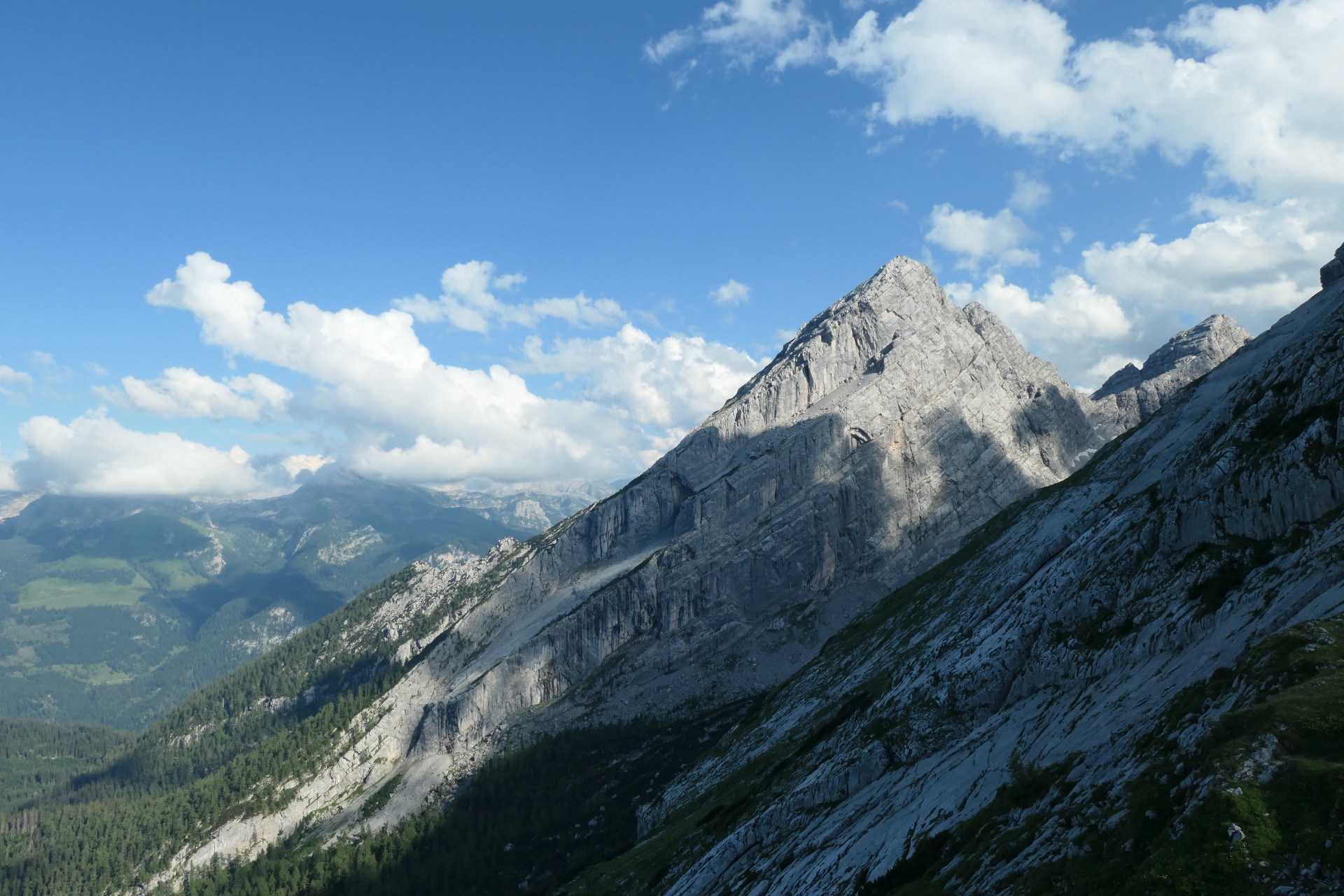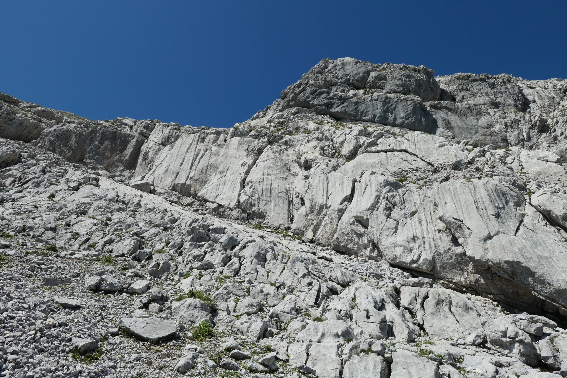 Im Wald anfangs flach dann immer steiler werdend bis zum Gendarm. Hier kurze ausgesetzte 2er Kletterei mit Bohrhaken. Danach am Nordgrat entlang und später in der Flanke steil empor. Immer wieder einfach Kletterei. Trotz zahlreicher Markierungen Wegfindung nicht ganz einfach. Zuletzt über Platten zum Gipfelkreuz.