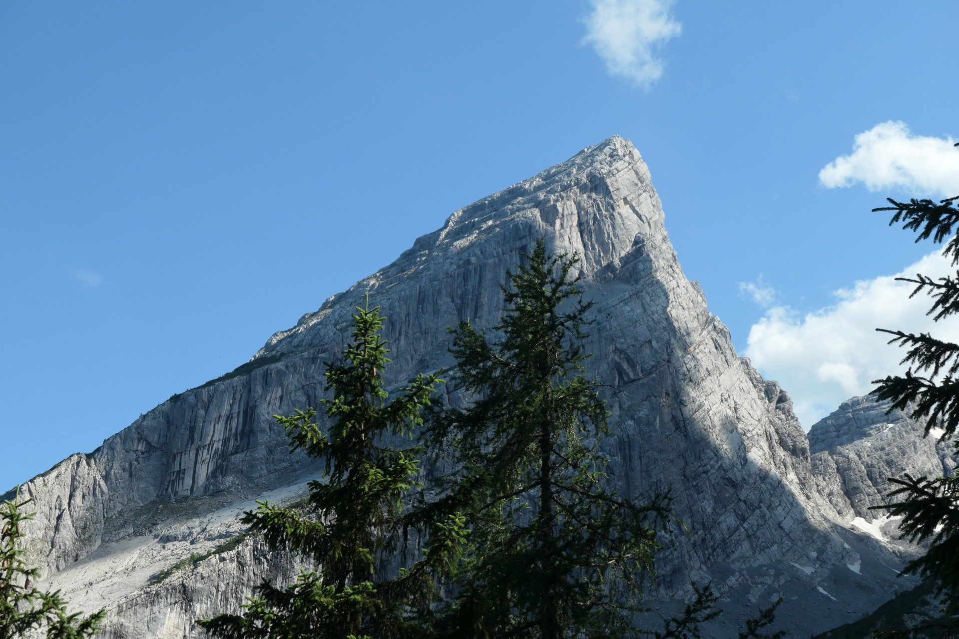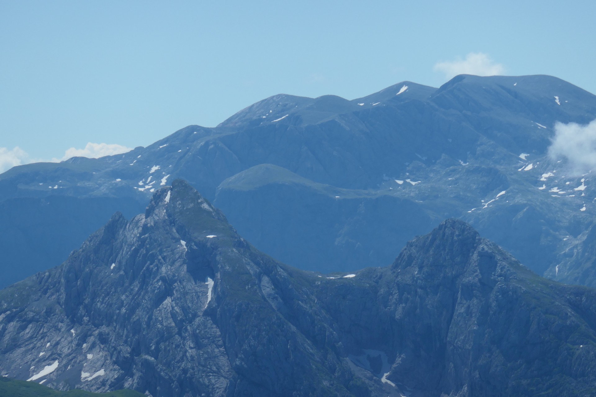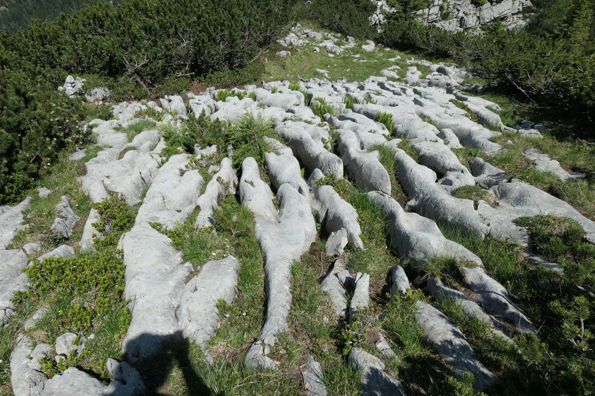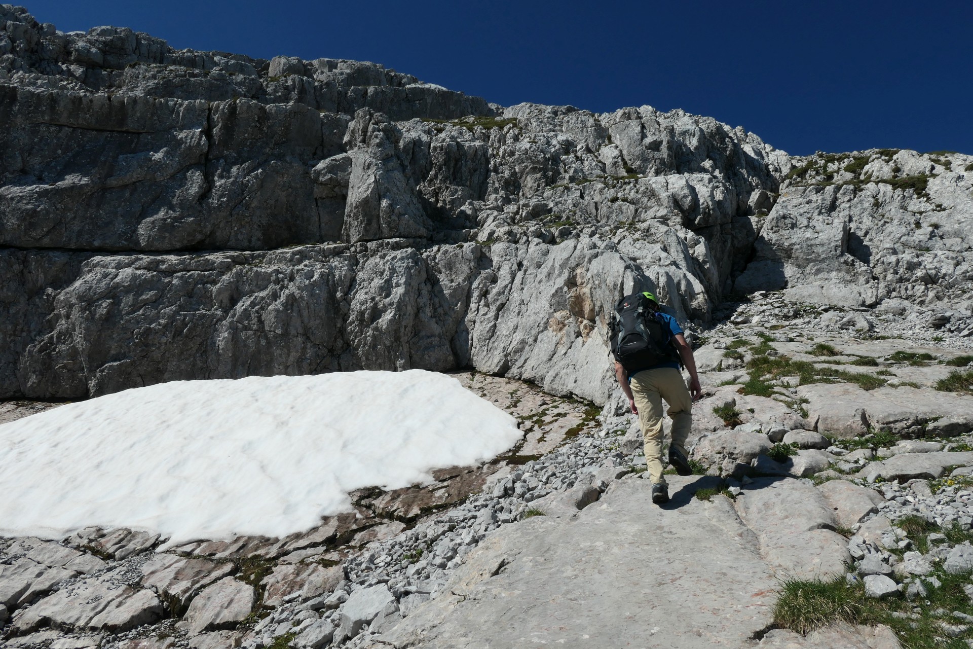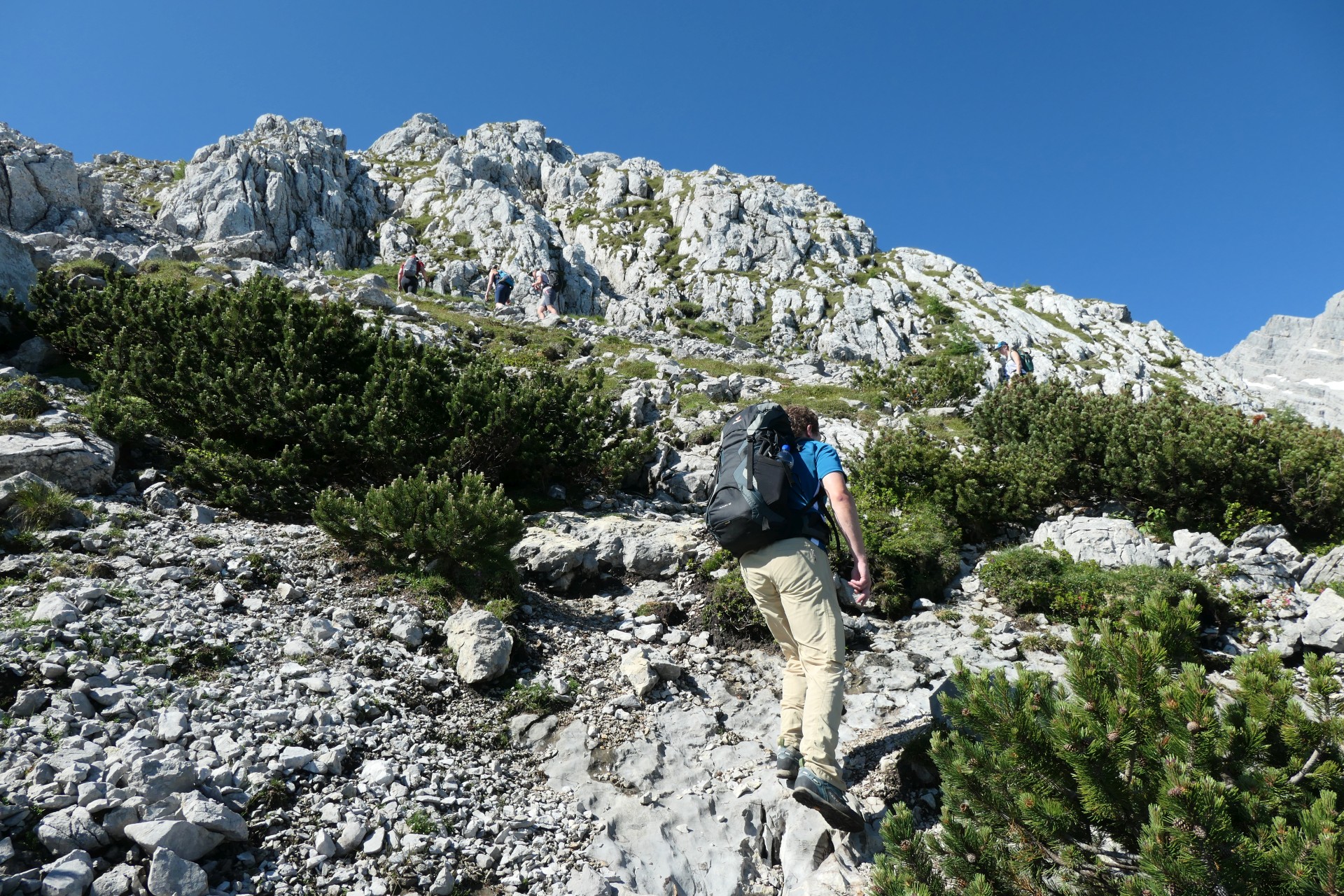 Im Wald anfangs flach dann immer steiler werdend bis zum Gendarm. Hier kurze ausgesetzte 2er Kletterei mit Bohrhaken. Danach am Nordgrat entlang und später in der Flanke steil empor. Immer wieder einfach Kletterei. Trotz zahlreicher Markierungen Wegfindung nicht ganz einfach. Zuletzt über Platten zum Gipfelkreuz.