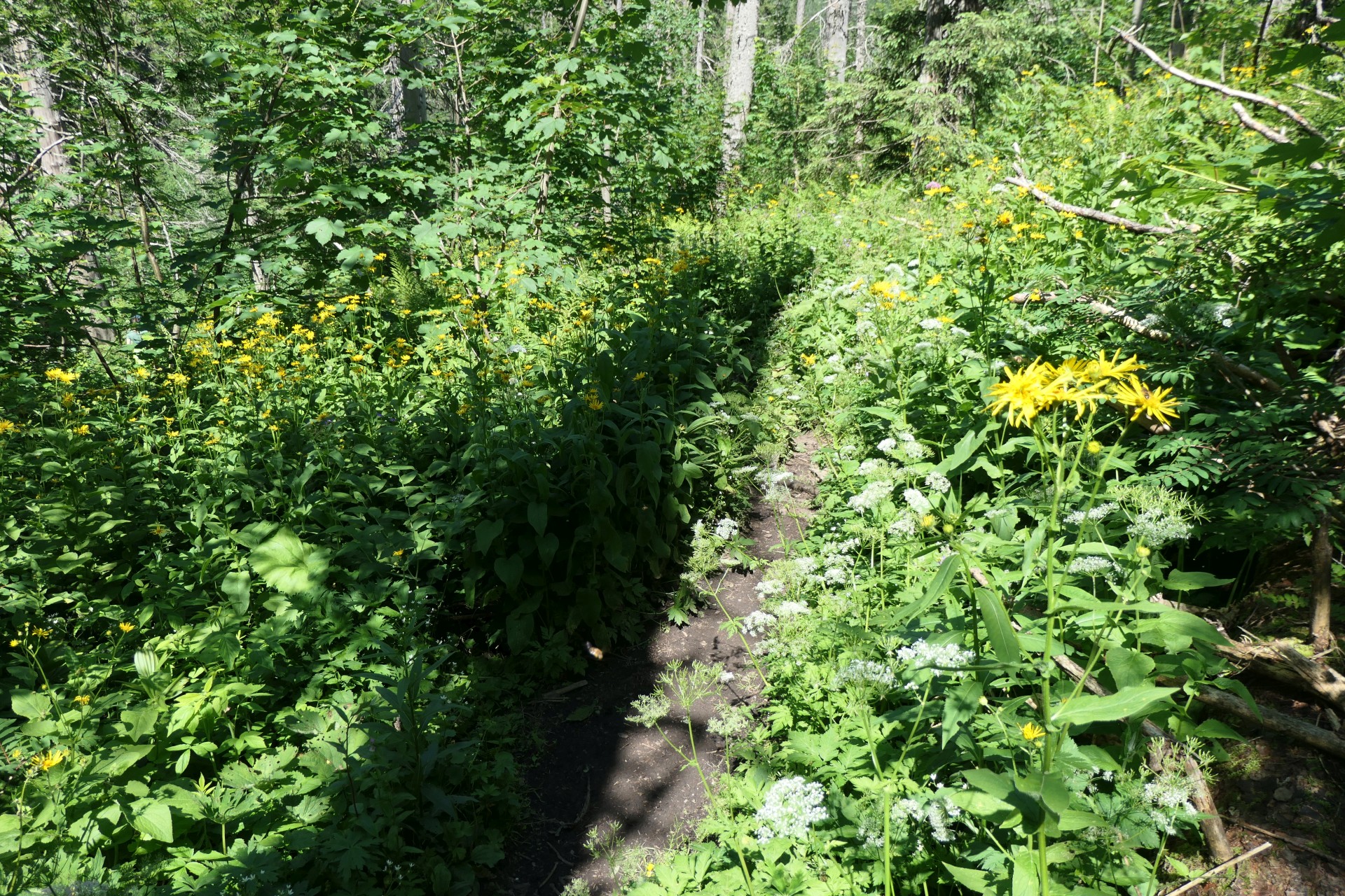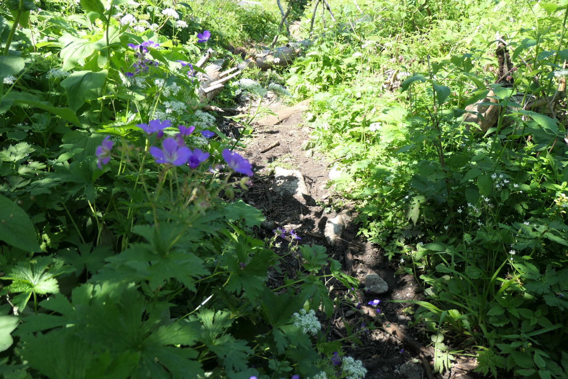Abstieg über den Normalweg. Teils sehr rutschig. Am Ende durch hohes Gras und Blumen und Wiesen zurück nach Kühroint.