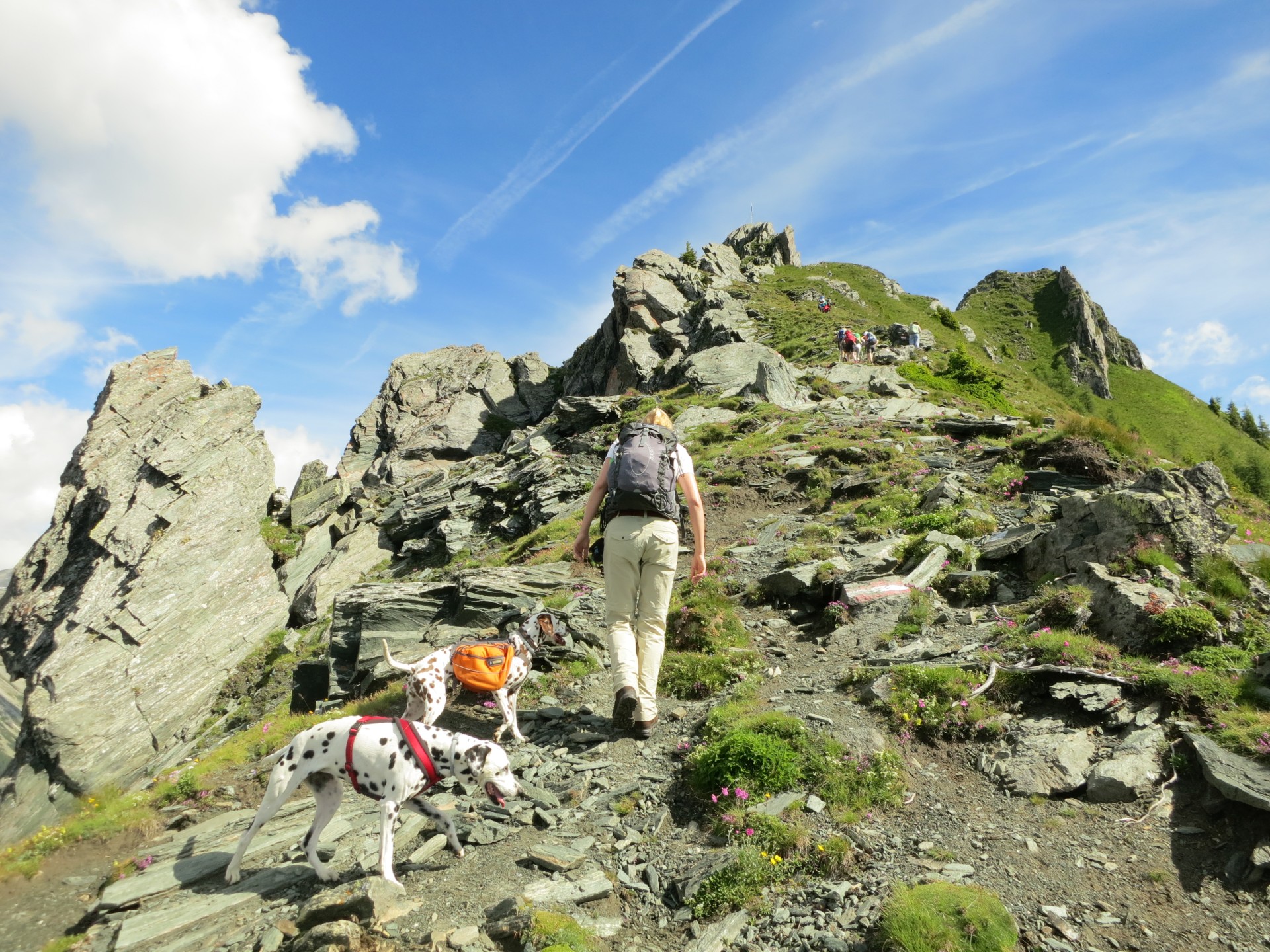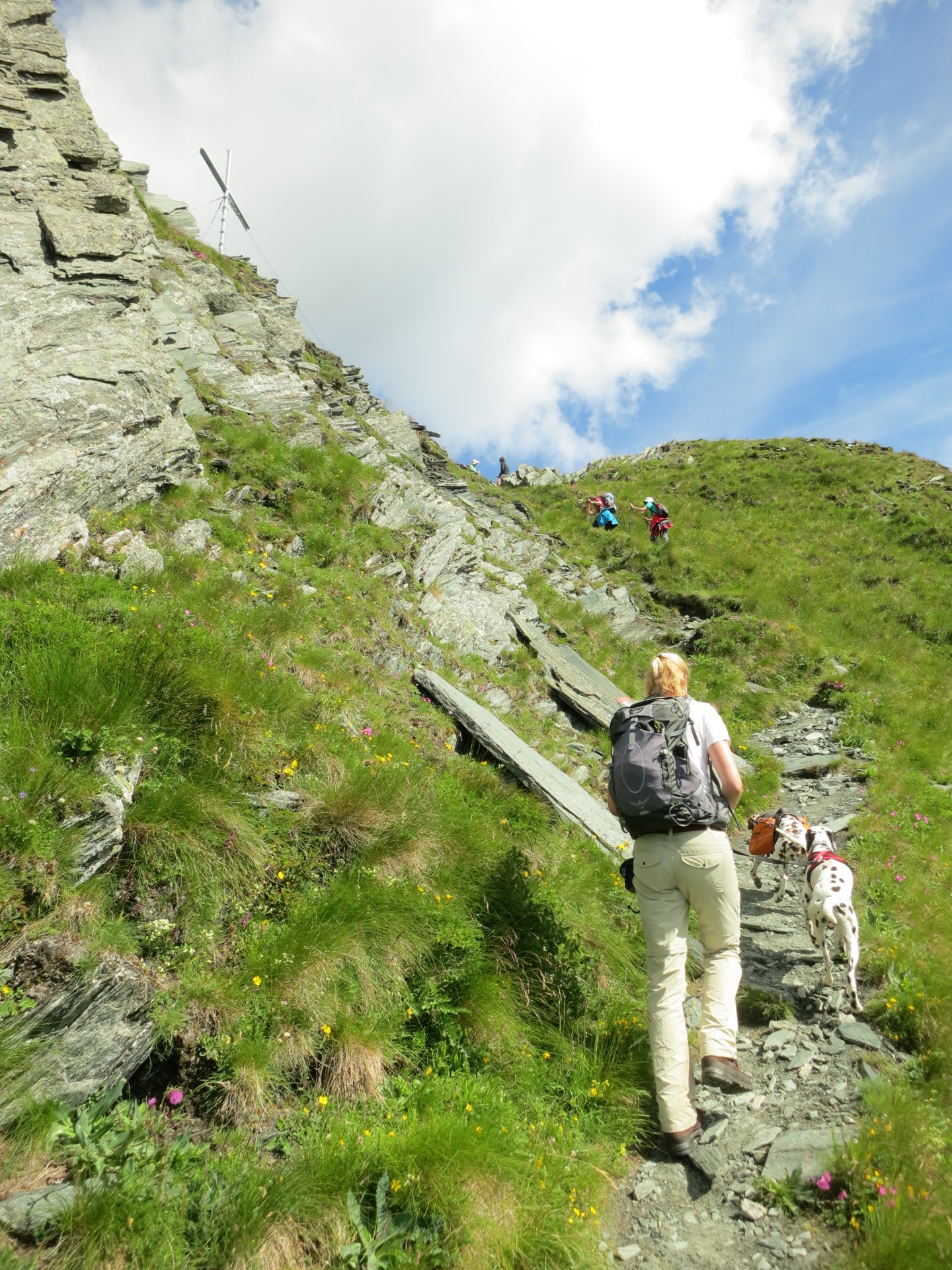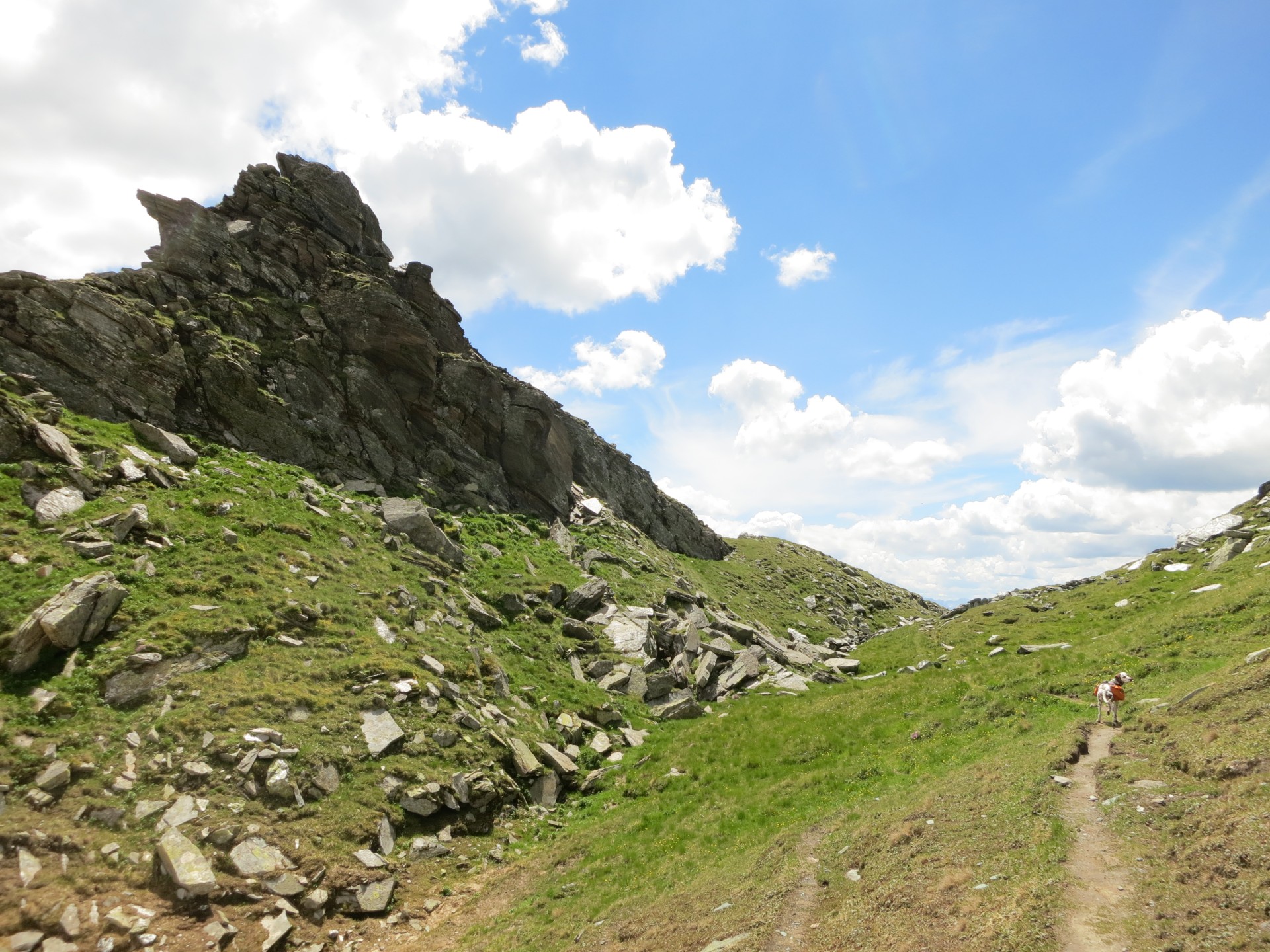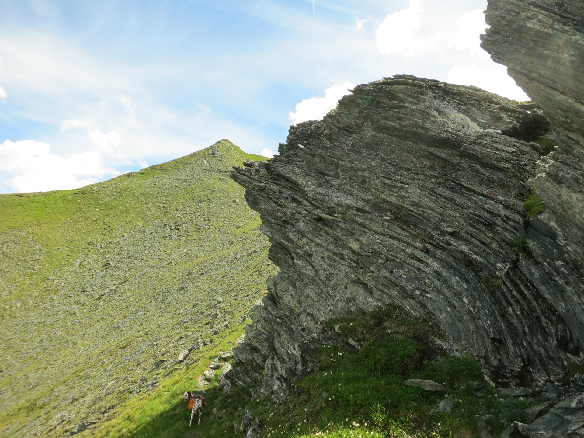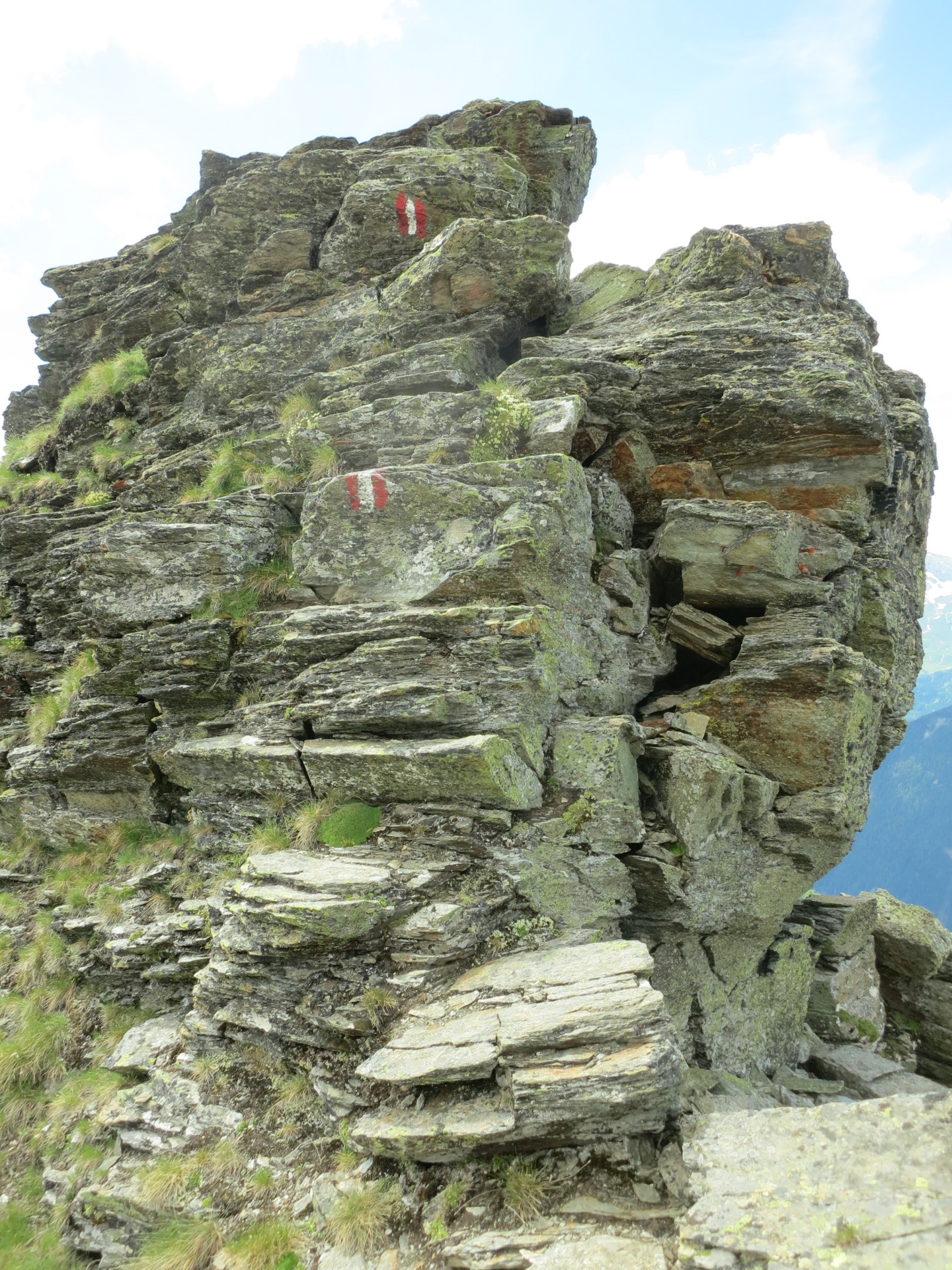Schlüsselstelle dieser Tour ist der Übergang an der Niederen Scharte. Die kurze ausgesetzte Kletterei erfordert etwas Überwindung, und wer sich hier unsicher ist, sollte lieber umkehren. So wie auch meine Freundin und die beiden Hunde.